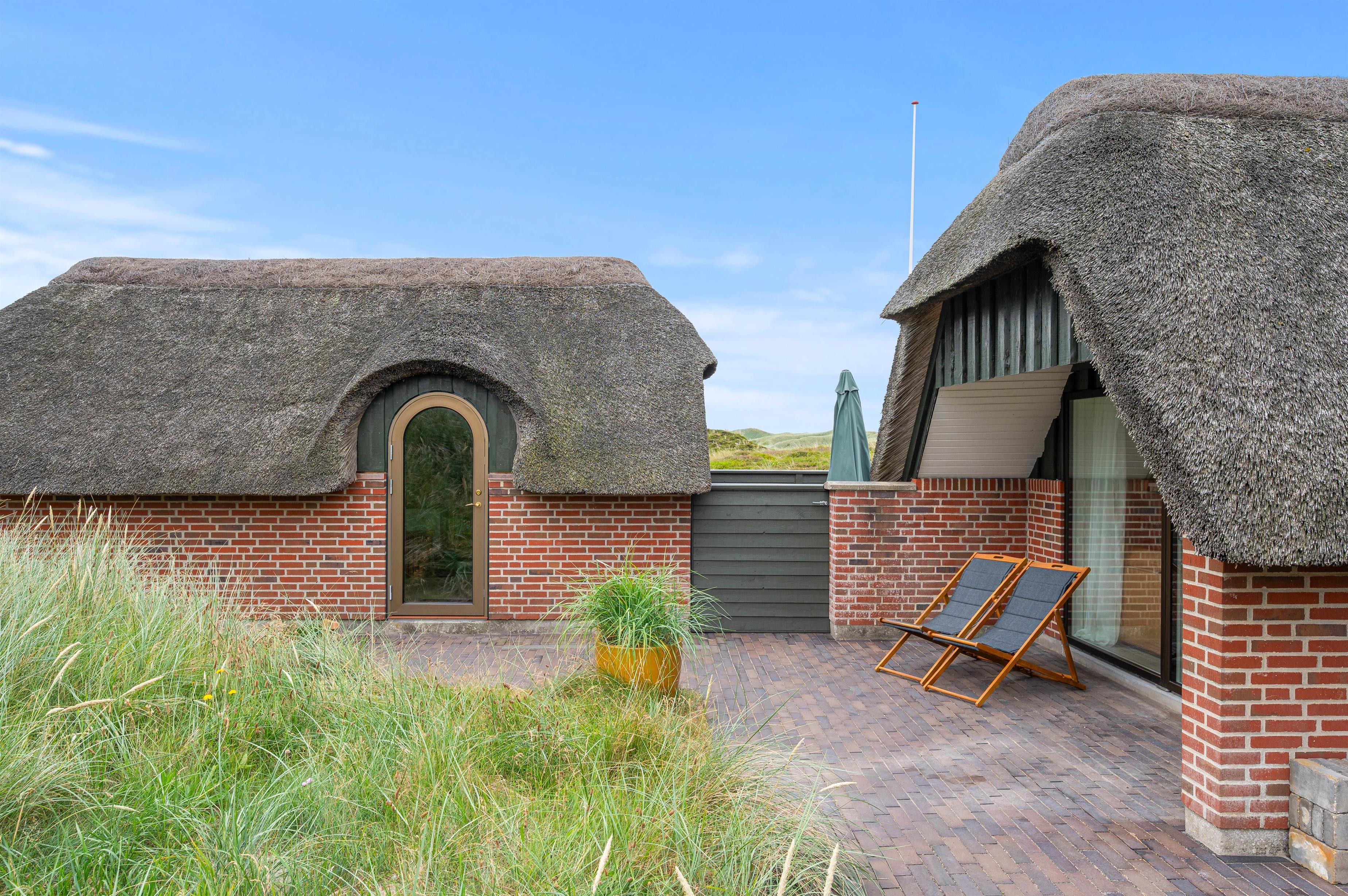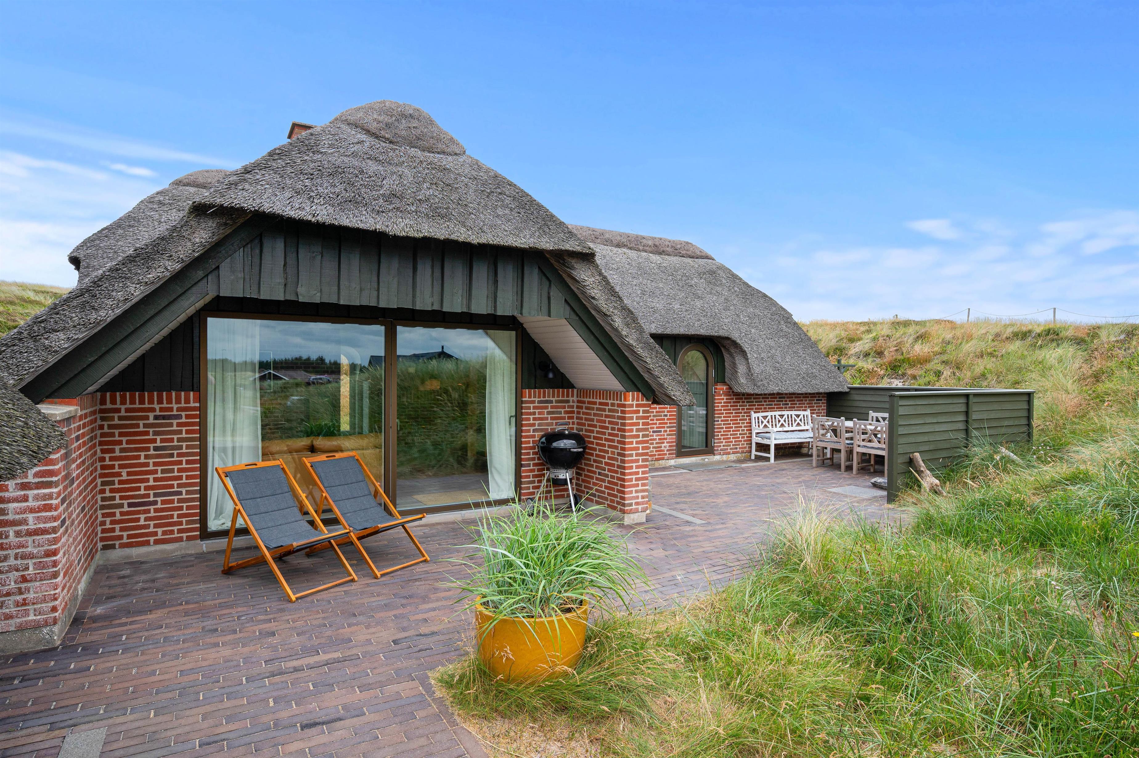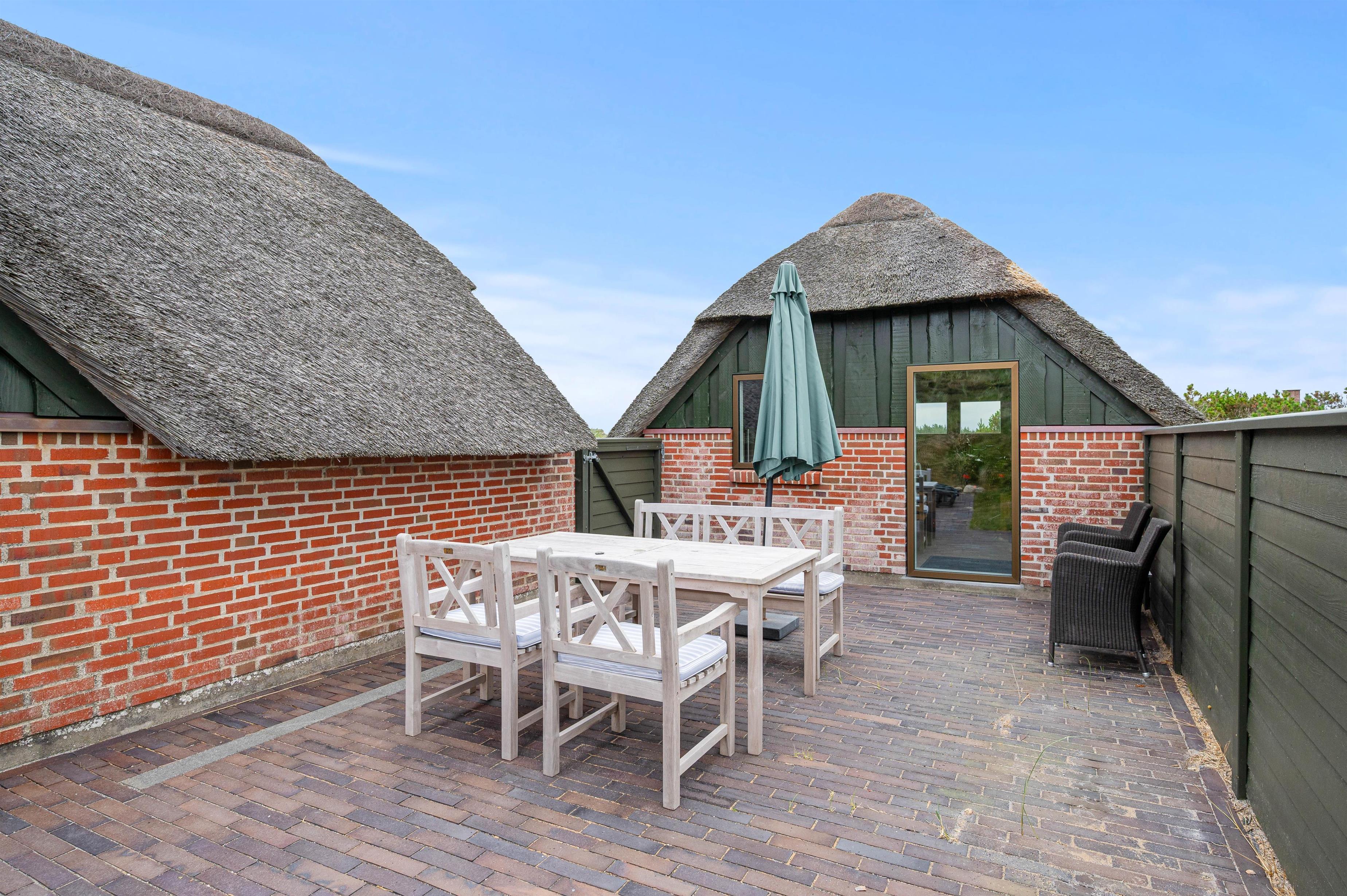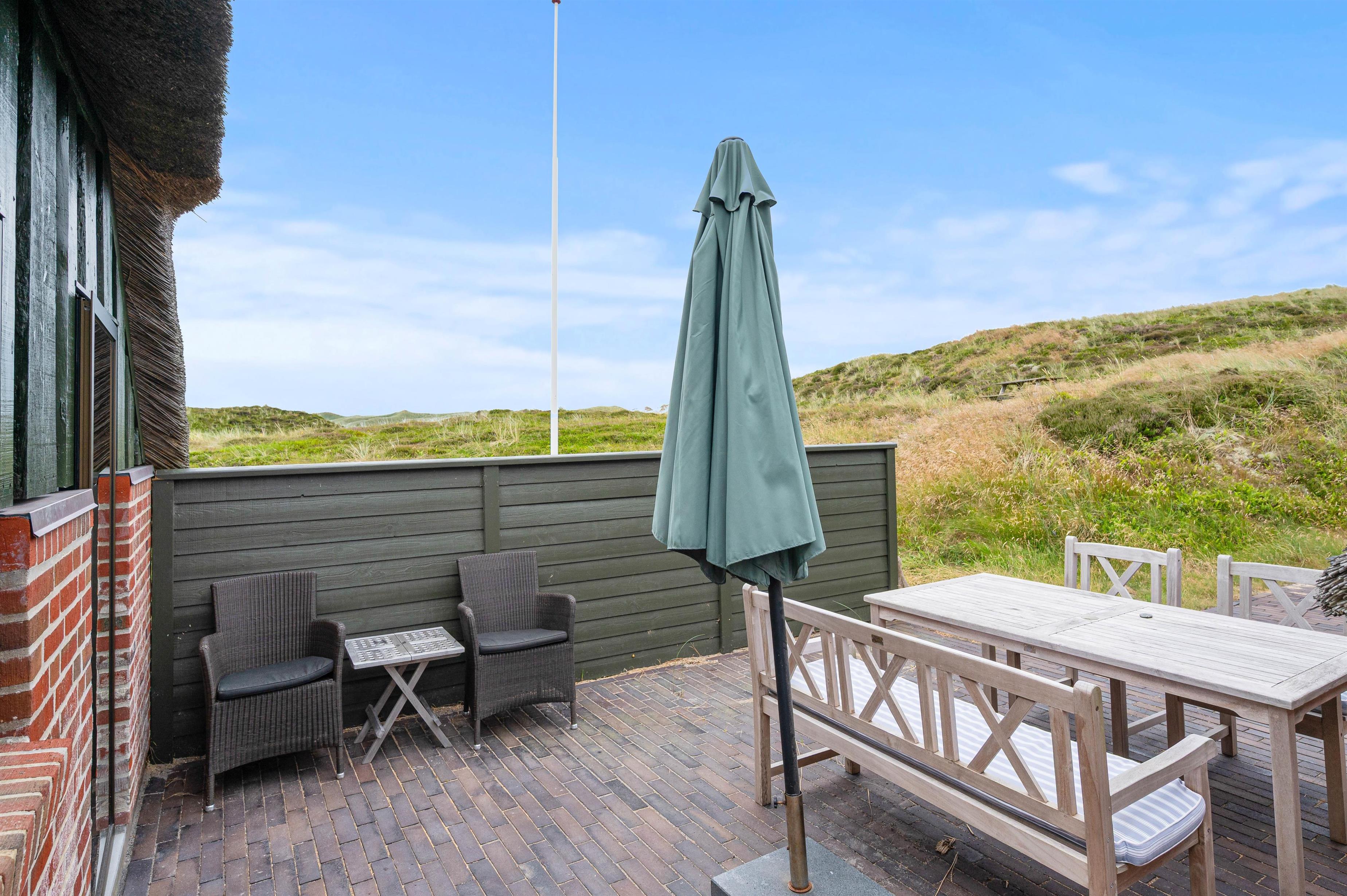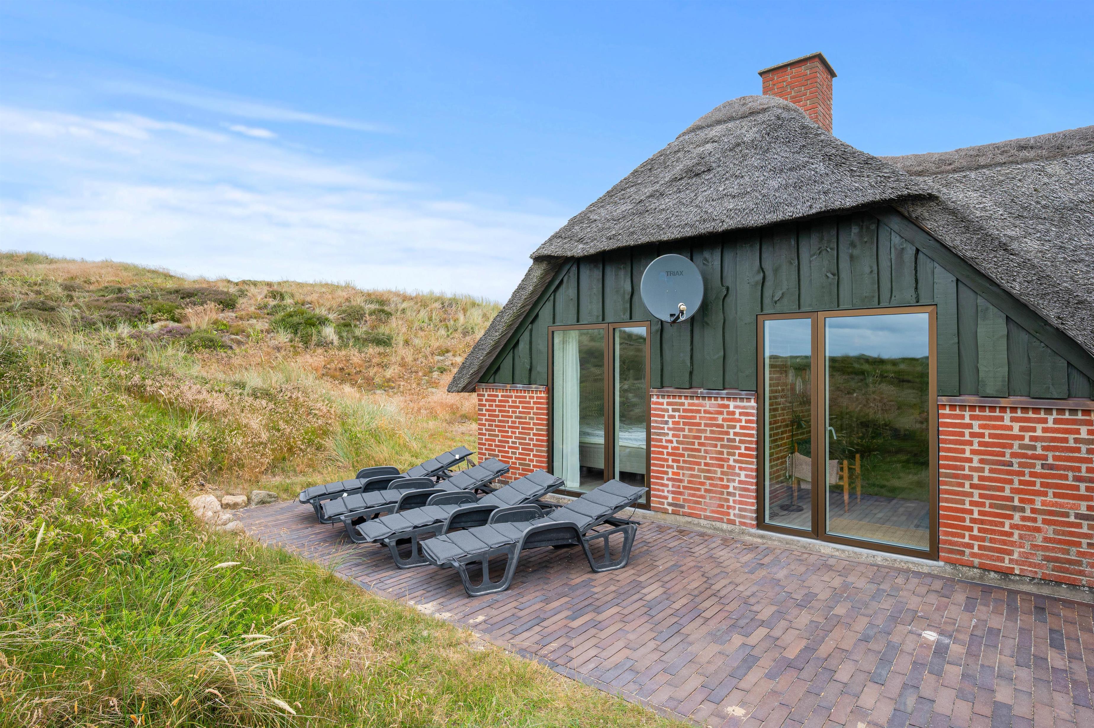 På den åbne og delvist afskærmede terrasse kan I slappe af i den friske havluft og nyde lyden af havets bølger – stranden ligger blot 400 meter fra feriehuset.