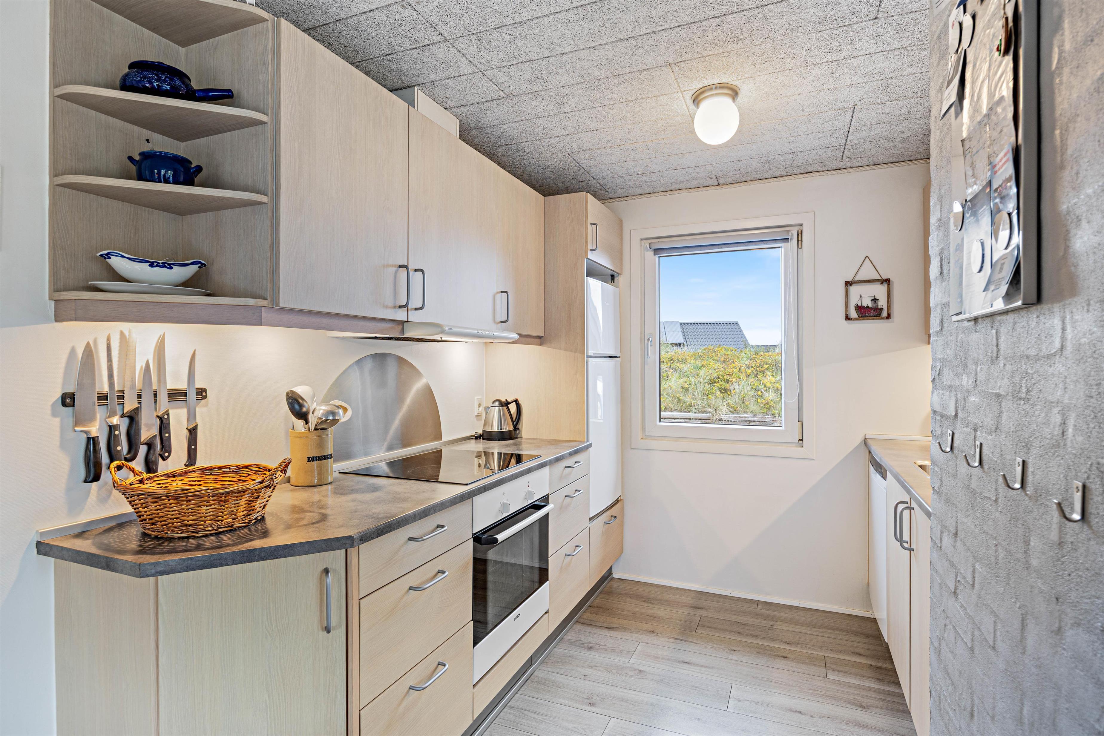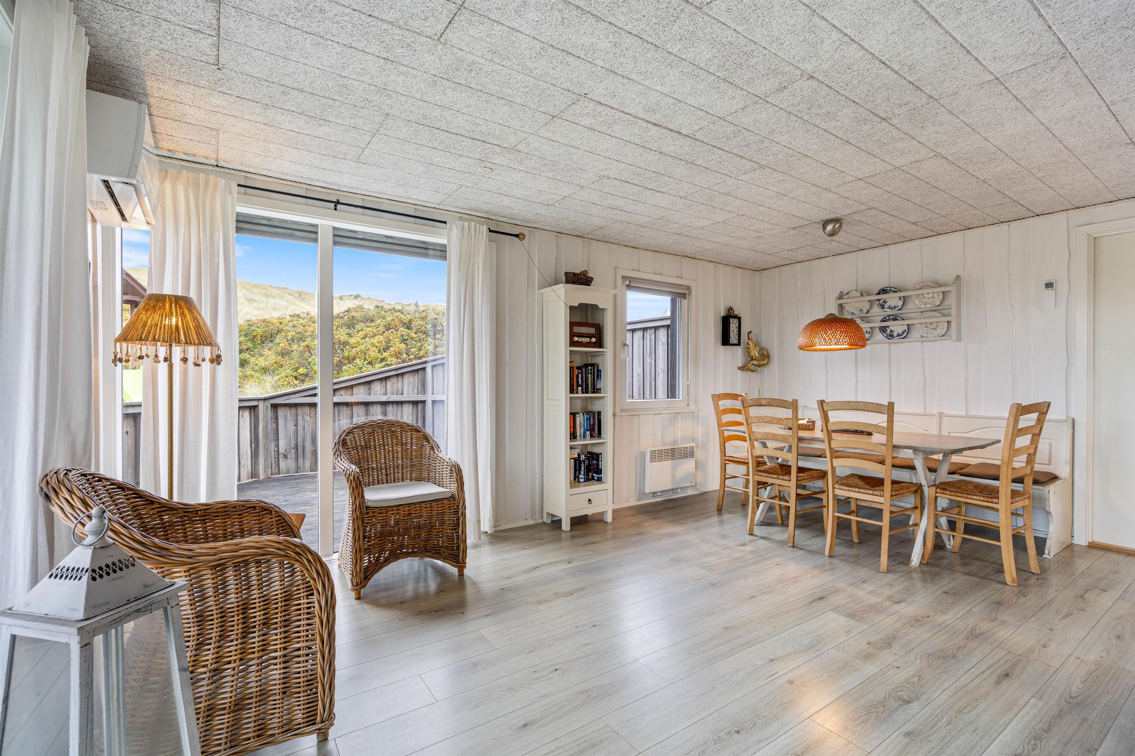 Kunne du tænke dig at holde ferie i et superhyggeligt sommerhus med Vesterhavet i “baghaven”? Så er dette sommerhus det helt rigtige. Sommerhuset er velholdt, renoveret i 2021 og har plads til 5 personer. Her er 3 soveværelser, 1 med dobbeltseng, et værelse med 2 enkeltsenge samt et værelse med 1 enkeltseng. Her er et rigtig fint badeværelse med gulvvarme og bruser.