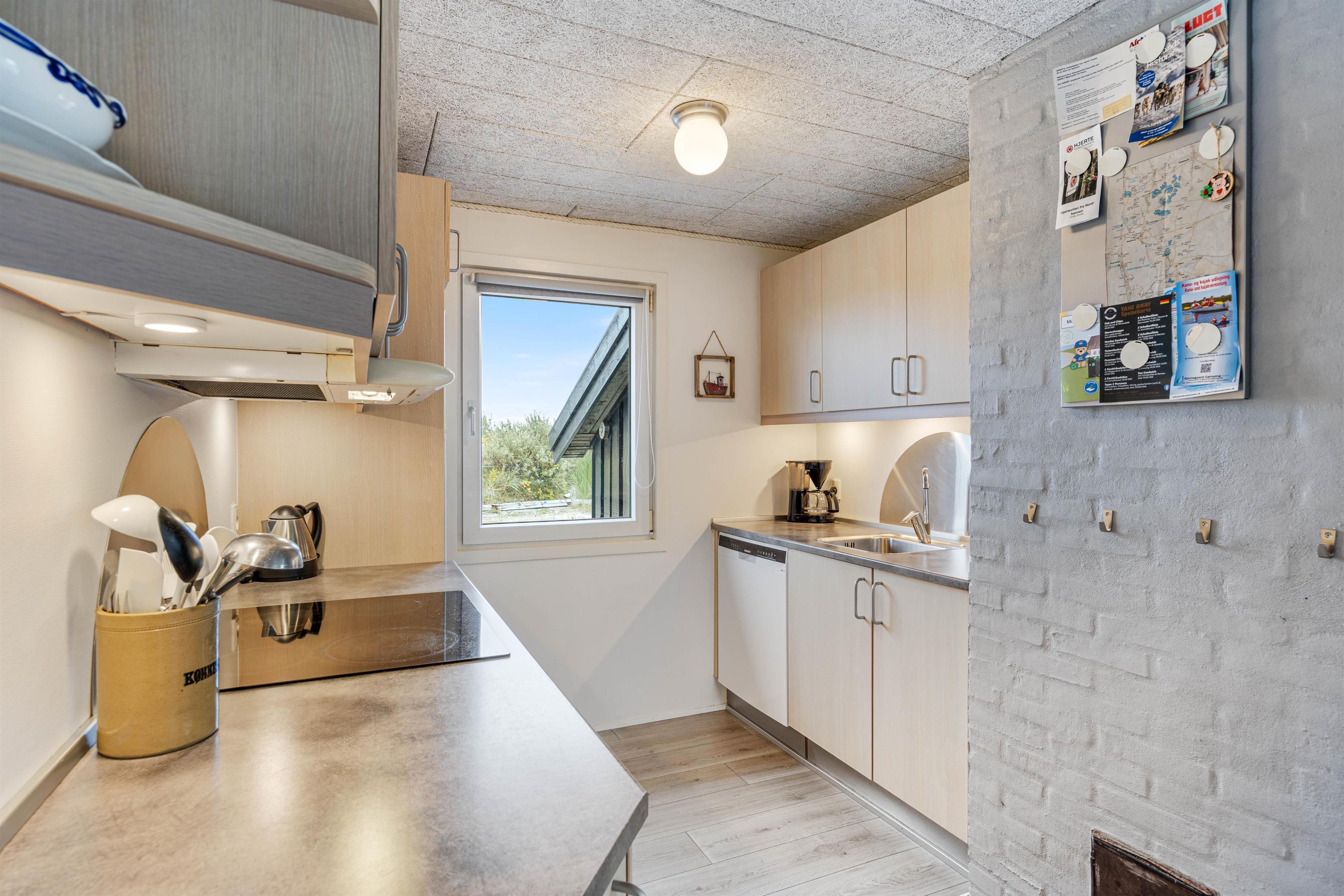 Køkkenet er veludstyret med opvaskemaskine og fryser og er forbundet med spiseafdeling og stue. Her er en dejlig og hyggelig indretning, som gør, at du straks føler dig godt tilpas.