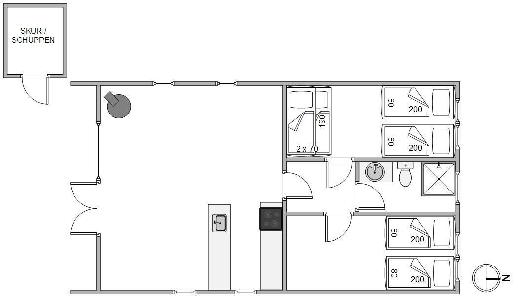 Her er plads til 4 personer – fordelt på 2 lyse soverum, som begge er indrettet med 2 enkeltsenge. På et af væreslerne finder I desuden en køjeseng, som børnene vil finde sjovt og hyggeligt.
