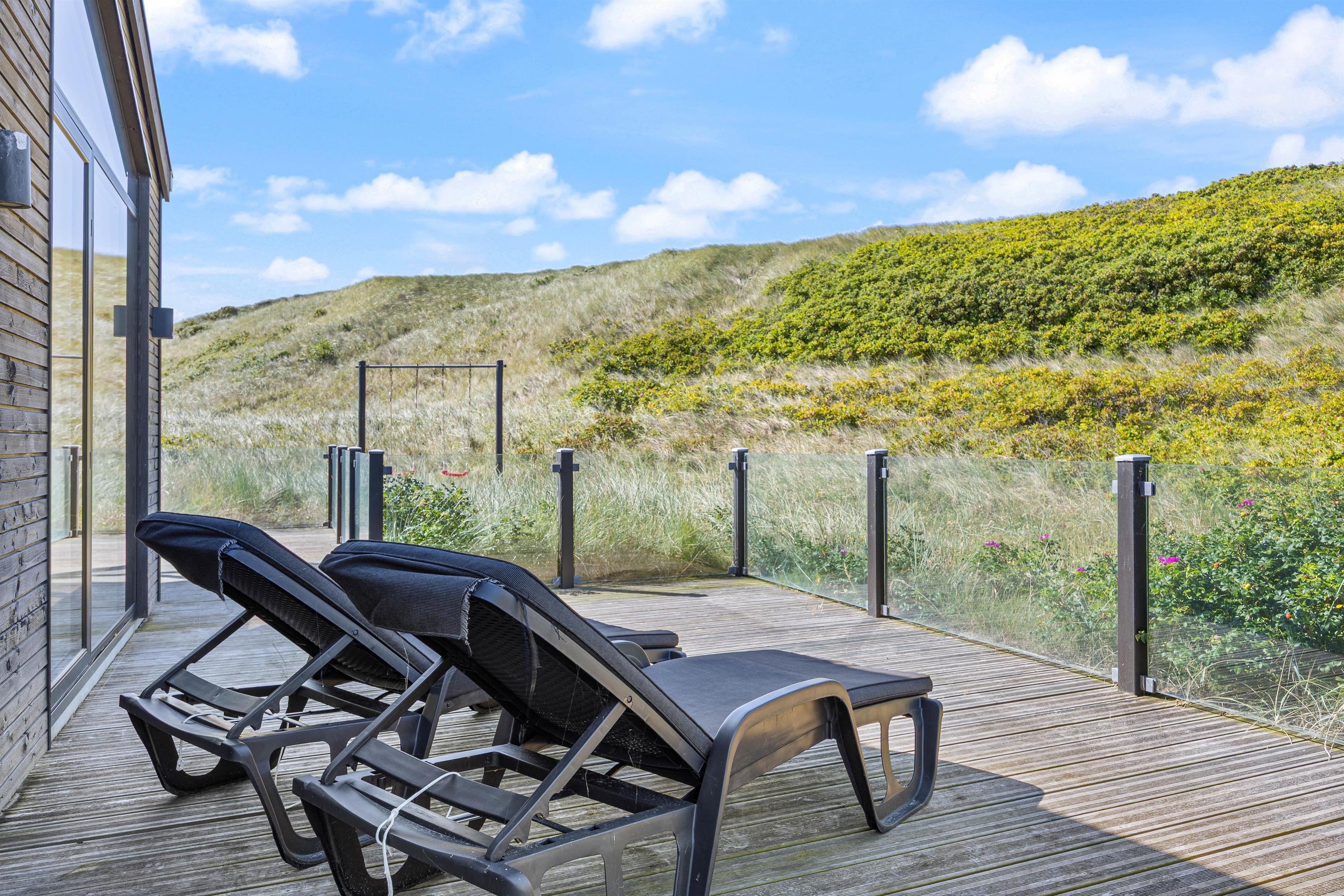 Kun et stenkast fra det brusende Vesterhav ligger dette fantastiske feriehus med plads til 6 personer. Den moderne og stilfulde indretning vil opfylde selv den mest kræsne feriegæsts drømme, og på den lækre terrasse - med udebruser - kan det dejlige solskinsvejr nydes i fulde drag. Udebruseren kan benyttes fra april til november. Hunden er også tilladt her.