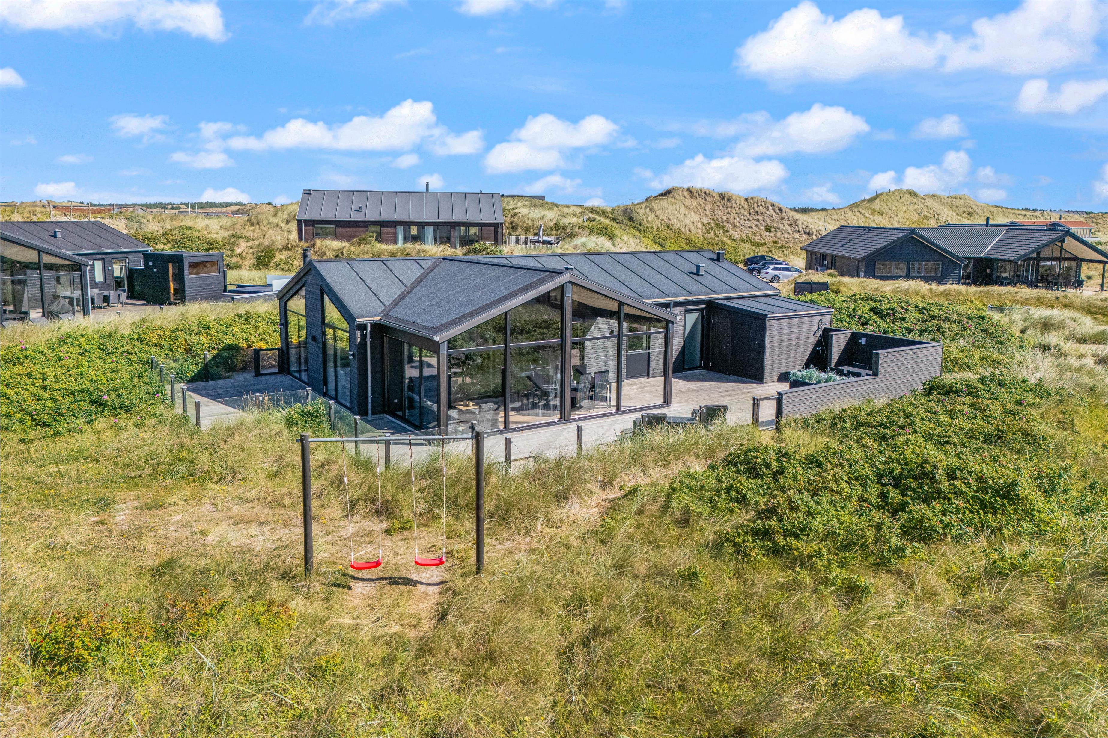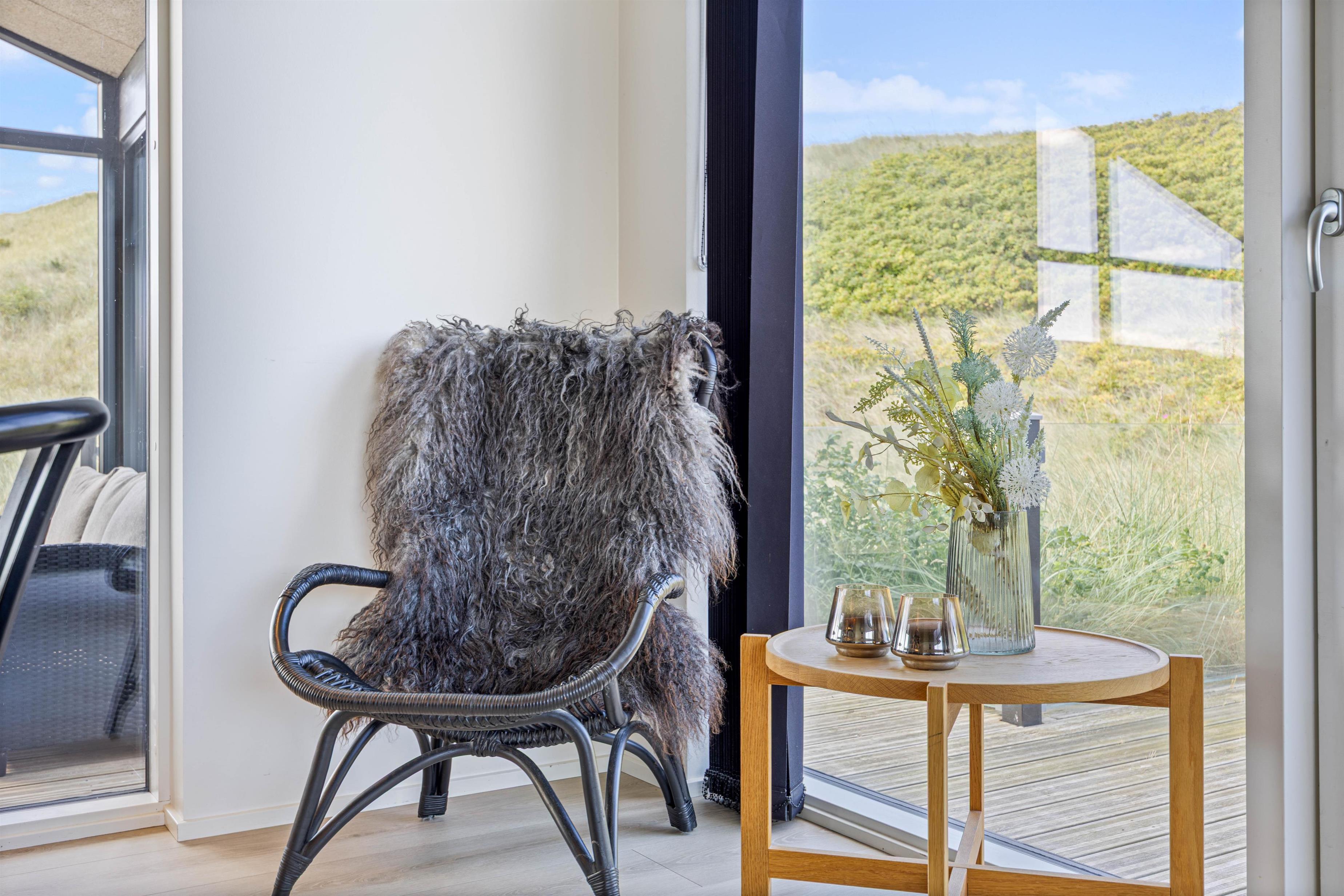 Feriehuset på Bjerregårdsvej 435 er opført i 2019 i flotte materialer, og den stilfulde og moderne indretning sætter rammerne for en luksuriøs ferie lidt ud over det sædvanlige. De lækre møbler passer perfekt ind, og de små dekorationer skaber en hyggelig atmosfære.