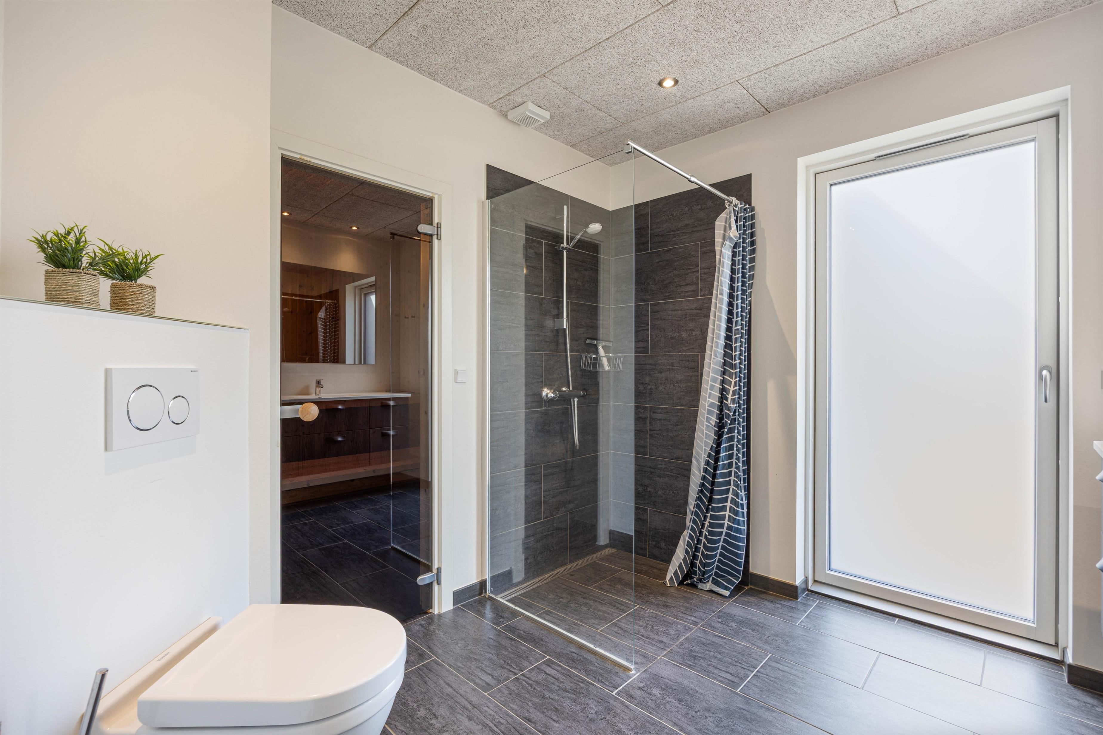Huset er samtidig rigtig praktisk indrettet med 2 fine badeværelser, hvoraf der fra det ene er adgang til husets sauna. Her kan I forkæle jer selv med lidt ekstra wellness og velvære på ferien.