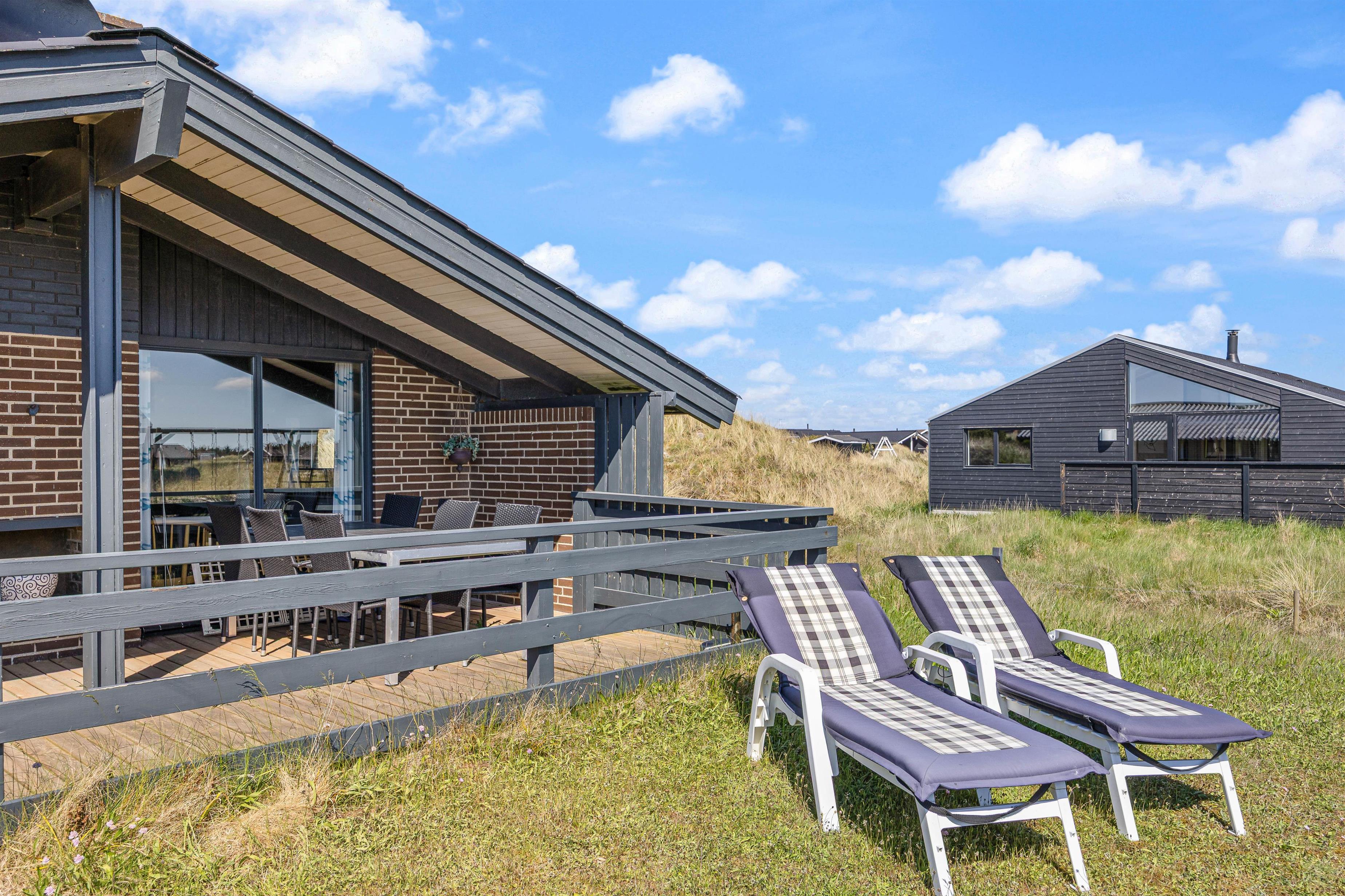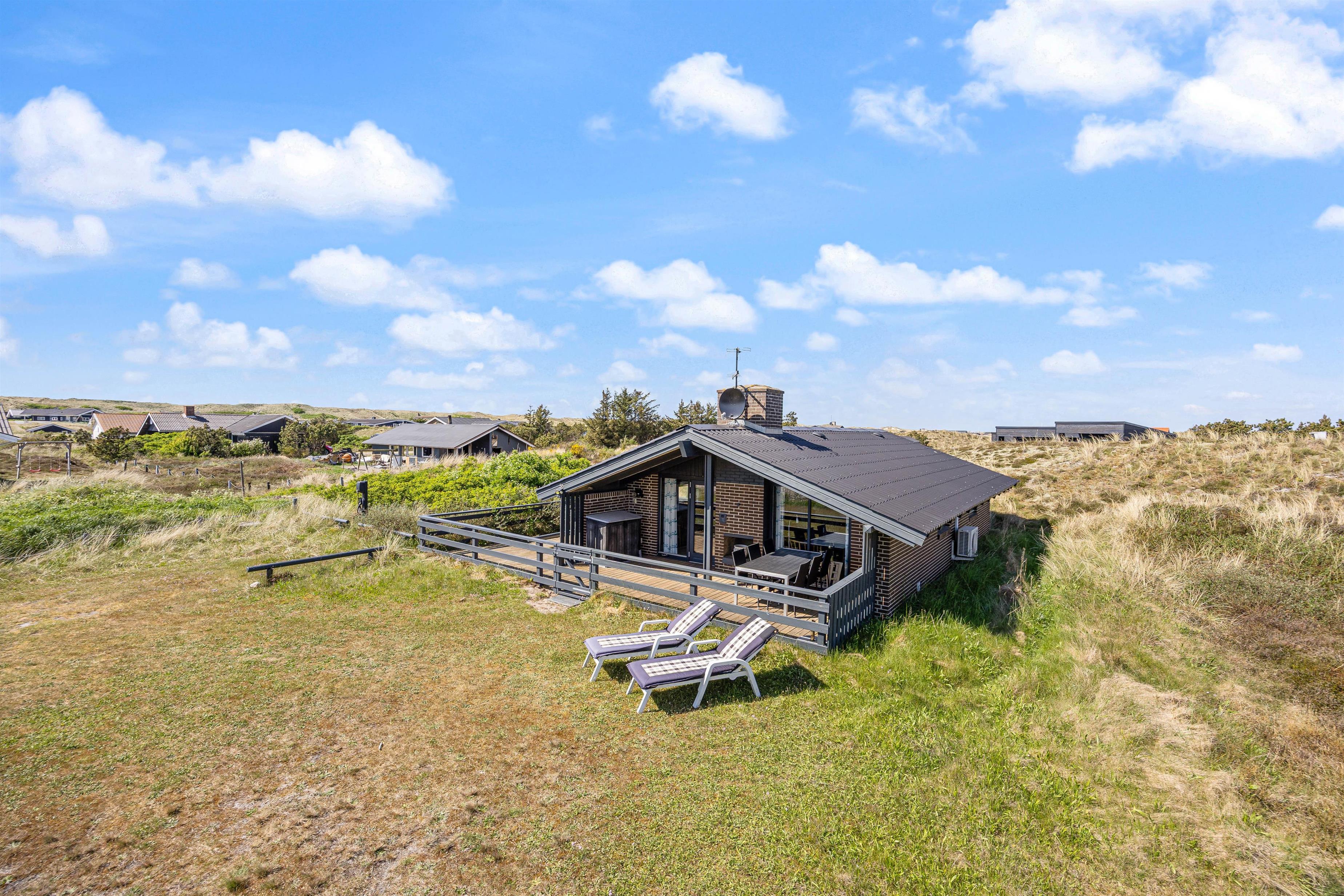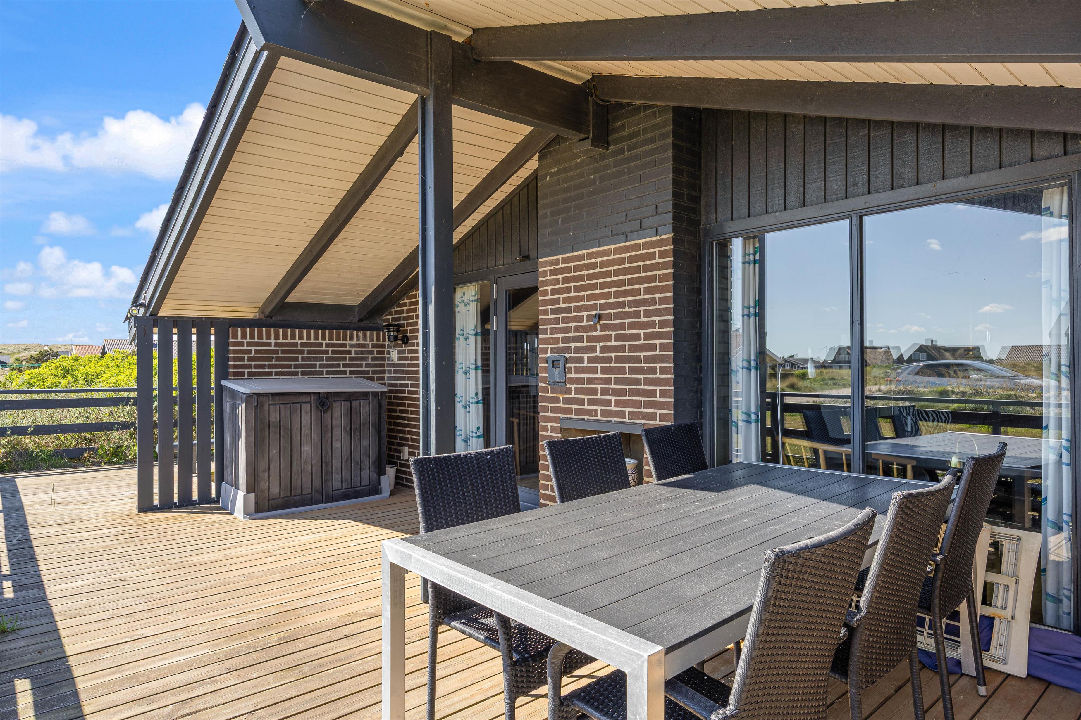 Den friske luft på vestkysten kan nydes fra den let afskærmede, lukkede og delvis overdækkede terrasse, som har havemøbler og liggestole. Her er desuden en grill, så I kan stege et lækkert stykke kød på grillen, eller måske friskfanget fisk, som I selv har fanget i fjorden, skal smides på til aftensmaden?