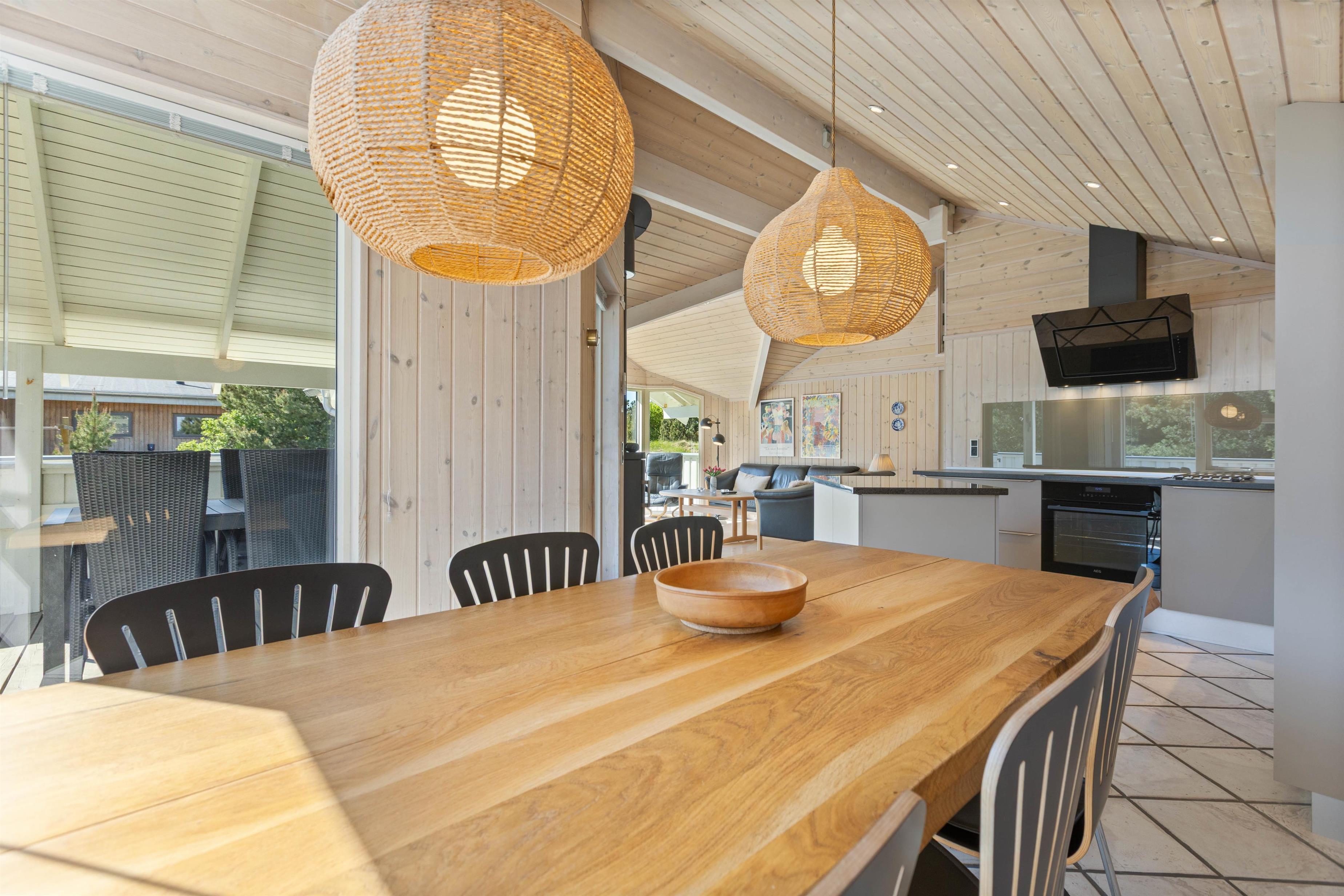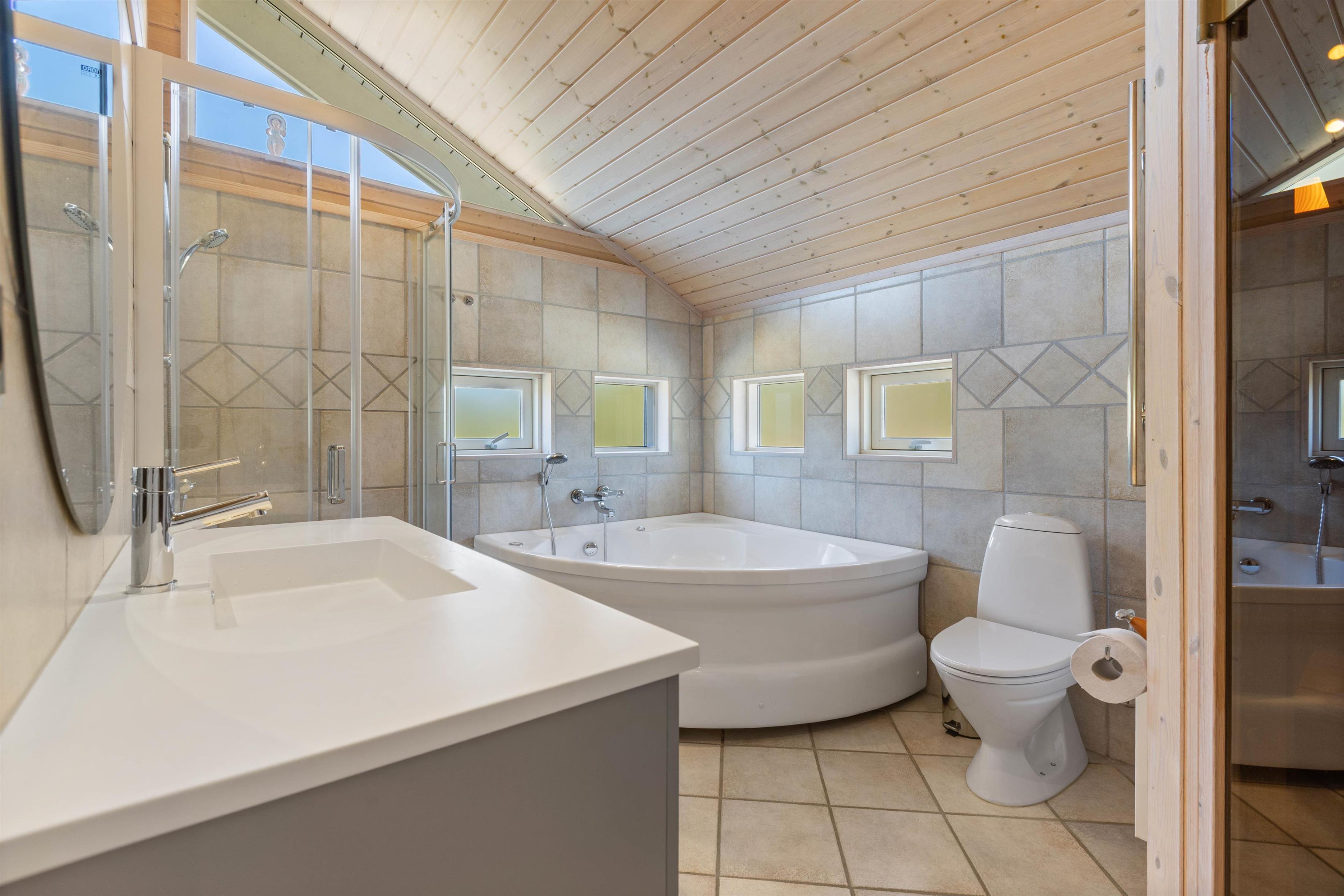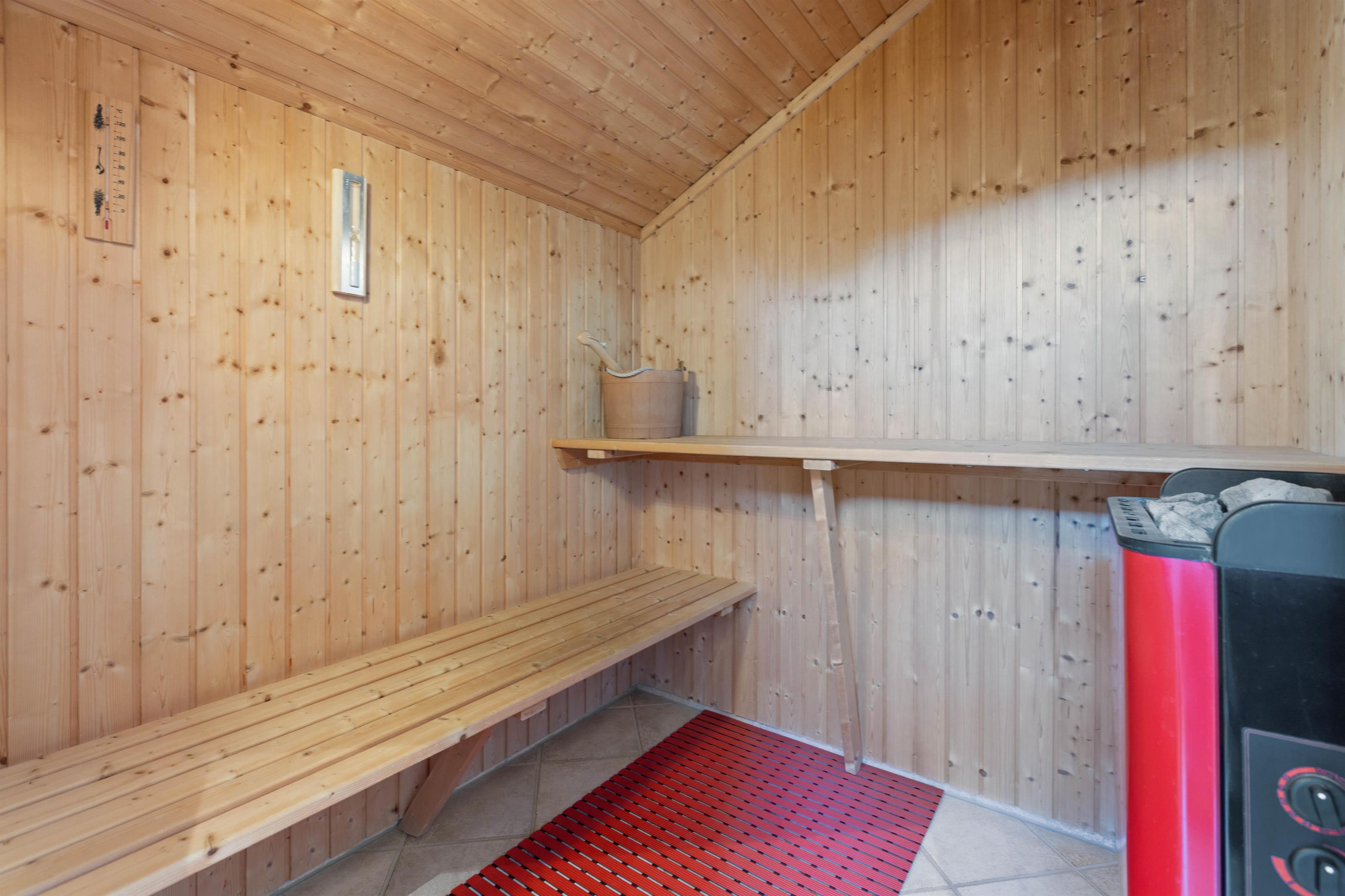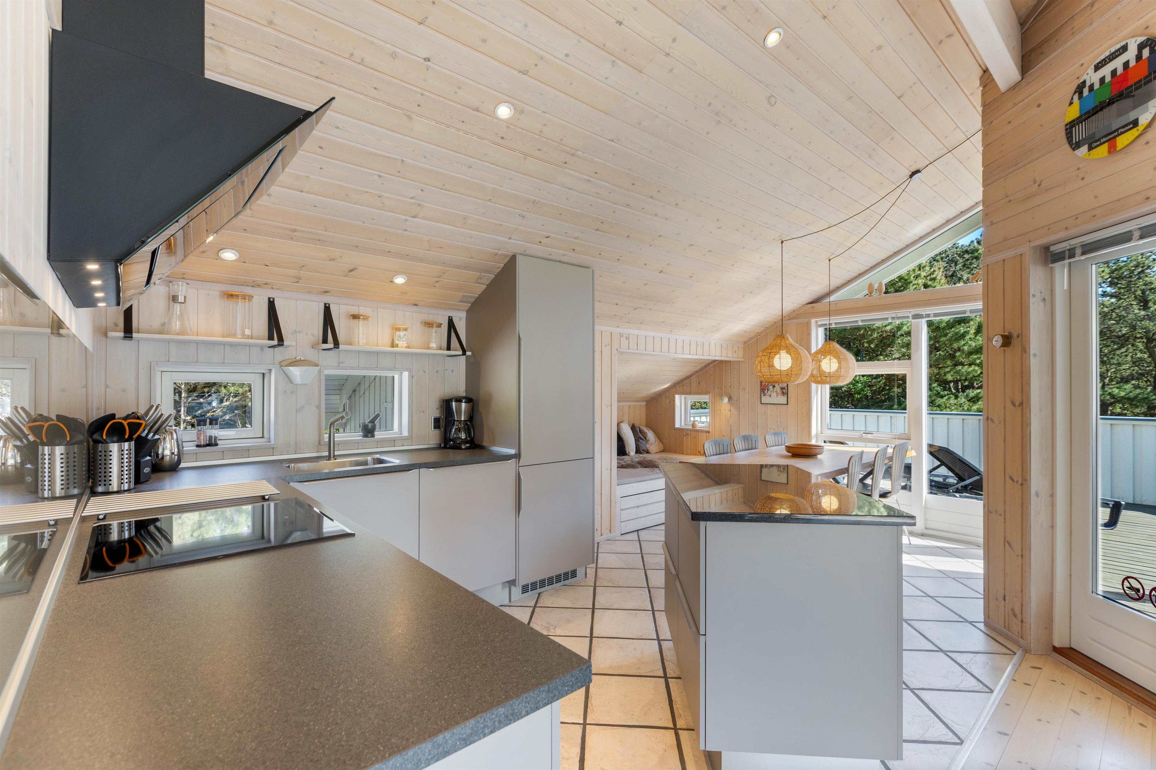 Feriehusets dejlige badeværelse er med gulvvarme, bruseniche, hjørnespa og sauna. Køkkenet er veludstyret med bl.a. opvaskemaskine og 61 l fryser. Der er også gulvvarme i køkkenet. Stuen er rigtig hyggeligt og smagfuldt indrettet. Den dekorative og praktiske brændeovn er godt placeret mellem køkken, spiseafdeling og selve stuen, så den effektivt kan sprede både varme og hygge. Der er desuden fladskærm-TV, DVD og gratis trådløst internet i feriehuset.