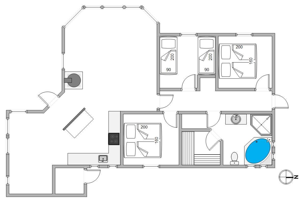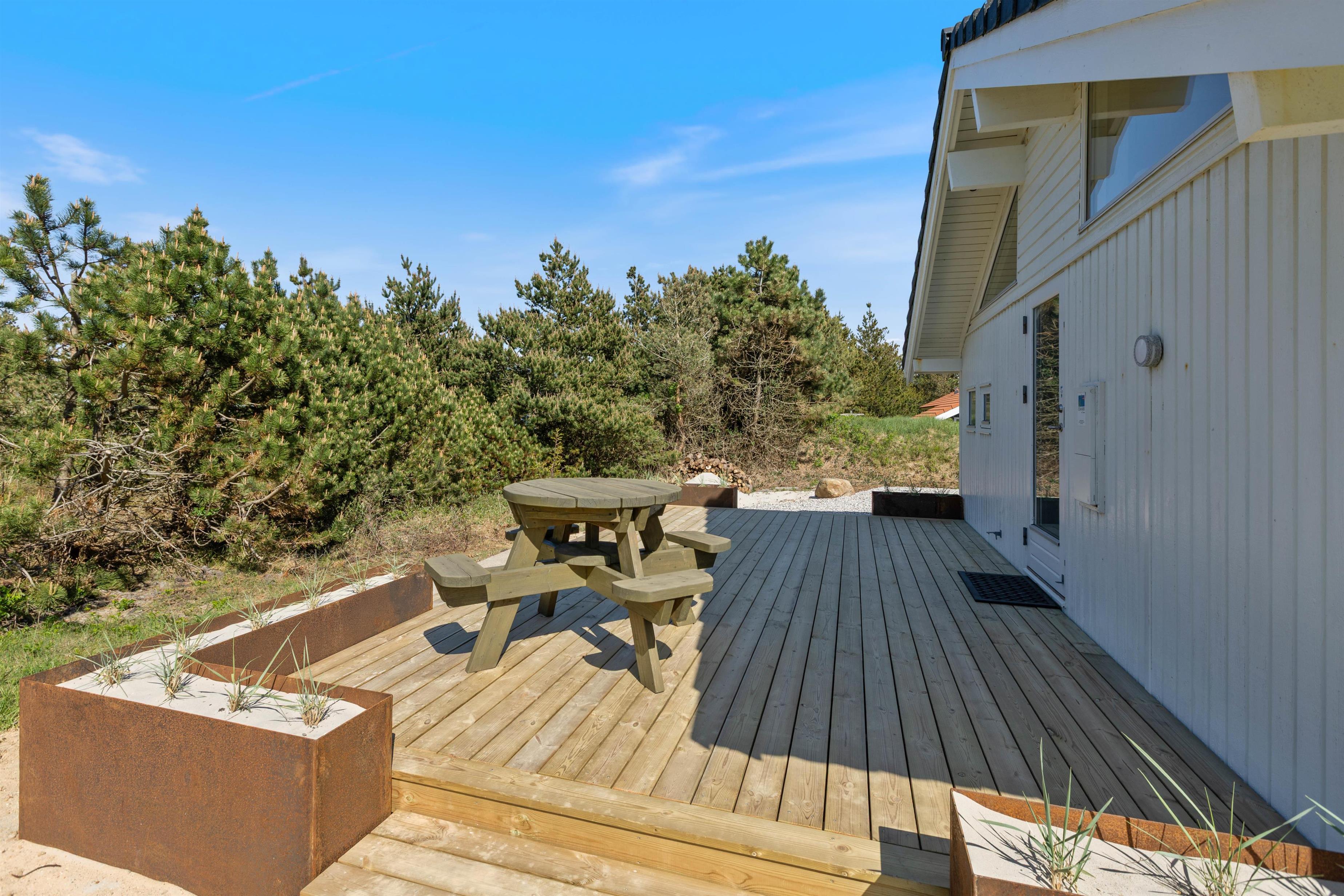 Sommerhuset har 2 gode og læfyldte terrasser, så man kan opholde sig udendørs mange timer om dagen. Den delvist overdækkede og lukkede terrasse er særdeles velegnet til hyggelige grillaftener.