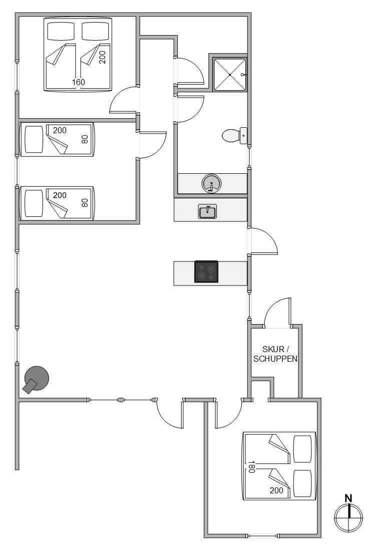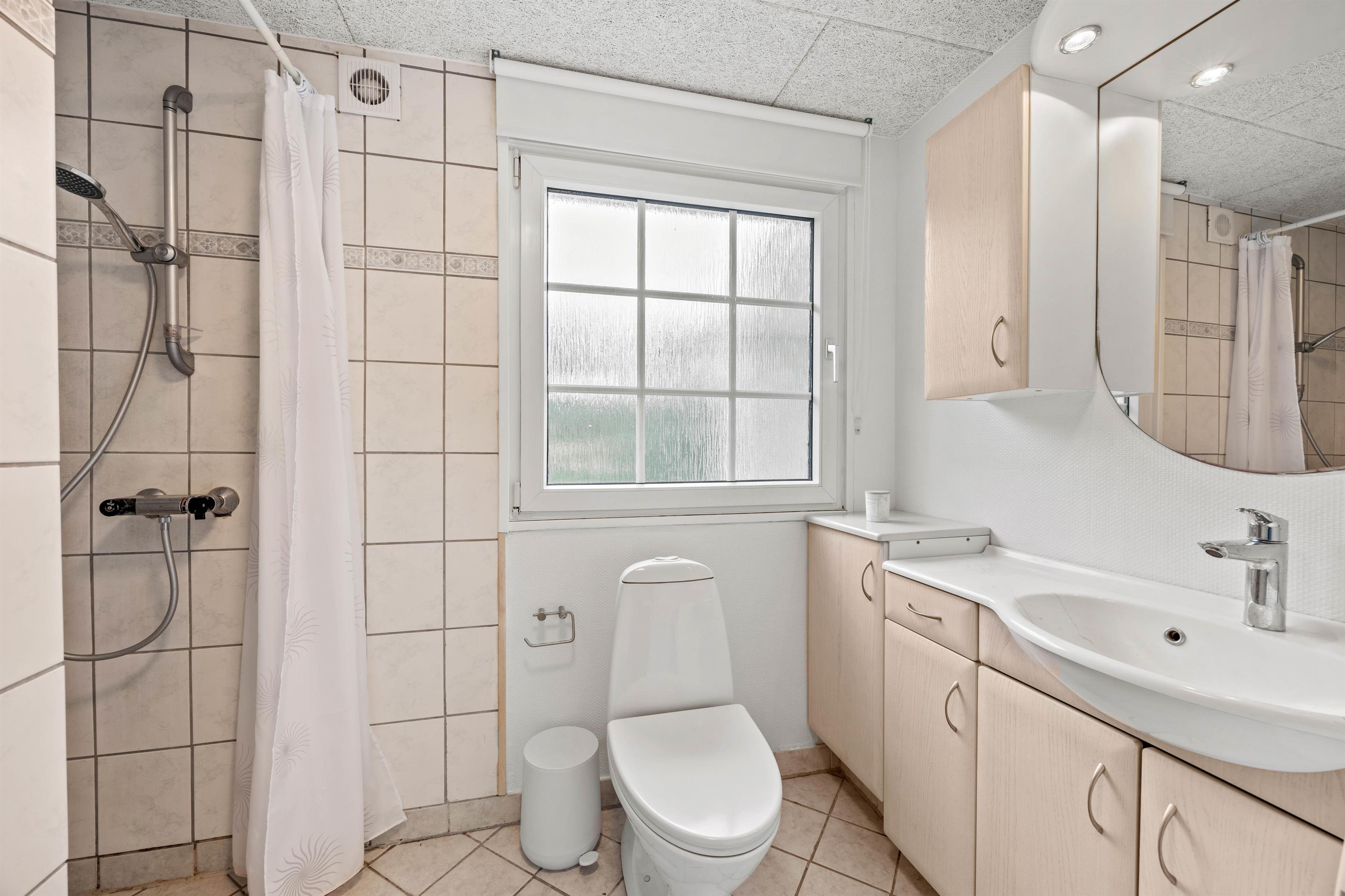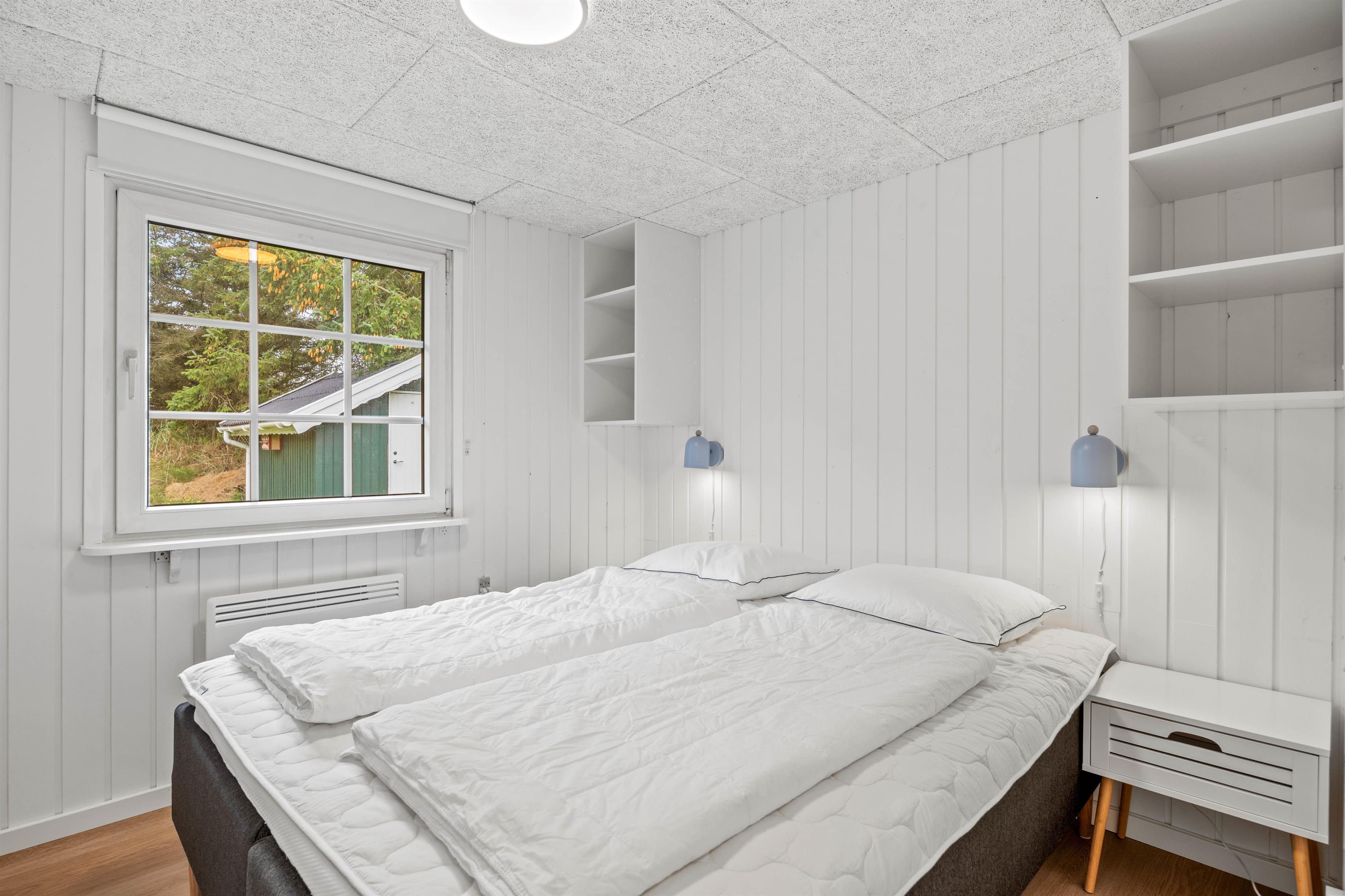 Badeværelset er enkelt indrettet med en bruser. To af de hyggelige soveværelser er udstyret med komfortable dobbeltsenge, mens det tredje soveværelse har to enkeltsenge, så alle gæster kan få en god nats søvn. Læg mærke til, at den friske vesterhavsluft gør noget godt for nattesøvnen.