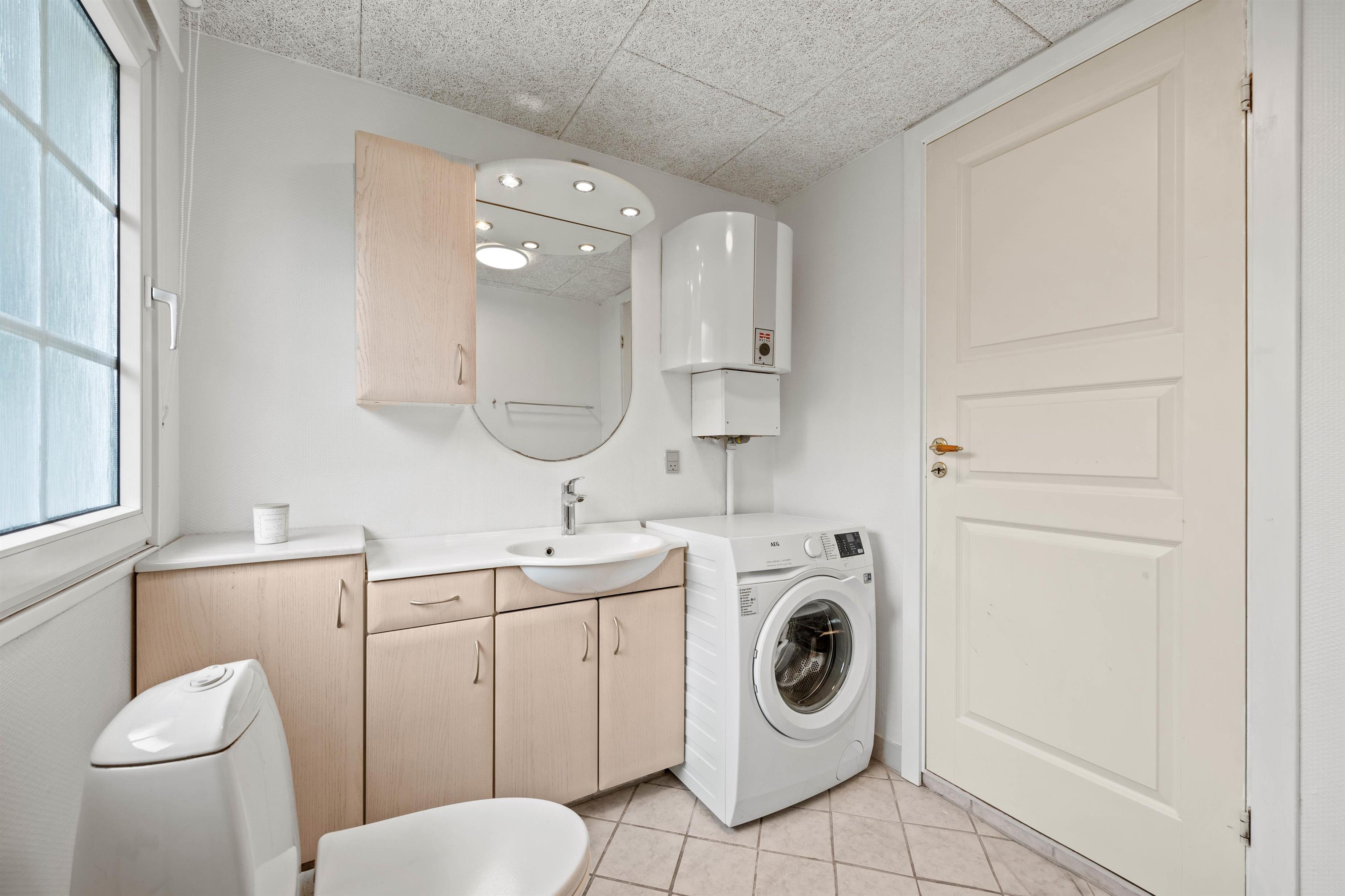 På Sigfred Jensens Vej 10 føler man sig hjemme straks, man træder ind ad døren. I den smukke stue kan I gøre det hyggeligt foran fjernsynet eller ved brændeovnen, som sikrer behagelig varme og en hyggelig atmosfære. Der er en energibesparende varmepumpe, som hurtigt og effektivt sørger for et behageligt indeklima og en god temperatur.