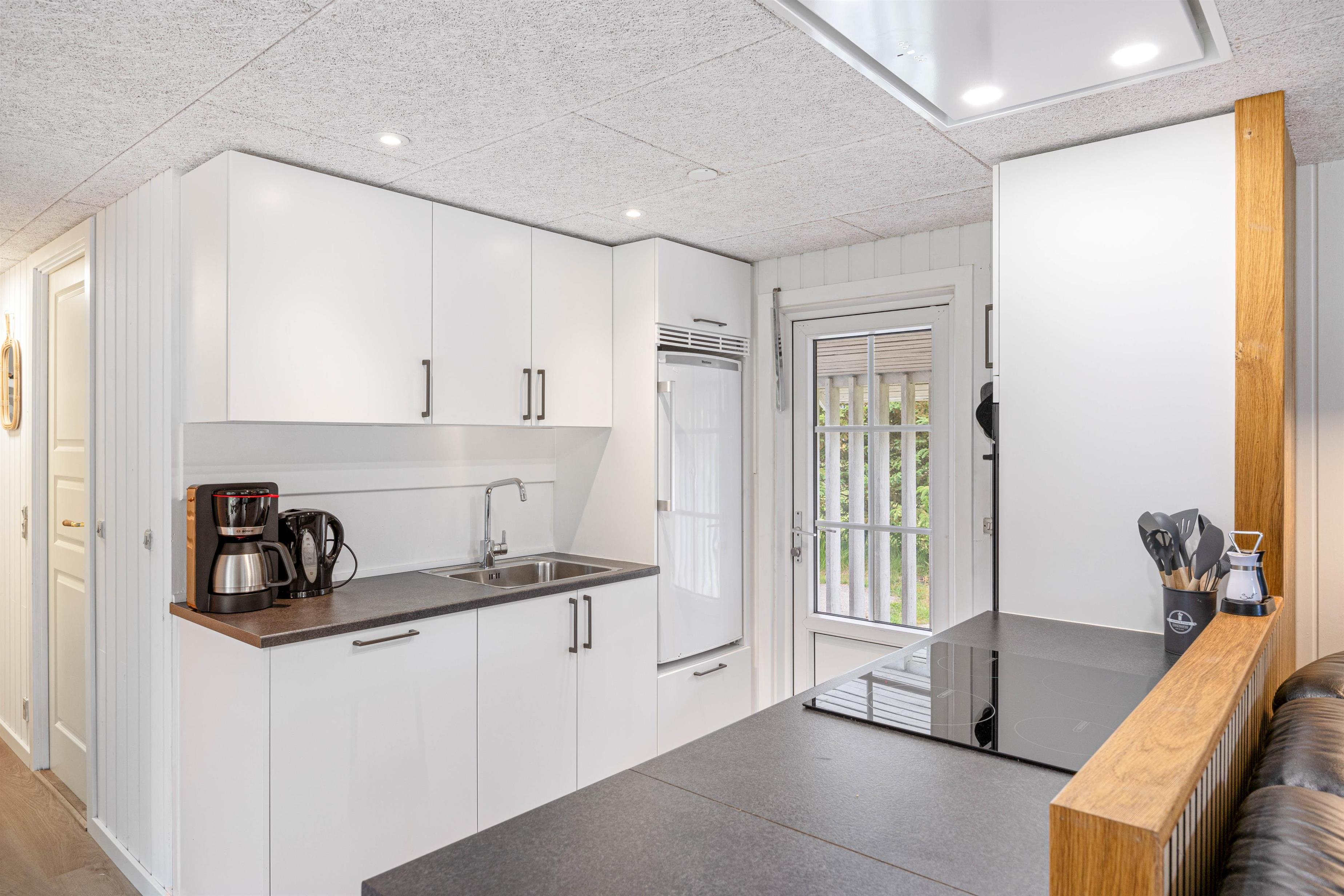 Omkring spisebordet kan I samles til et lækkert måltid, som I har tilberedt i det praktiske køkken. Her er bl.a. opvaskemaskine, mikrobølgeovn, en 70-liters fryser og induktionskomfur. Desuden er der en vaskemaskine til rådighed, så I kan opfriske strandhåndklæderne i løbet af ferien.