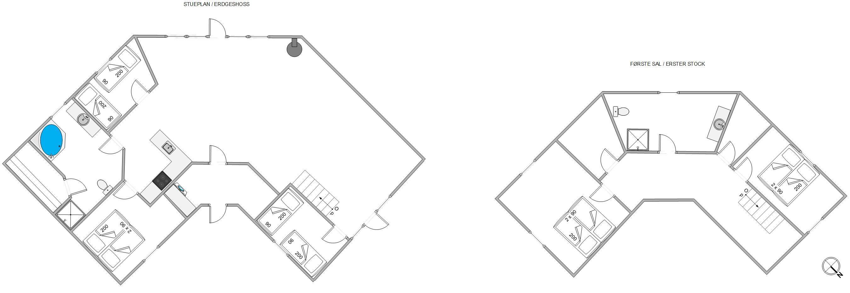 1. soverum/sengestørrelser2 x 90