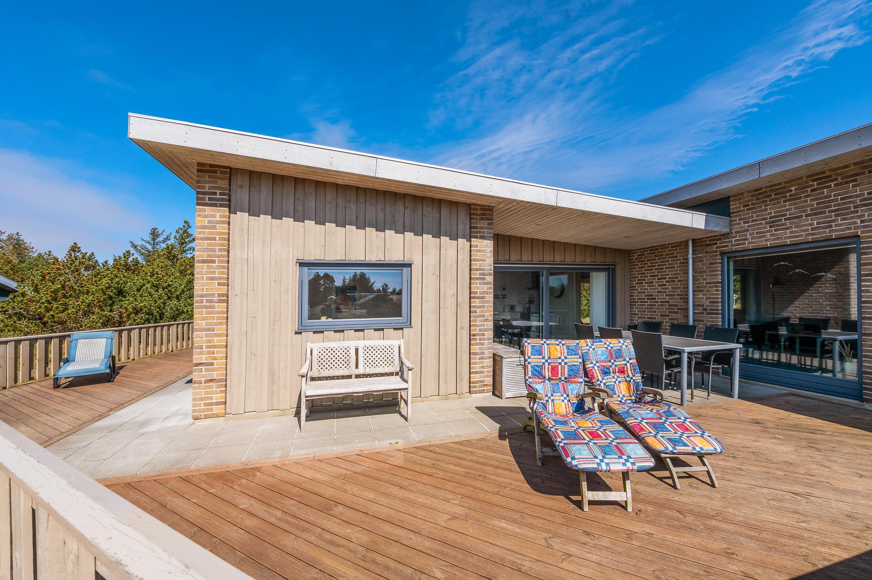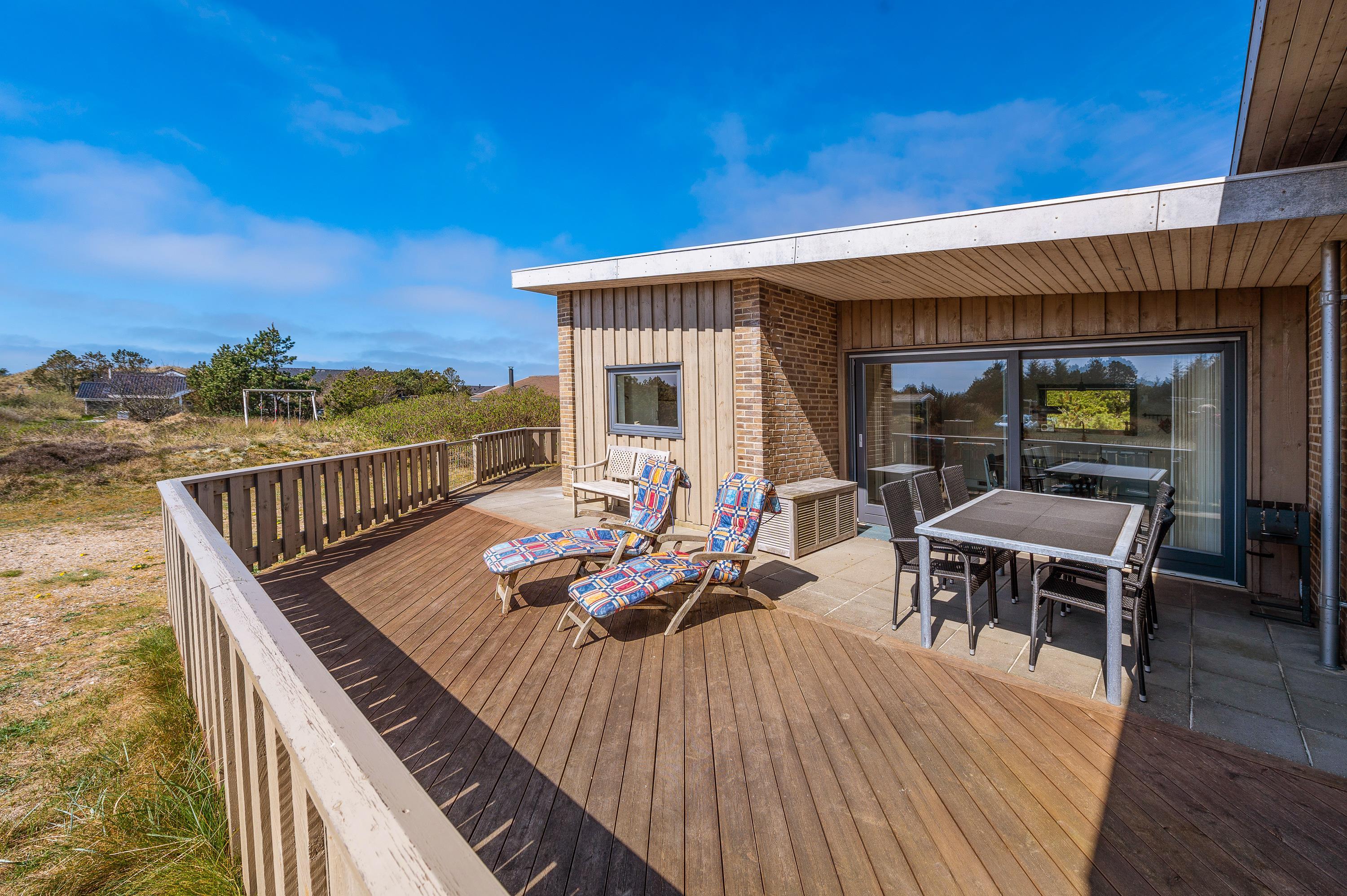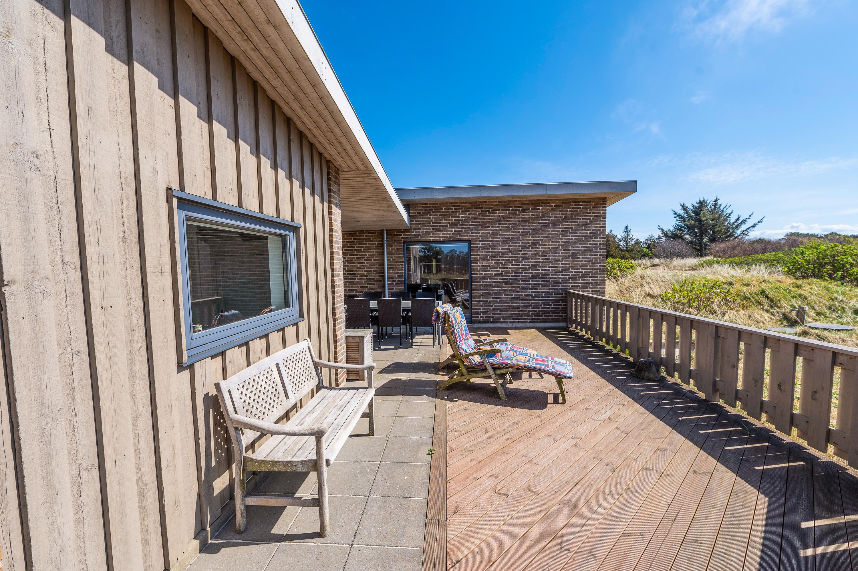 Den store terrasse er delvist overdækket og helt afskærmet, så der rundt om feriehuset findes mange gode lækroge, hvor I altid kan finde et roligt sted at nyde den storslåede natur, den friske luft og solens stråler. Sommerhuset ligger kun ca. 900 meter fra en af Danmarks bedste badestrande og ca. 300 meter fra den lokale, velassorterede købmand.
