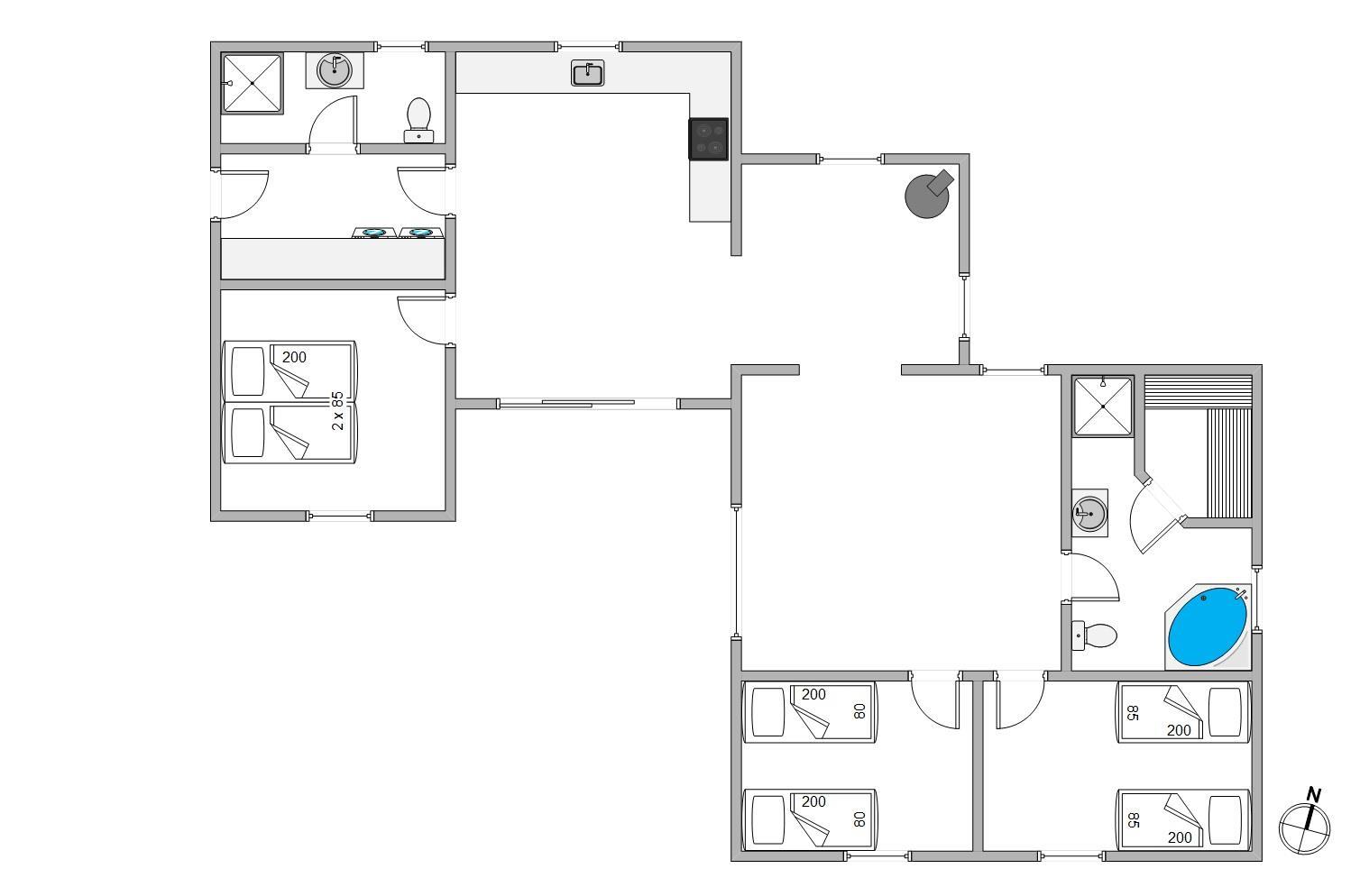 I den særdeles indbydende wellnessafdeling finder I både et lækkert spabad og en skøn sauna, som er perfekt til afslapning og velvære efter en oplevelsesrig feriedag i det danske ferieland. Sommerhuset har hele 2 badeværelser med gulvvarme, så der ikke bliver kø, når nogle af jer nyder en dejlig stund i spaen.