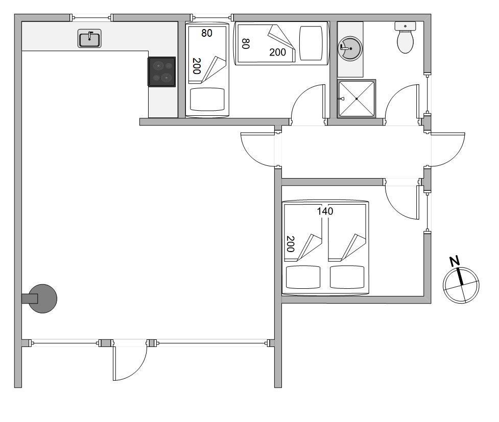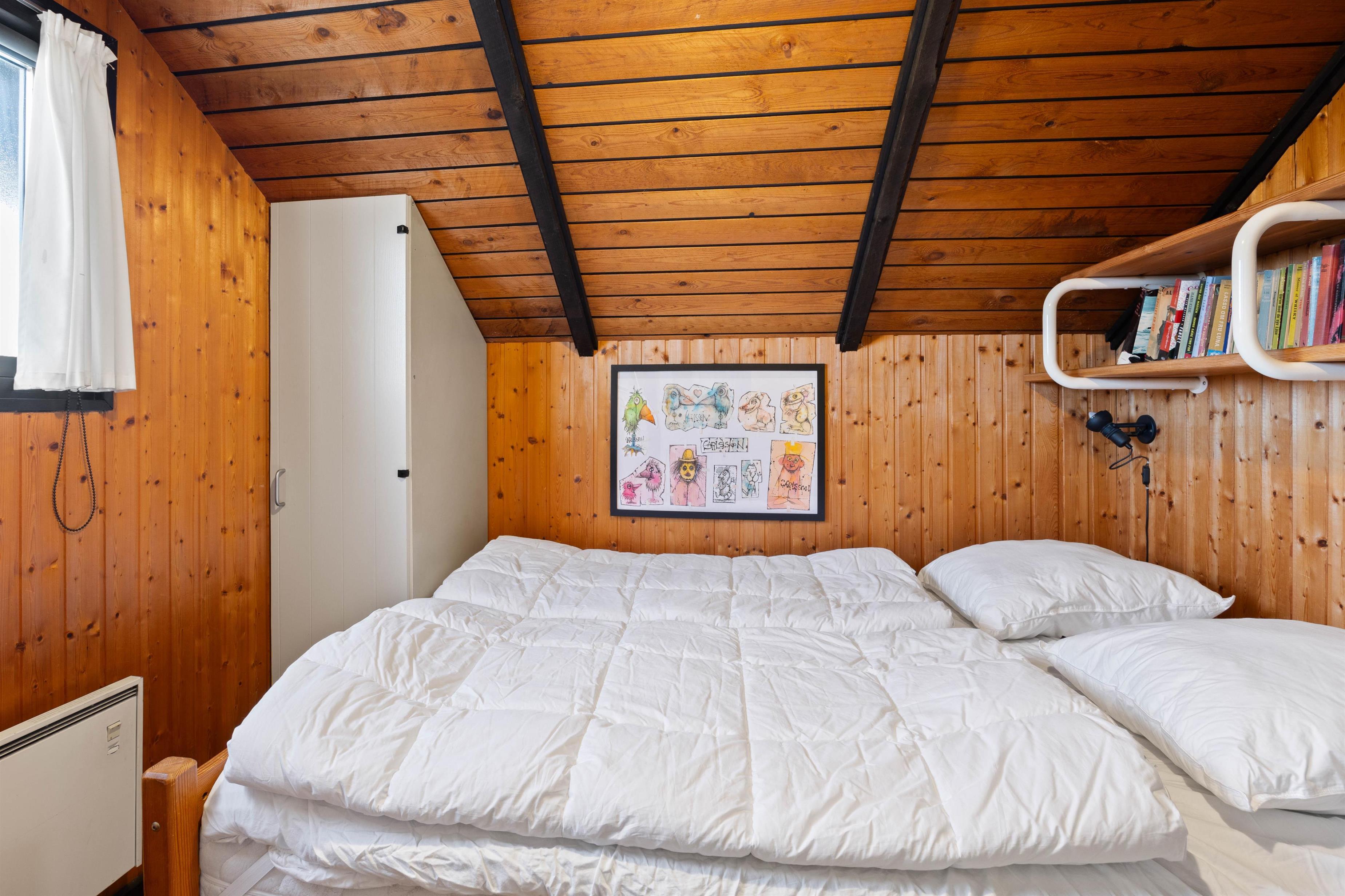 Feriehuset er traditionelt indrettet og her kan bo op mod 4 gæster samt deres firbenede ven. Her er hvad man har brug for at holde ferie. De varme træsorter på lofter og gulve skaber næsten fornemmelsen af en hule. Planløsningen byder på et fint lille badeværelse, 2 soveværelser samt en stue med åben forbindelse til køkken.
