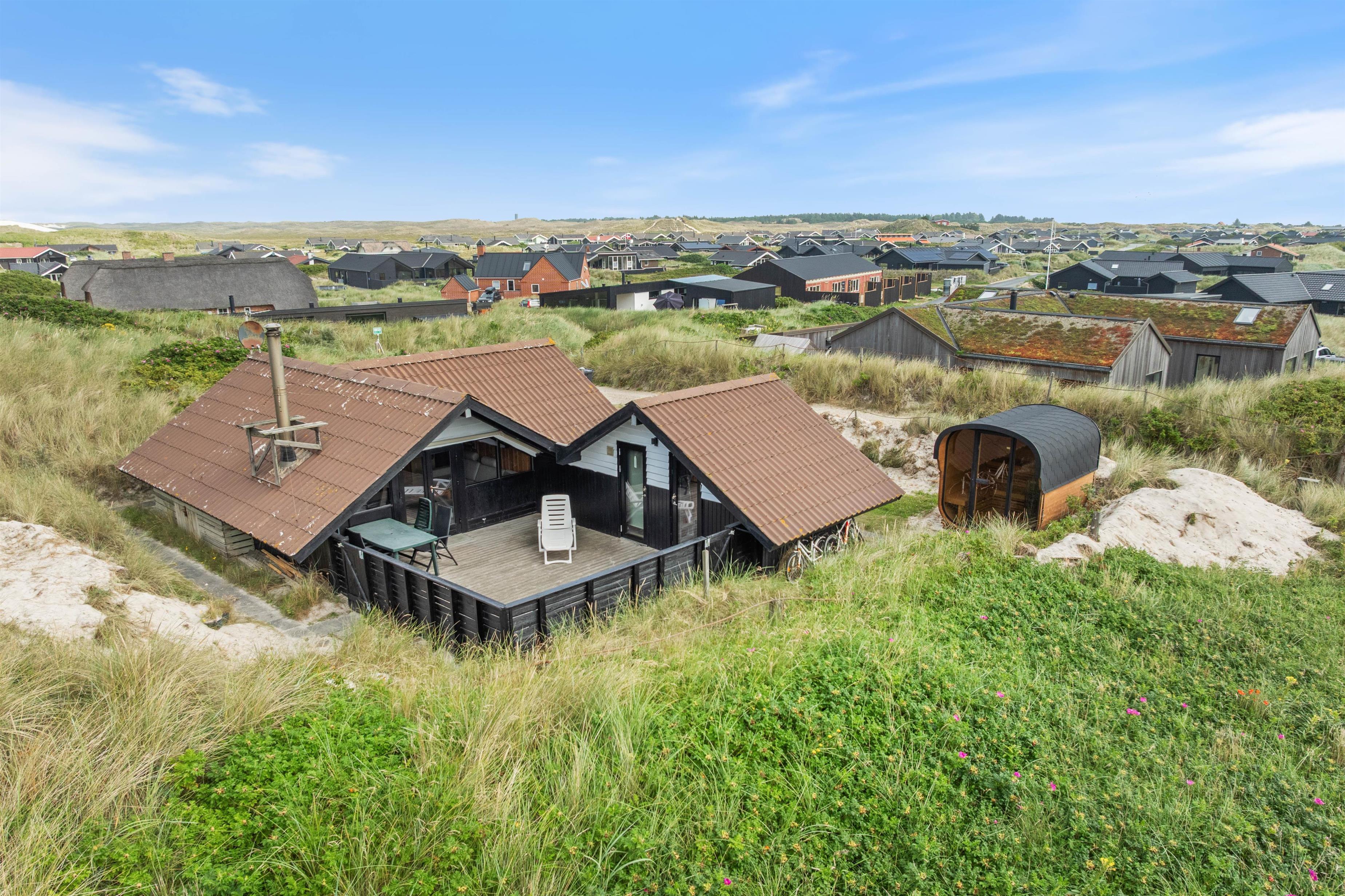 I den yderste klit, med Vesterhavet i baghaven, findes dette 50 m2 ældre 2-stjernede sommerhus, som er bygget i 1975. Det 2-stjernede sommerhus har en udesauna, en lukket og delvist overdækket terrasse, hvilket giver jer mulighed for at nyde ferien både inde og ude med Vesterhavets brusende lyd i baggrunden.