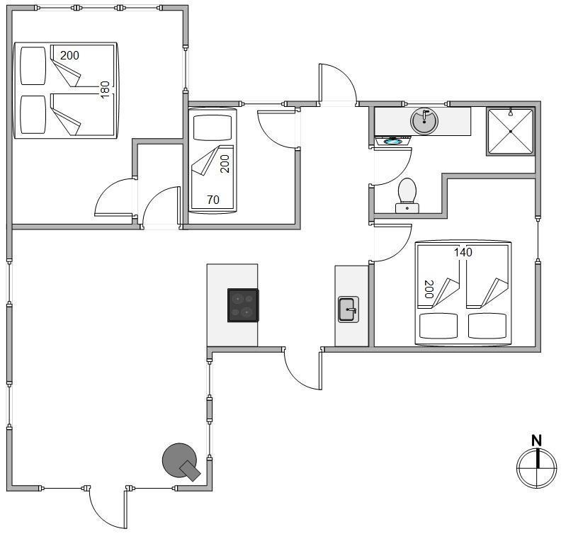 Det 80 kvadratmeter store sommerhus har plads til op til 5 personer. I stuen kan I hygge jer foran ilden i brændeovnen, og straks vil feriestemningen brede sig, uanset årstiden. I de 3 soveværelser kan I hvile ud efter en dag fyldt med oplevelser. Læg mærke til, at den friske vesterhavsluft gør noget godt for nattesøvnen.