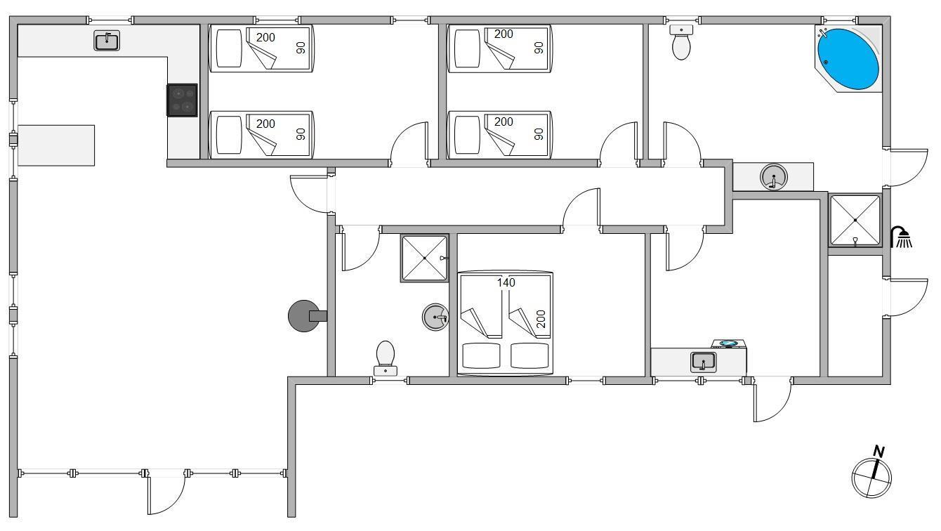 Badeværelserne har alt, hvad I har brug for, og på det ene er der endda et spabad til afslapning og velvære. I bryggerset finder man både vaskemaskine og tørretumbler, hvilket gør feriepakningen let. En energireducerende varmpumpe finder i naturligvis også her. Overalt er der flotte trægulve eller klinker.