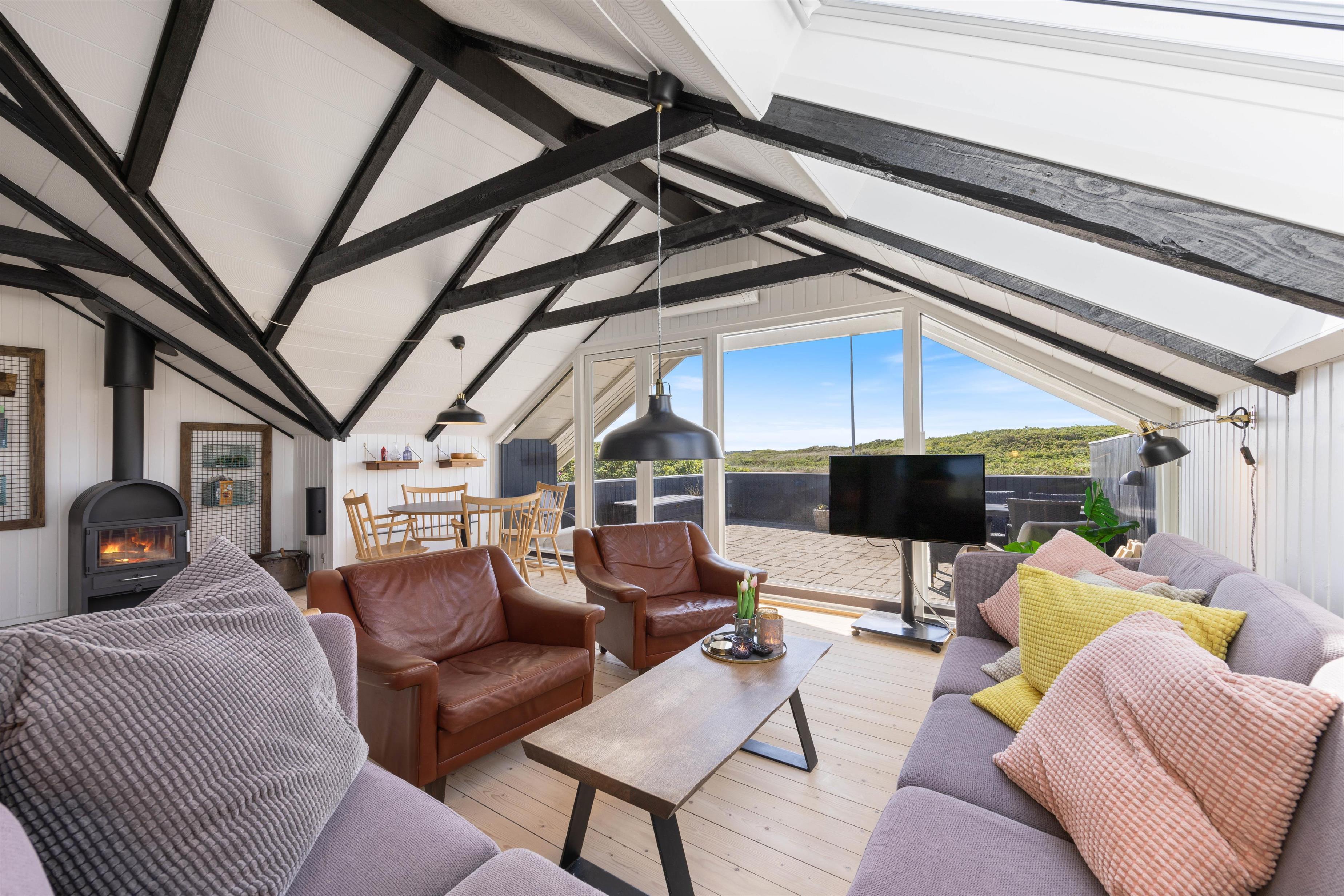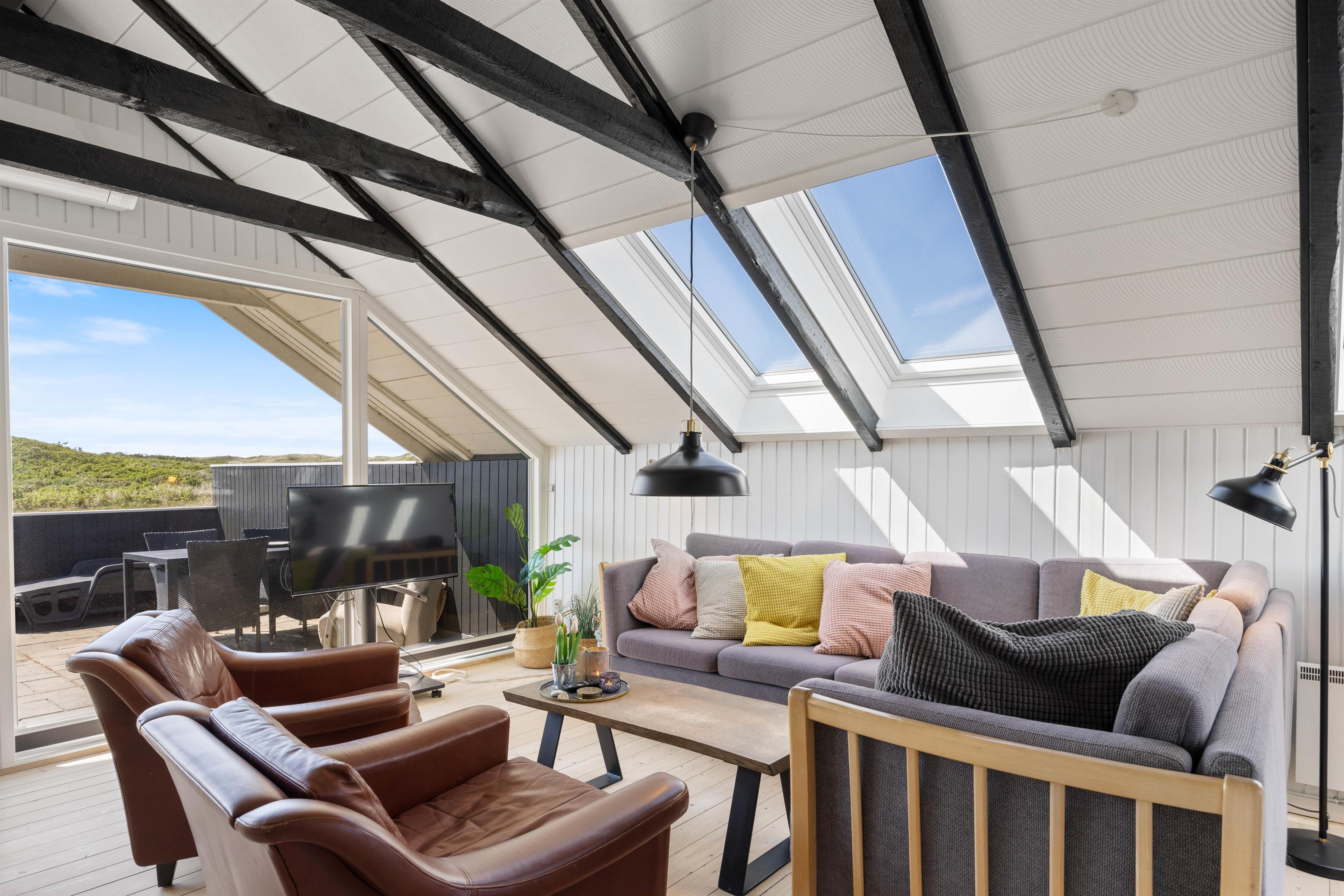 En hyggelig og lukket terrasse mod syd indbyder til masser af udendørs aktivitet. Her kan man nyde morgenkaffen til solopgangen over Ringkøbing Fjord mod øst – og senere kan man nyde solnedgangen over klitterne og Vesterhavet mod vest, måske sammen med en veltilberedt grillmiddag – og med havets beroligende brusen i baggrunden.