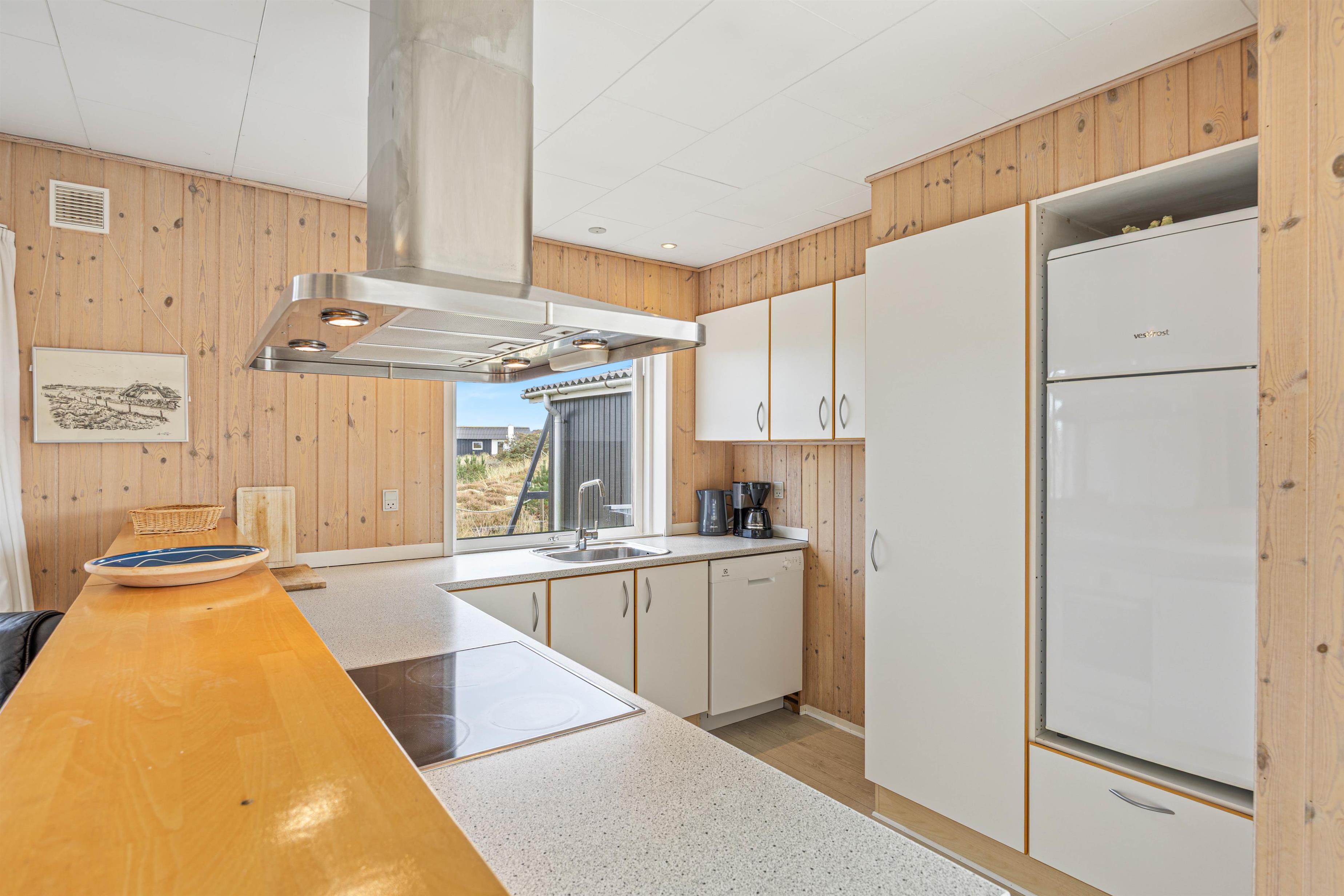 Køkkenet er dejligt lyst og åben ud mod stuen, så man også kan deltage i hyggen herfra. Og køkkenet er naturligvis udstyrret med moderne husholdningsapparater og hårde hvidevarer, der gør de huslige gøremål nemme og bekvemme under ferien.
