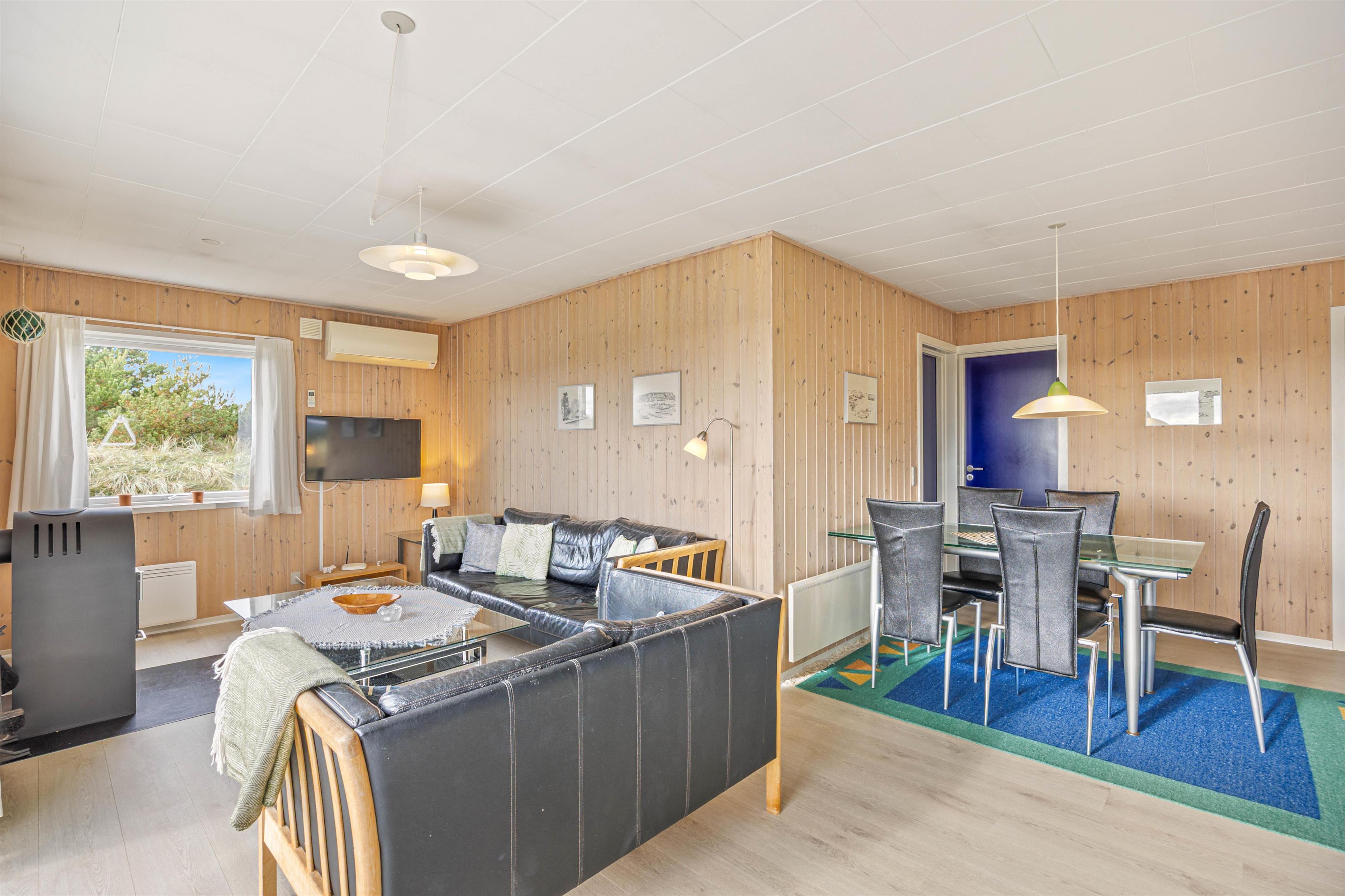 Dette velholdte og hyggelige feriehus er helt ideelt til mindre familier eller par, der ønsker at komme ud i den vestjyske natur, da det ligger på en skøn naturgrund i gåafstand fra klitterne og Vesterhavet. Omgivelserne kan også nydes fra den lukkede terrasse.