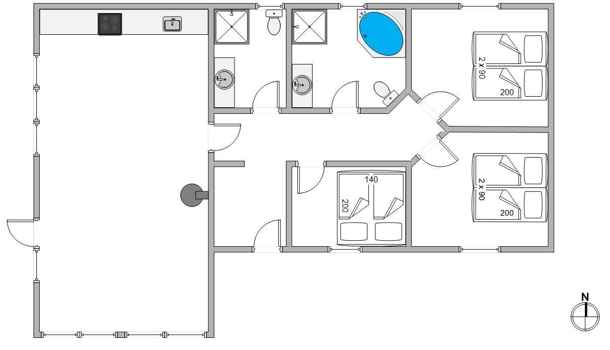 I dette skønne sommerhus er der plads til i alt 6 personer. Her er 2 soveværelser med gode dobbeltsenge og et lidt mindre værelse med en dobbelt sovesofa og fjernsyn, hvor ungerne kan se en tegnefilm eller spille på en medbragt spillekonsol.
