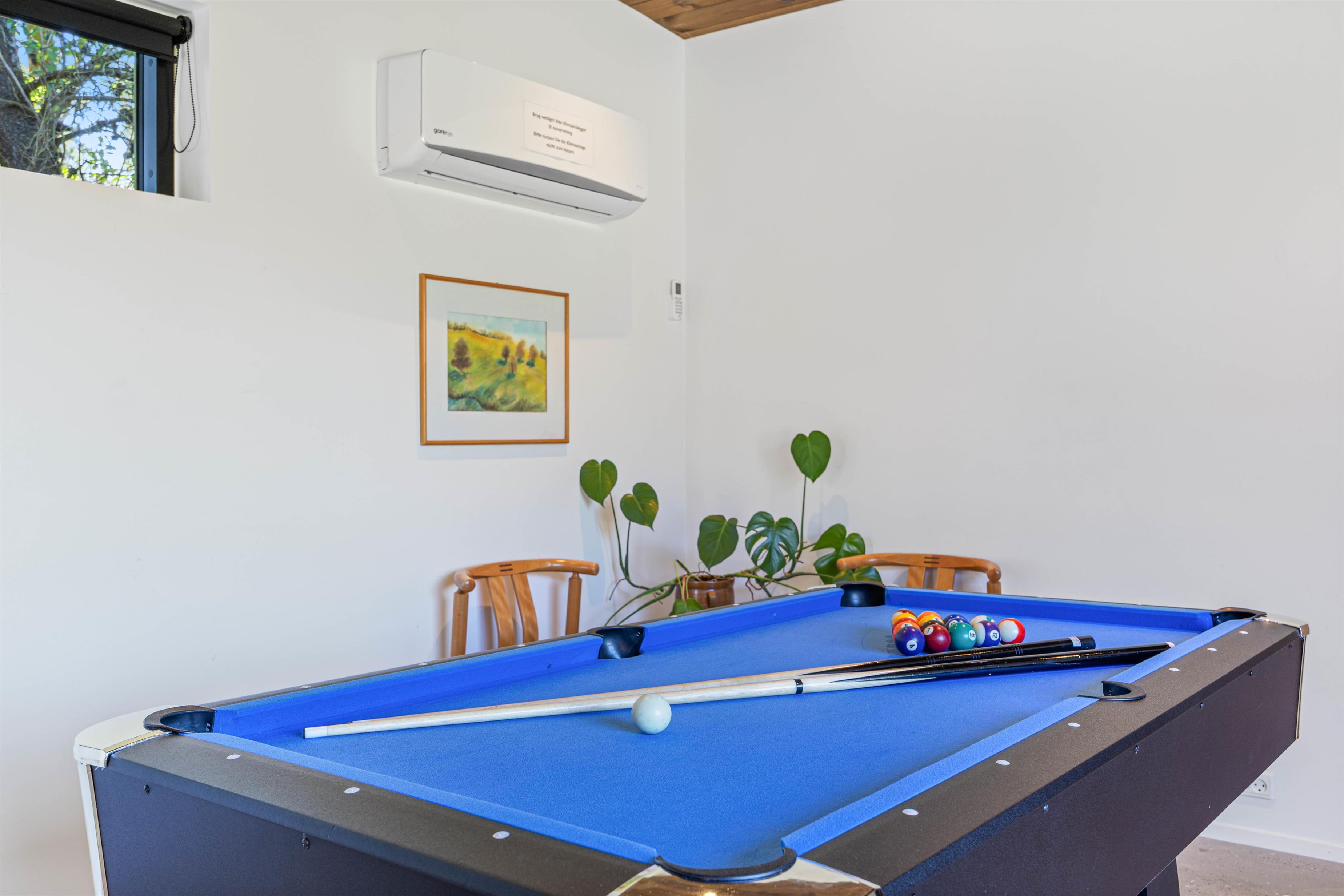 Sommerhusets akitivtetsrum byder på sjov for hele familien. Her kan I arrangere turneringer på kryds og tværs og finde familiens spillemester i billard.