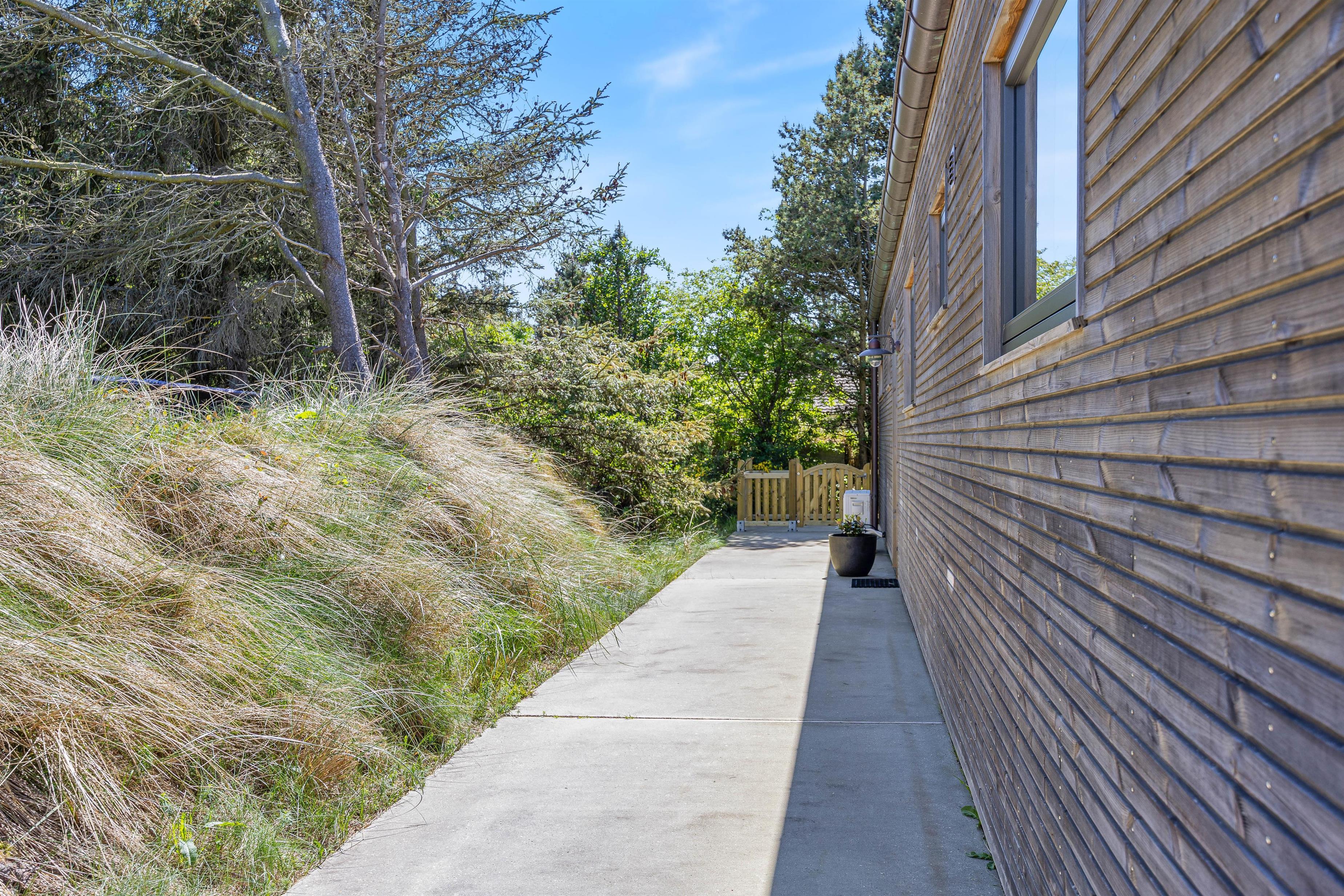 Det luksuriøse sommerhus ligger i det populære ferieområde Bjerregård, som byder på et skønt hede- og klitlandskab. Her er et rigtig godt stisystem, som forbinder det naturskønne område.