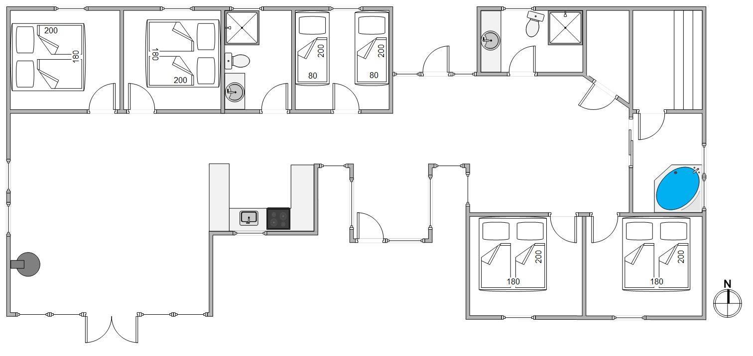 Med de 2 opholdsrum, hele 5 soverum og 2 badeværelser er sommerhuset ganske velegnet til storfamilien – eller til 2 familier som gerne vil holde en skøn vesterhavsferie sammen.