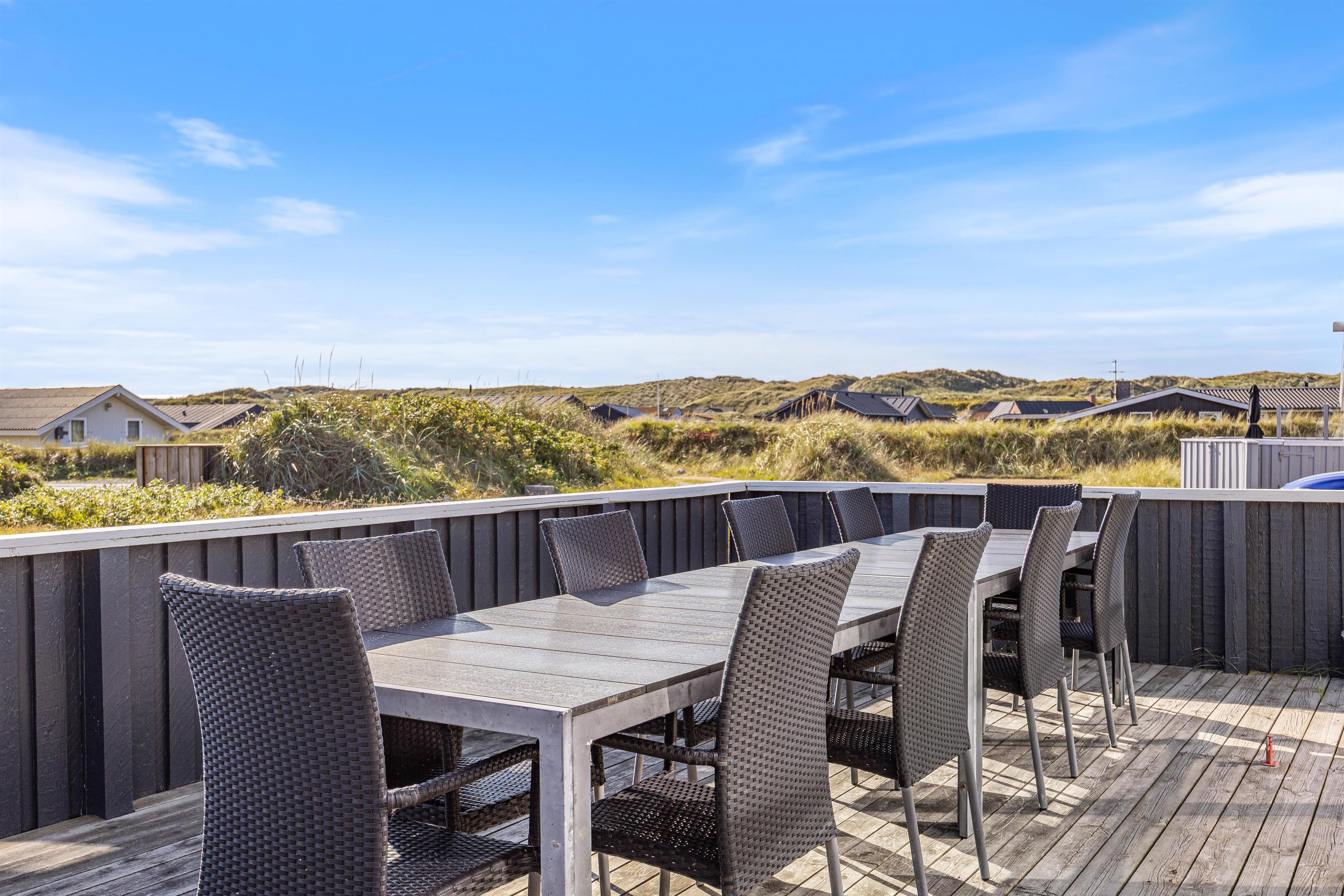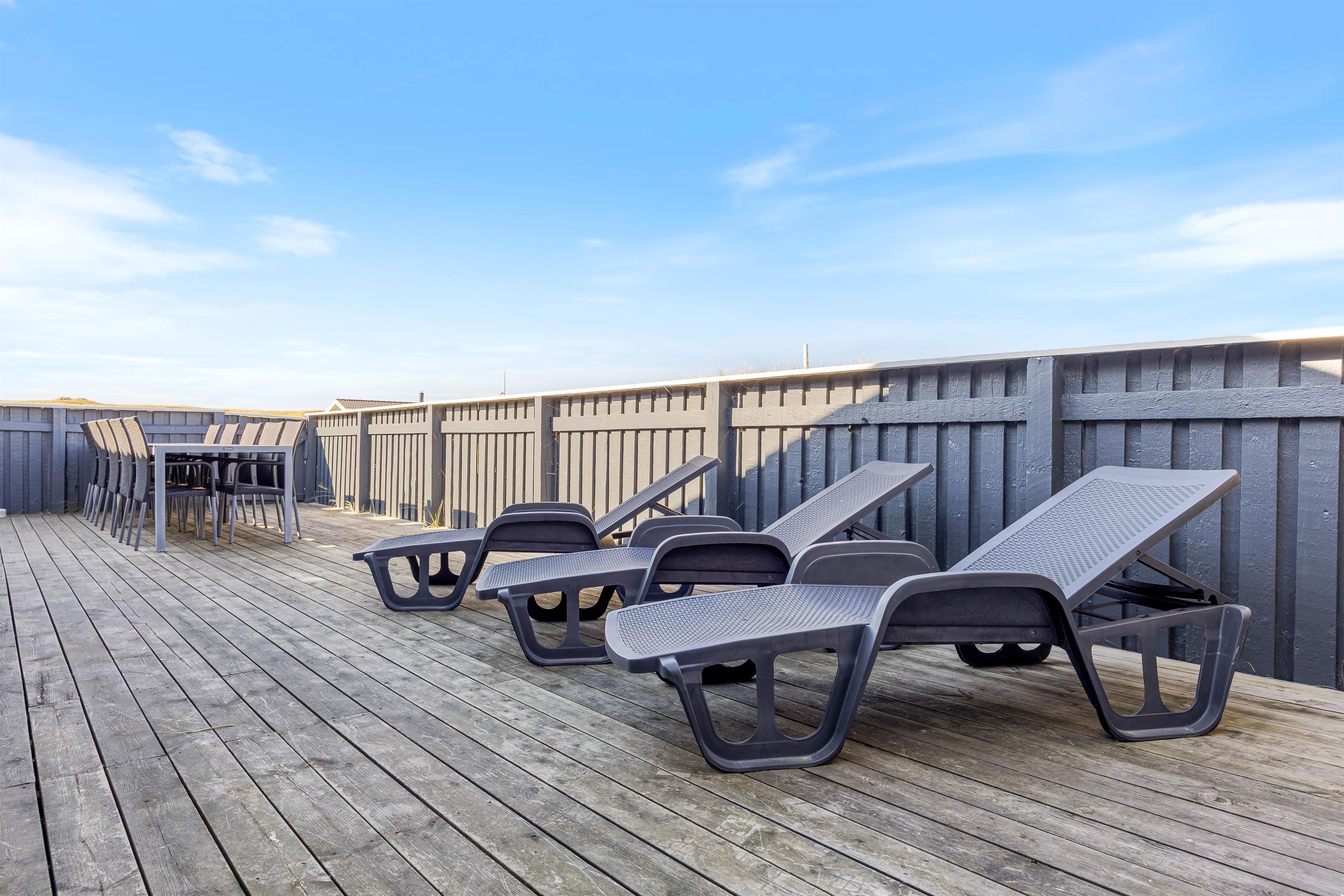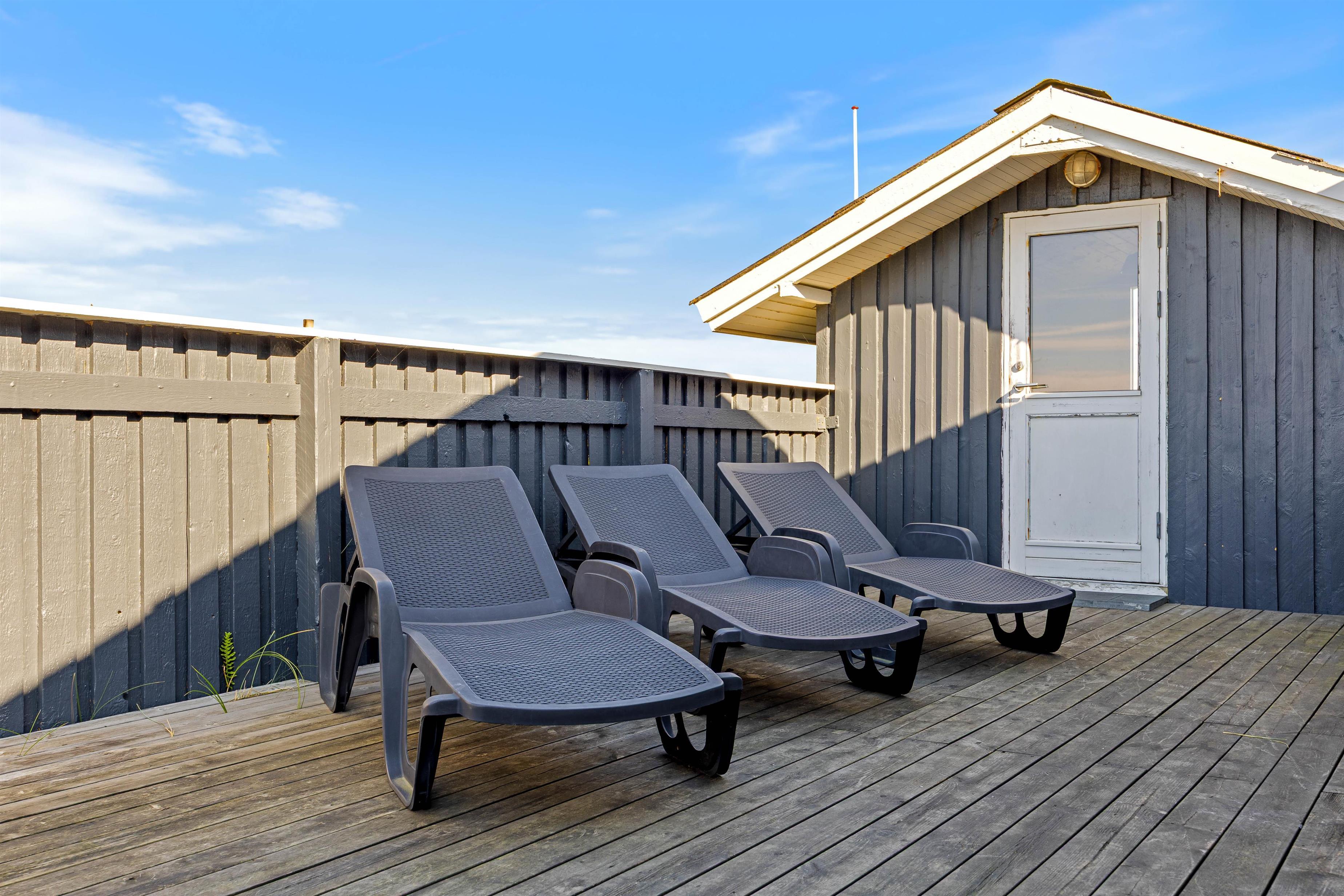 Nyd ferien på den store lukkede sydøst vendte terrasse. Slap af i liggestolene, luk øjnene og bare nyd solen og den friske luft, mens børnene spiller bold, gynger eller leger i sandkassen.