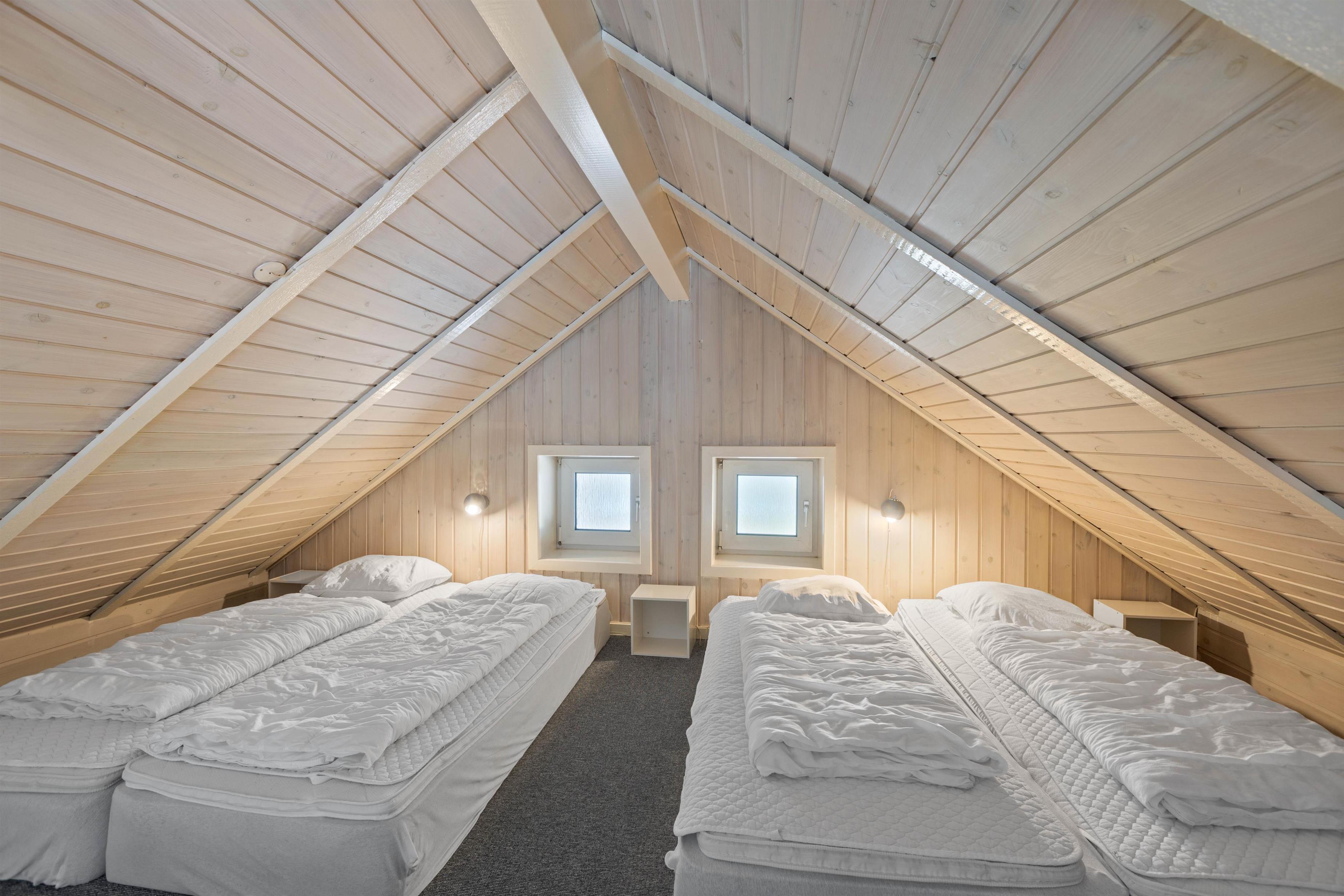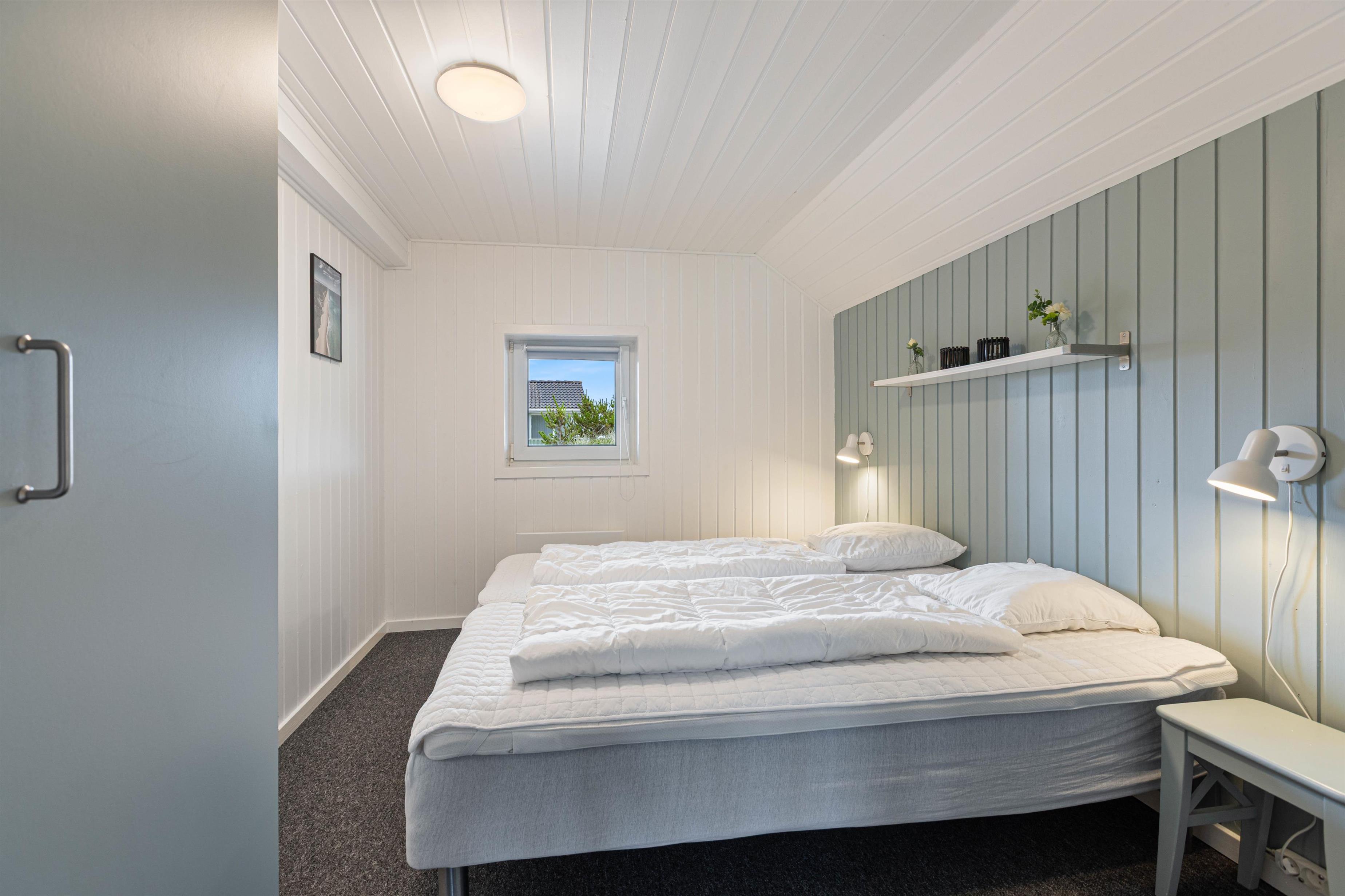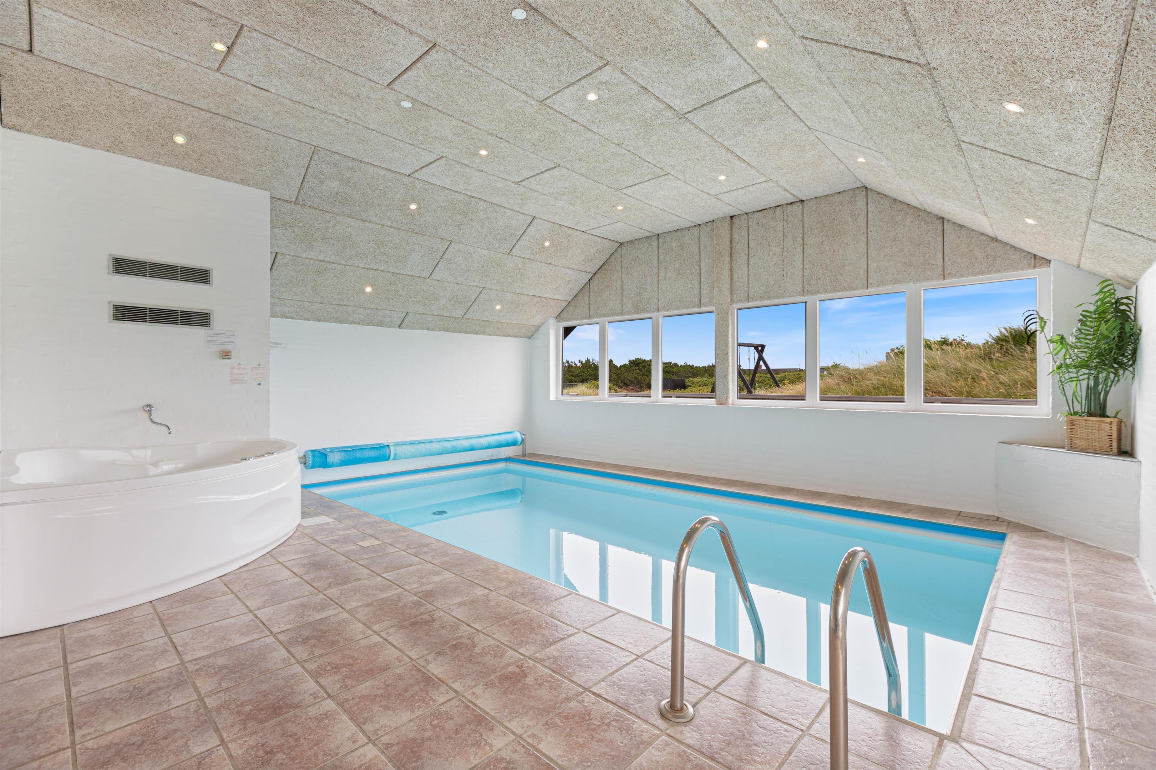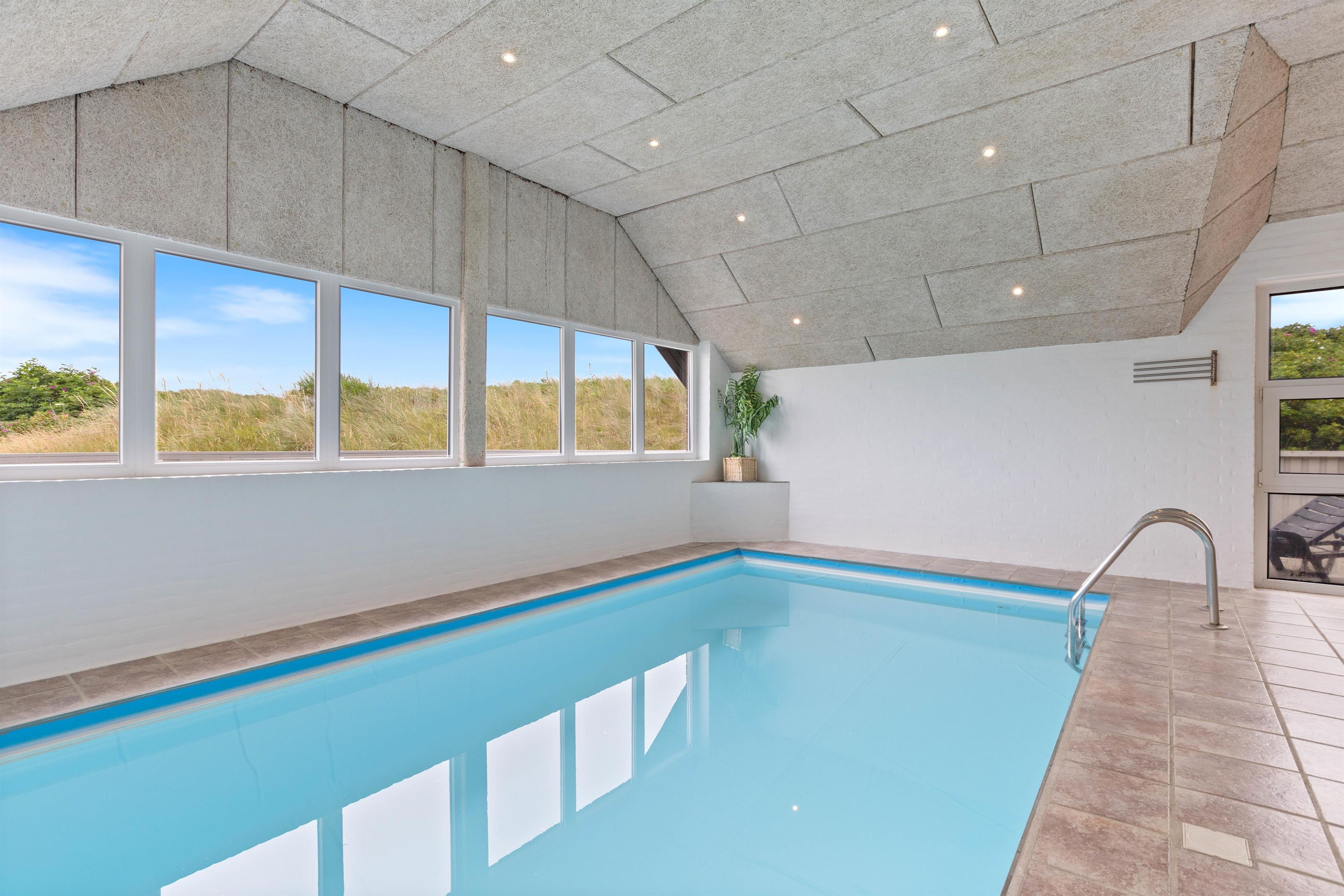 Det skønne poolområde gør jer uafhængige af vejret. Børnene kan plaske rundt i swimmingpoolen, imens I nyder boblerne i spaen, og måske derefter bliver rigtig godt gennemsvedte i saunaen. I de 4 soveværelser i stueetagen kan I sove ud i den friske Vesterhavsluft. De 2 har komfortable dobbeltsenge, de 2 andre har hver 2 enkeltsenge. På hemsen er der ”sovesal” med 4 enkeltsenge, det vil børnene elske.