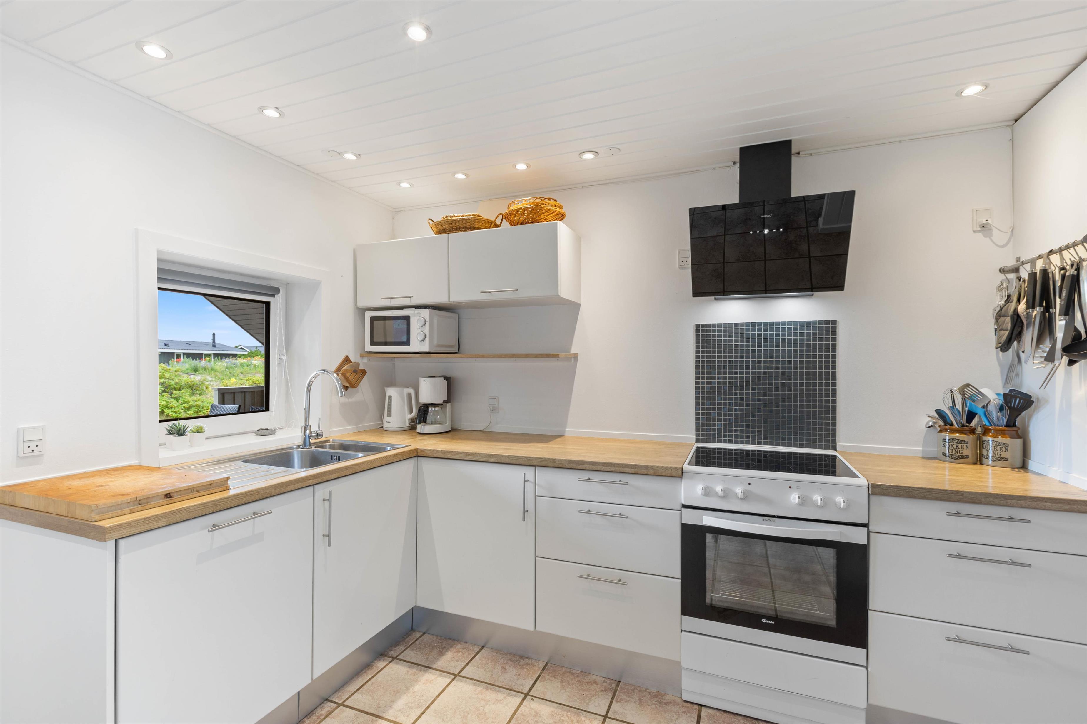 Dette skønne poolhus kan rumme en dejlig ferie med familien eller vennerne. I sommerhuset er der plads til op til 12 personer, og hundene er også velkomne her. I det rummelige køkken kan I tilberede lækre måltider, som I kan forkæle hinanden med. I stuen er der både spiseplads og sofagrupper, så her kan I nyde samværet og fritiden. Tænd op i brændeovnen, og lav en ludo-turnering, eller sæt popcorn over til en filmaften.
