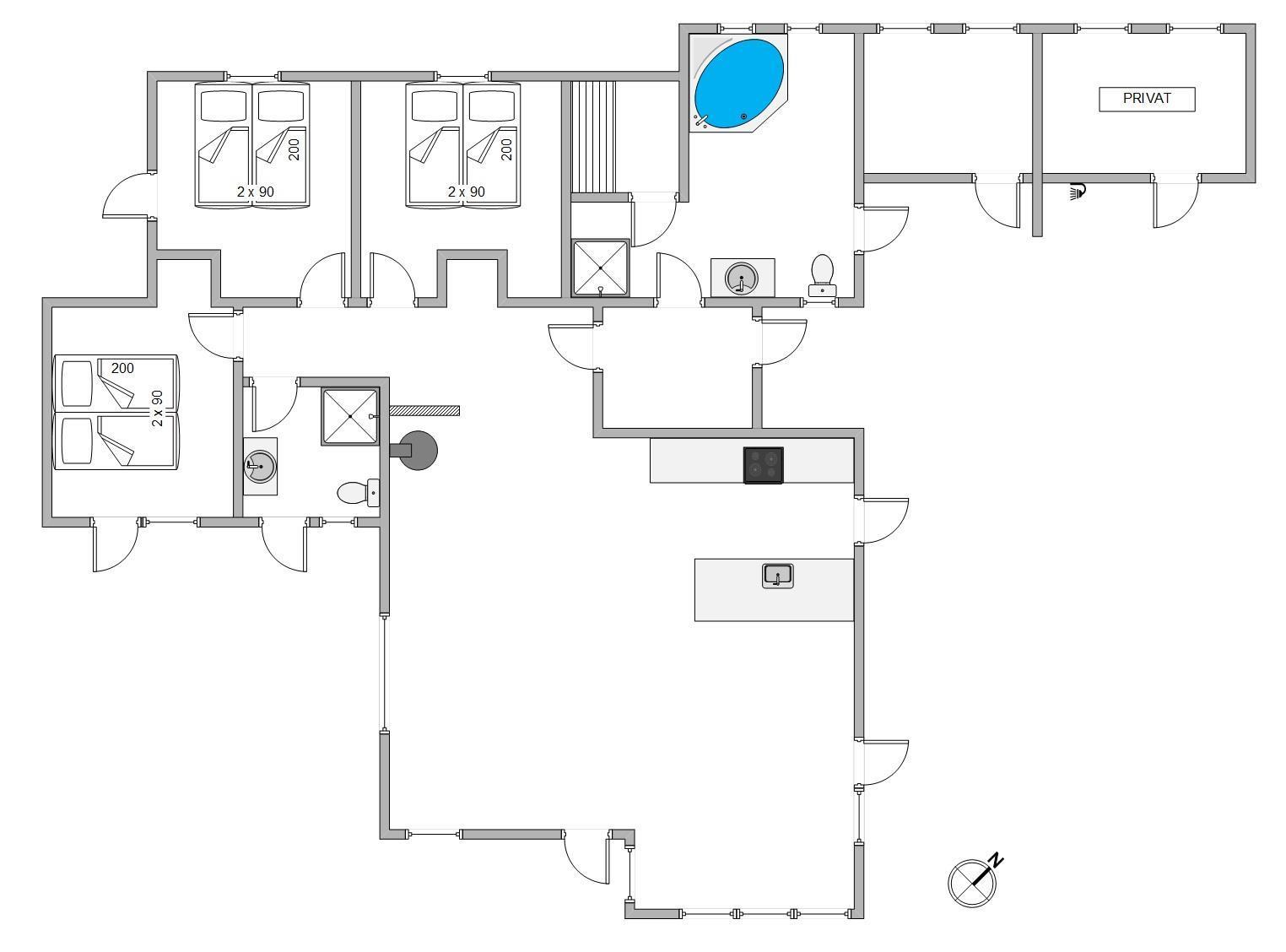 Feriehuset er helt ideelt til dig, der ønsker masser af afslapning og kvalitetstid med familien eller vennerne. Det er rigtig dejligt indrettet, så du har et stort fællesrum i form af stuen, spiseafdelingen og det åbne køkken. Her kan I alle være sammen og nyde hinandens selskab.