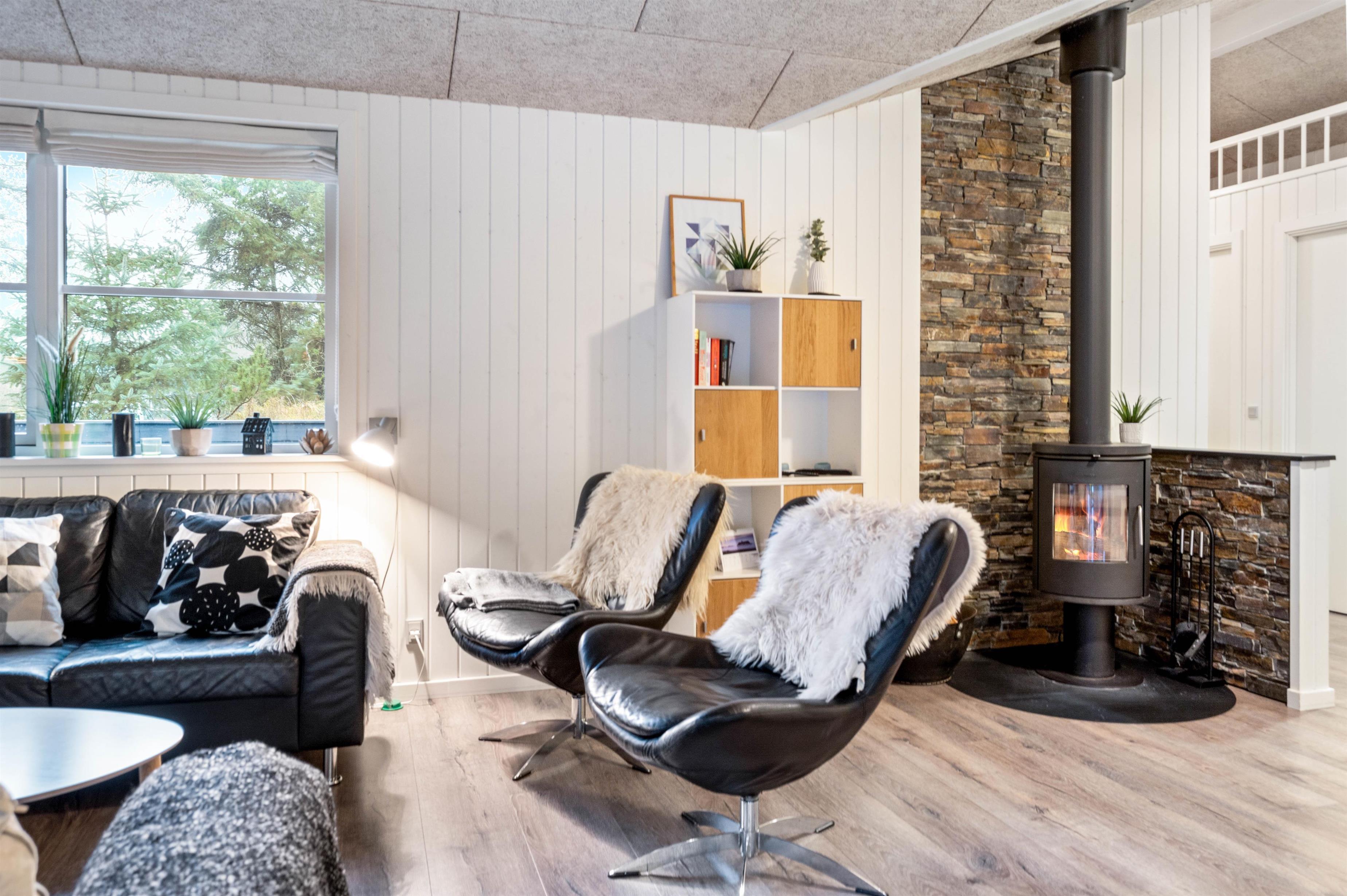Den hyggelige stue bliver fuldendt af brændeovnen, som giver god varme og masser af hyggelig feriestemning, når I slapper af i sofaen med en god bog eller en film og et glas vin.