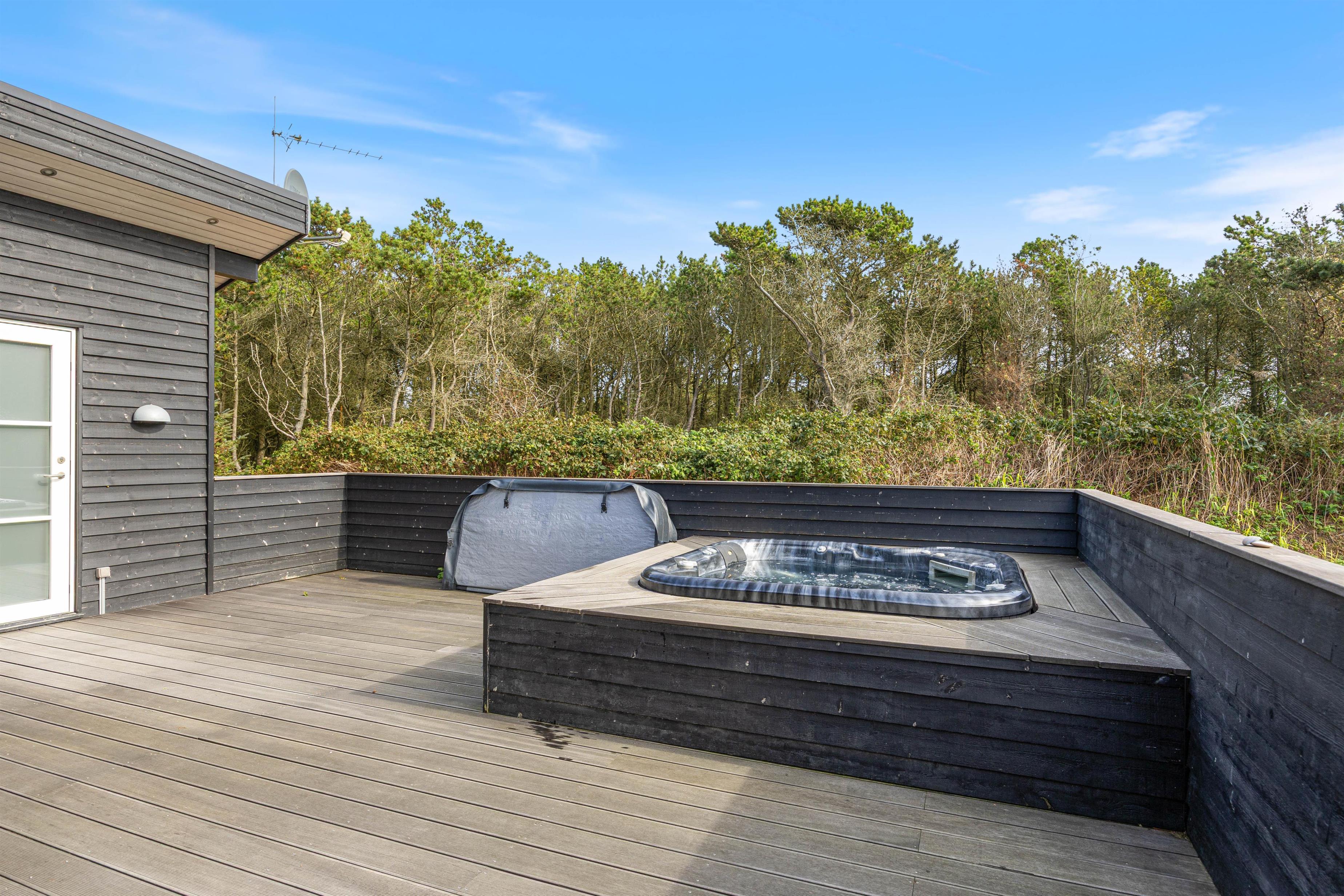 På terrassen er der også sat en udendørs bruser op – både med varmt og koldt vand. Så efter spa- og saunabesøg kan du blive kvikket op. Og efter en tur ved stranden kan du skylle sandet og salten af, og måske give hunden et lille bad. Bruseren kan bruges fra april til november .
