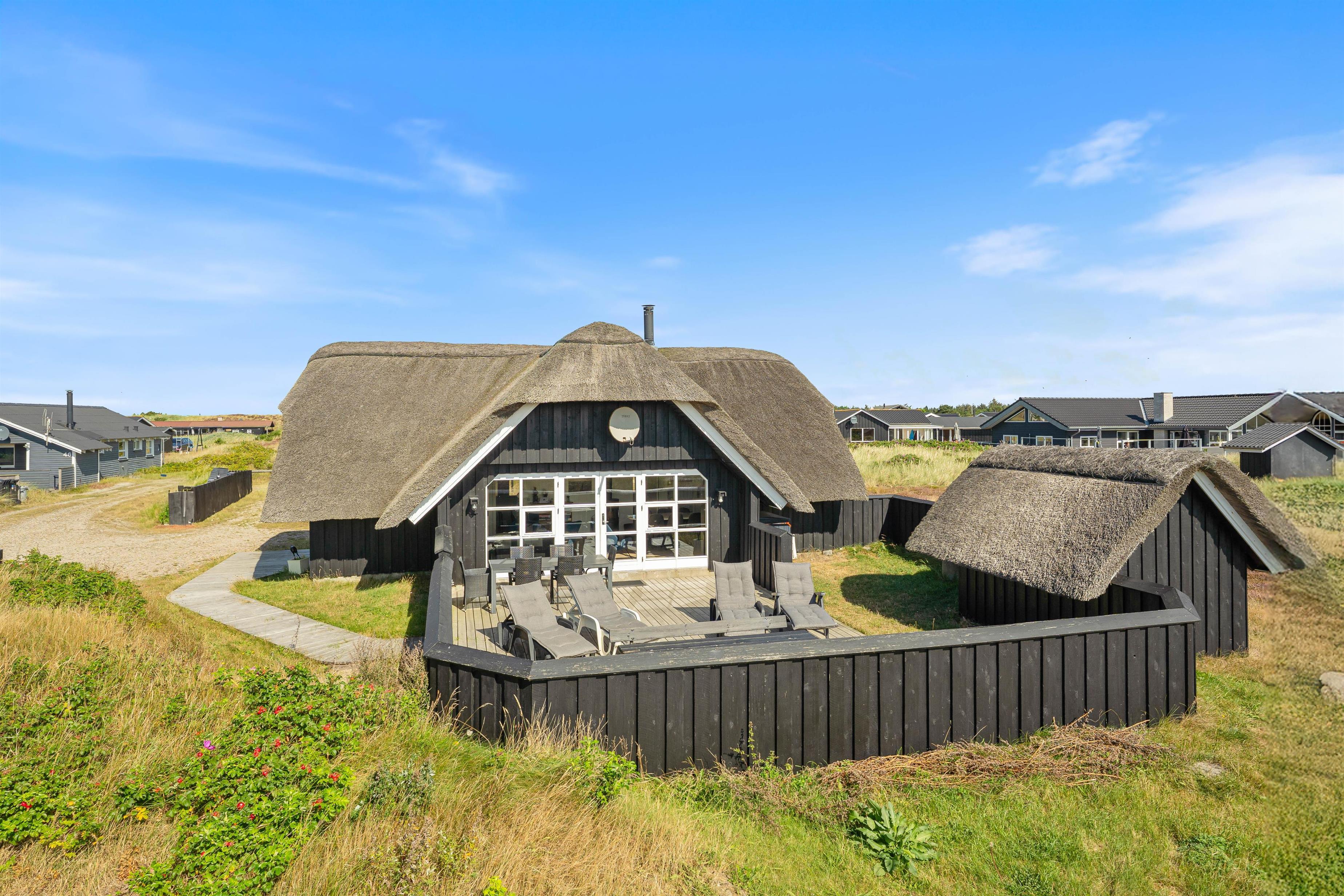 Op til 6 personer kan holde ferie i dette lyse og venligt indrettede feriehus med stråtag i Bjerregård. Sommerhuset omgives af en dejlig læfyldt og lukket terrasse, beliggende på en stor naturgrund. Kun ca. 500 m til stranden og ca. 700 m til dagligvarebutik. Din hund er også velkommen.
