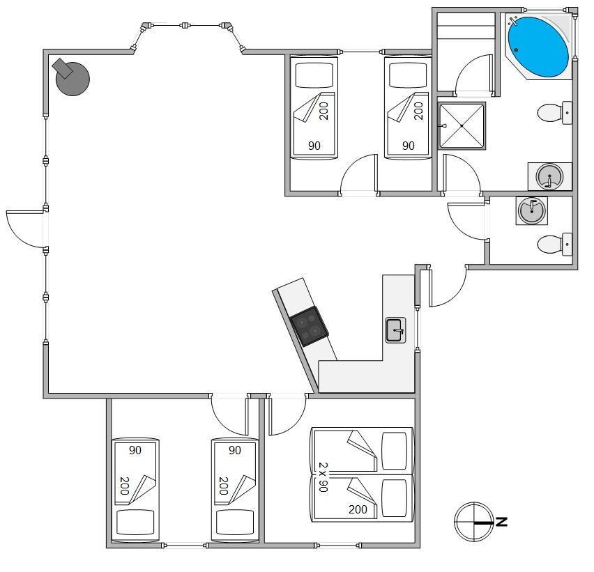 Sommerhuset i Bjerregård ligger på en 1923 m2 stor naturgrund, hvor der både er plads til udendørs aktiviteter og afslapning. En grill og komfortable havemøbler indbyder til hyggelige grillaftener, mens liggestole står klar til afslappende timer i sommersolen. Rundt om huset finder I flere gode terrasseområder; herunder en lukket og delvist overdækket terrasse.