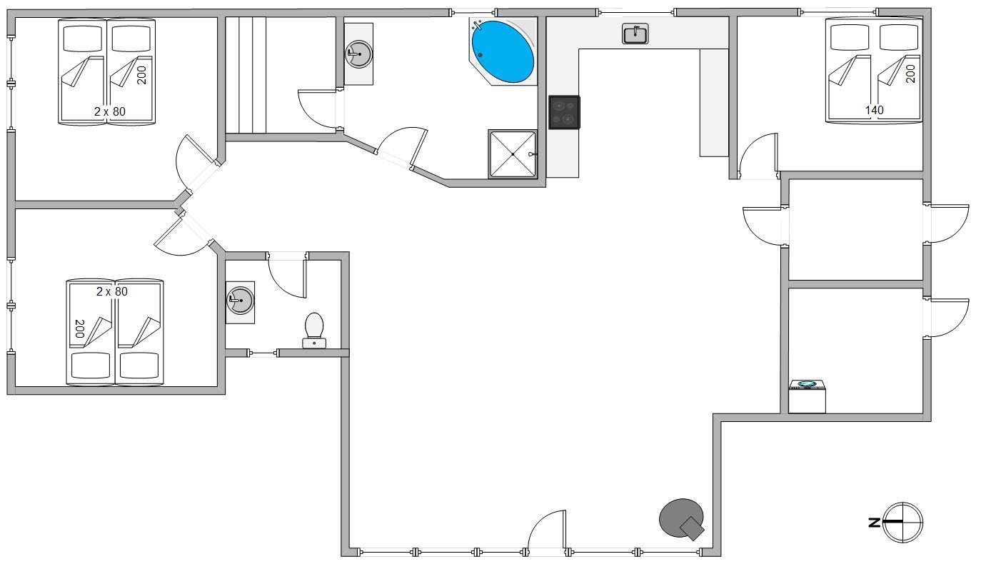 Feriehuset på Bjerregårdsvej 228 har plads til 6 personer fordelt på 3 dobbeltværelser med dobbeltsenge i hvert værelse, og i sommerhuset er også et godt bryggers med plads til at stille jeres ting og overtøj osv.