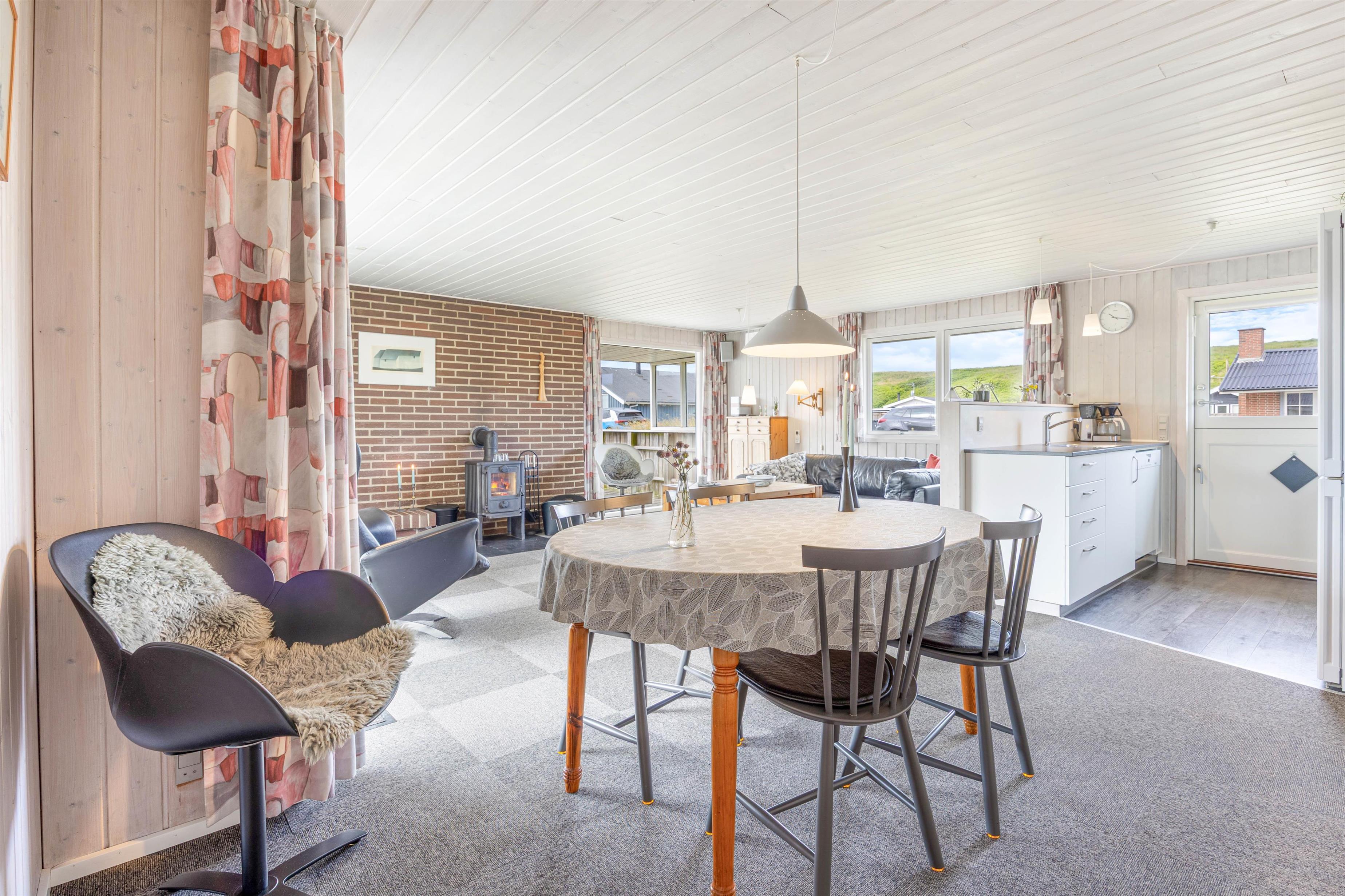 Kun 150 m fra Vesterhavet ligger dette charmerende sommerhus. Her er en fin sauna og et dejligt udeområde, hvor I kan nyde den friske vesterhavsluft på klitgrunden. 78 velindrettede kvm giver plads til op til 5 gæster, og familiens hund er også velkommen.