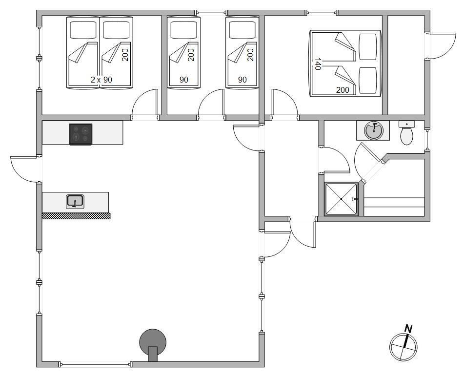I vil føle jer hjemme, straks I træder ind i den rummelige stue med sofahjørne, spiseplads og åbent køkken. Her kan hele familien samles. Mens nogle ser tv eller spiller et brætspil ved spisebordet, kan de andre tilberede lækre måltider i køkkenet. Tænder I op i brændeovnen, dukker den hyggelige feriestemning op. Med en energibesparende varmepumpe kan I både holde en behagelig temperatur, og skære toppen af varmeudgifterne.
