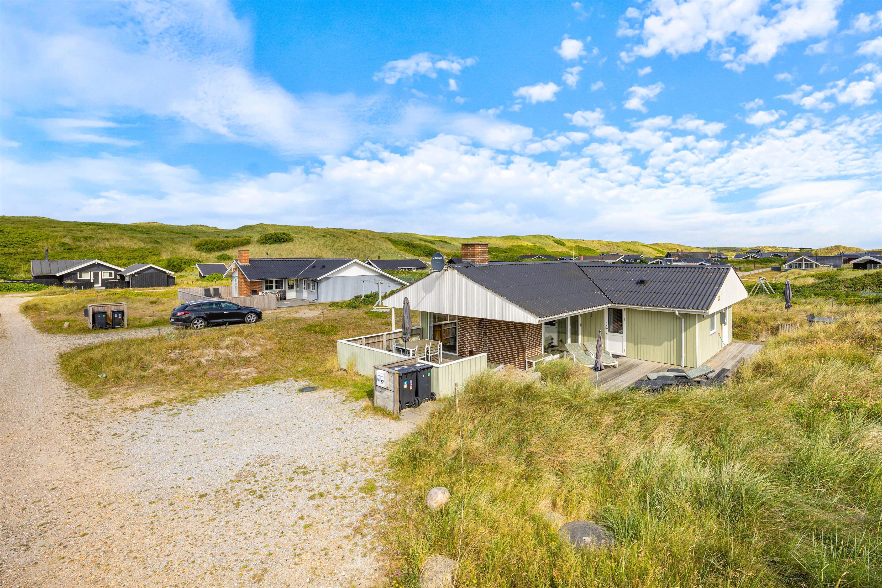 På den 1600 kvm store klitgrund er der en delvist overdækket terrasse, hvor du kan slappe af i fred og ro. Du kan tilberede en lækker middag med frisk fisk, pølser eller bøffer på husets grill. Med beliggenheden for enden af en blind vej og tæt på Vesterhavet, vil du have havets brusende bølger som lydtæppe på ferien. På den tilstødende klit er der yderligere siddepladser, så du kan vælge din favoritplads alt efter vejret. Gå ikke glip af solnedgangen, som du kan se fra bænken i klitterne.