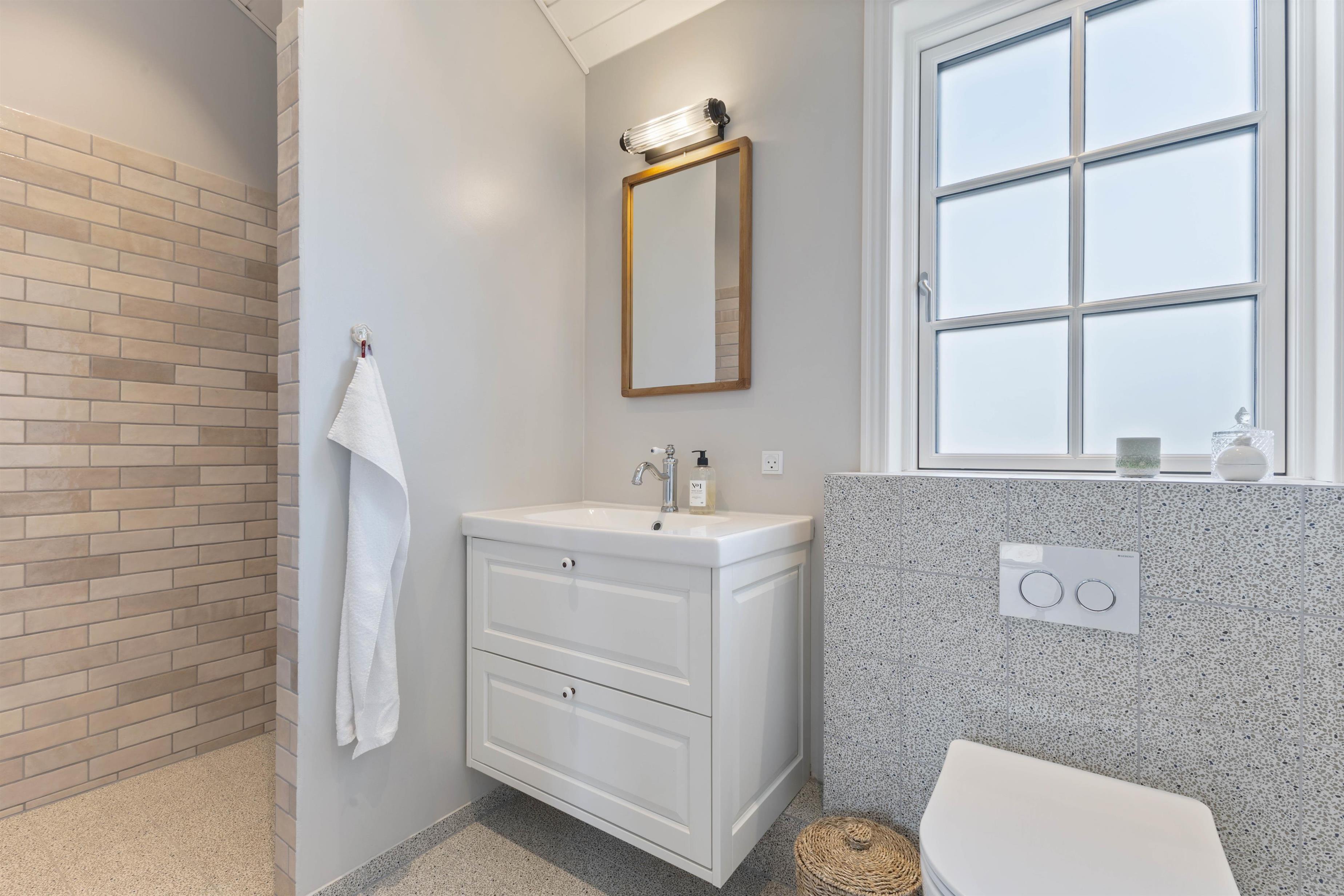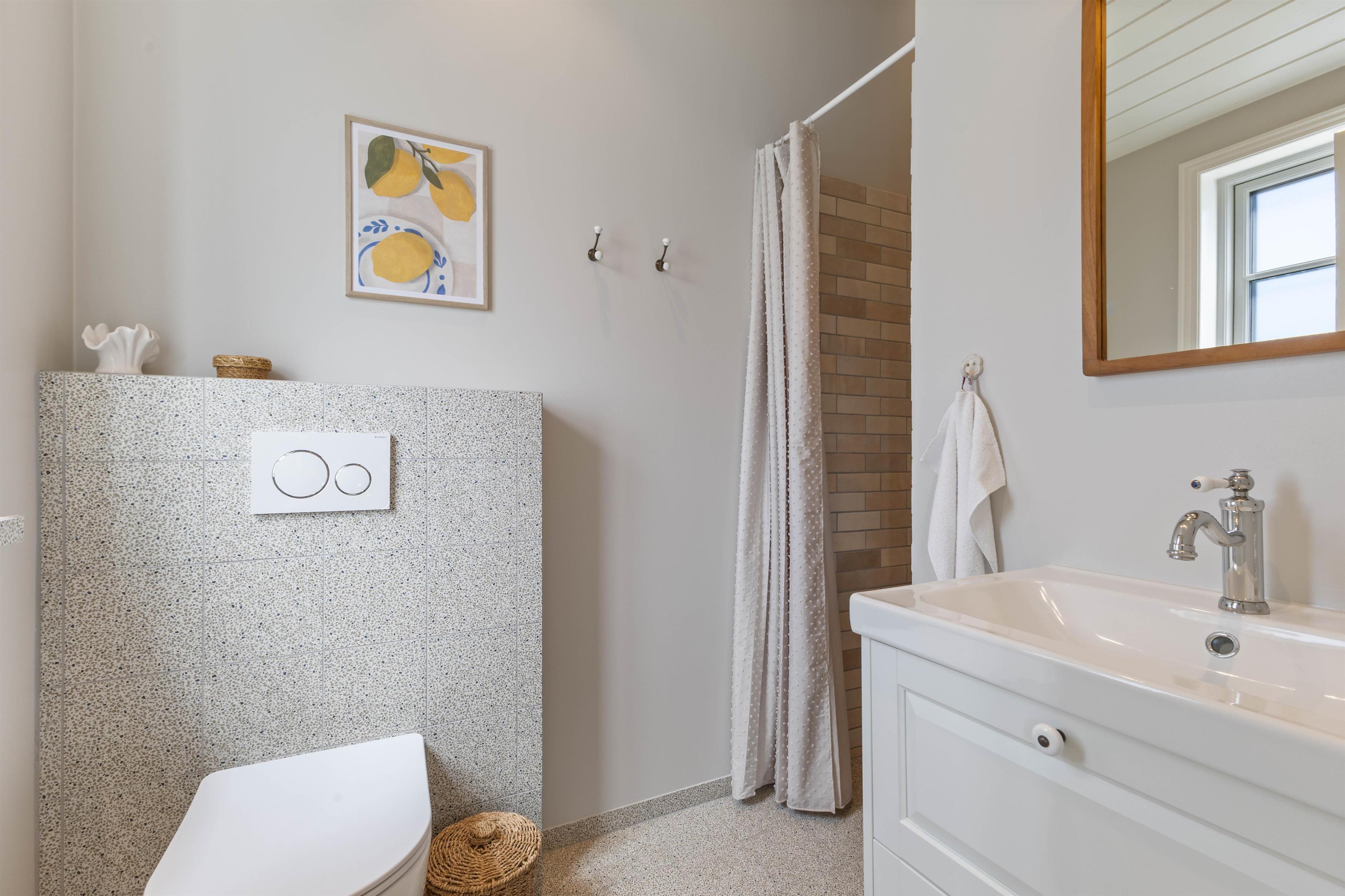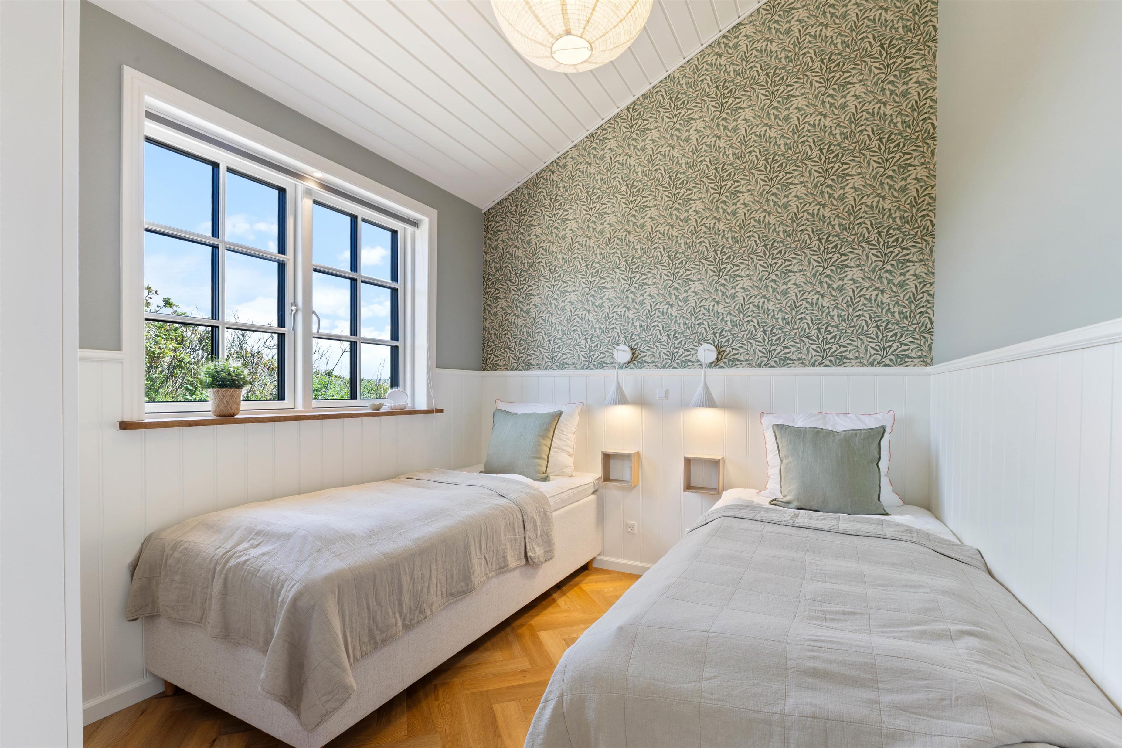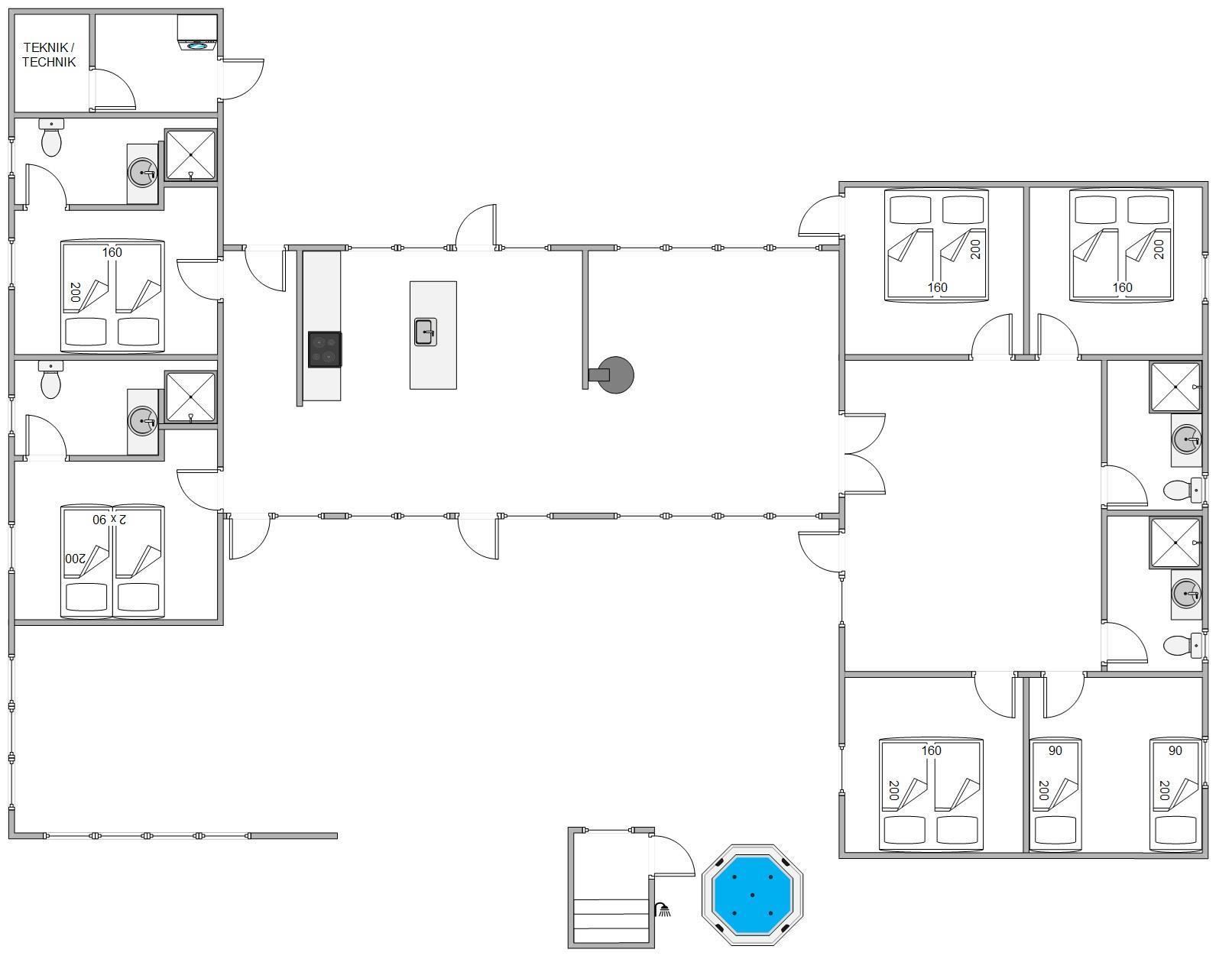 Sommerhuset i Bjerregård har et boligareal på 180 kvadratmeter og har plads til op til 12 personer. Her er 6 komfortable soveværelser med 5 dobbeltsenge og 2 enkeltsenge - ideelt til afslapning efter en lang dag på stranden eller efter aktiviteter i det omkringliggende område. Der er også 4 moderne badeværelser med gulvvarme, så glem alt om toiletkø.
