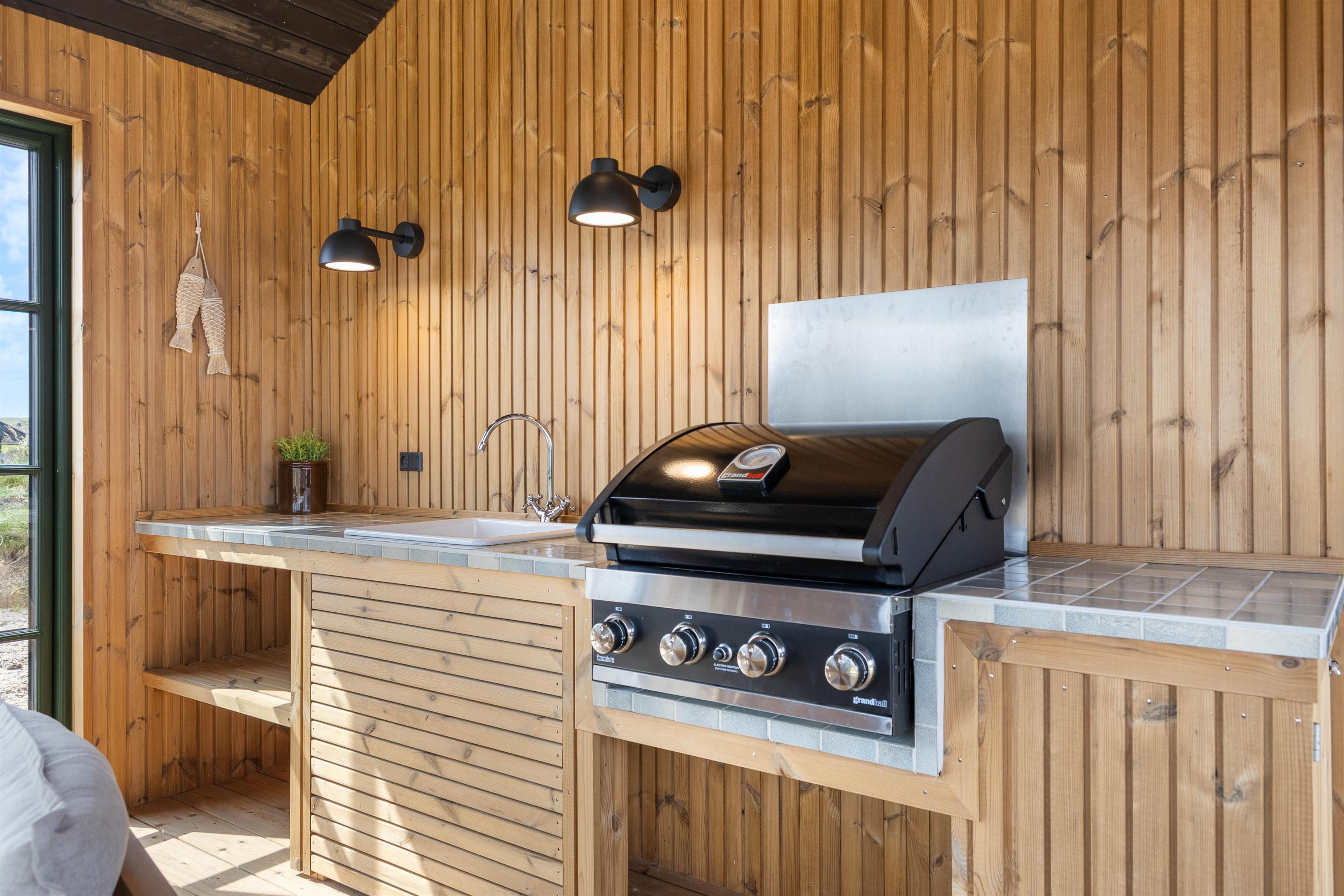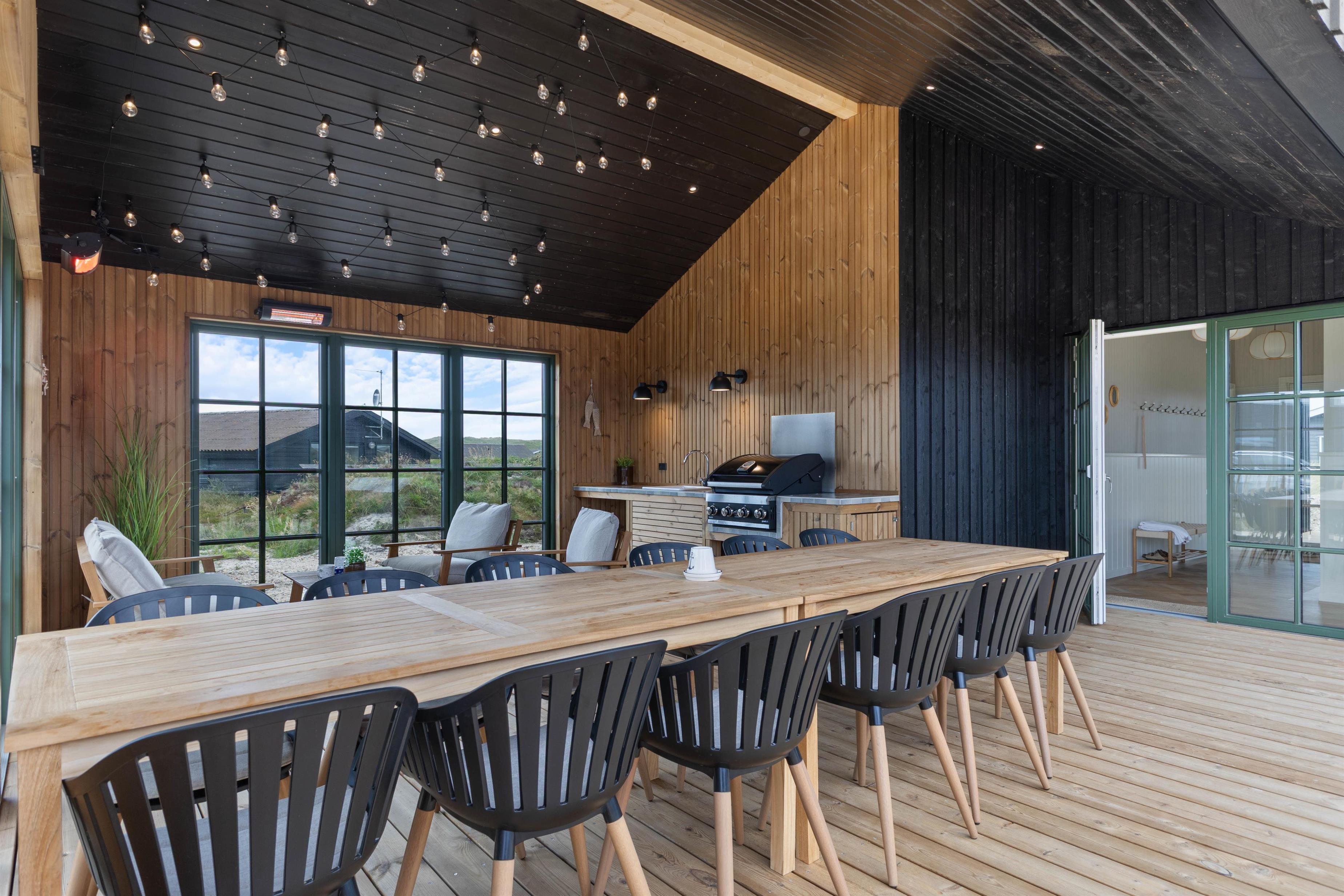 Til fælles måltider og hyggelige aftener kan I benytte det veludstyrede køkken, som har mange faciliteter, herunder 2 ovne og 2 opvaskemaskiner. I den hyggelige stue med elpejs kan I have fokus på hygge og samvær. På den overdækkede terrasse kan I nyde et lækkert grillmåltid sammen i nyde den friske havluft. I kan stadig nå en gåtur til stranden for at opleve solnedgangen i Vesterhavet.