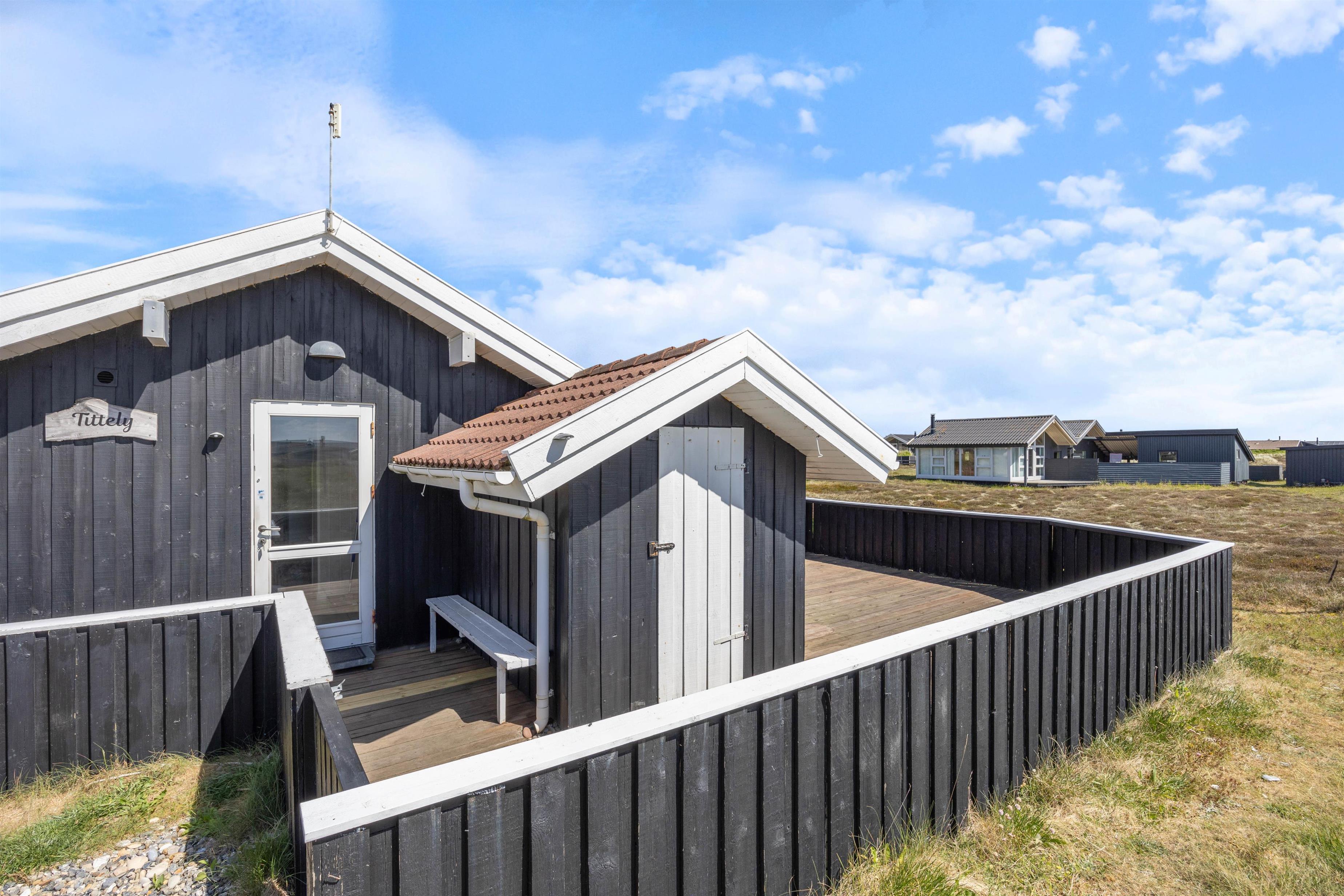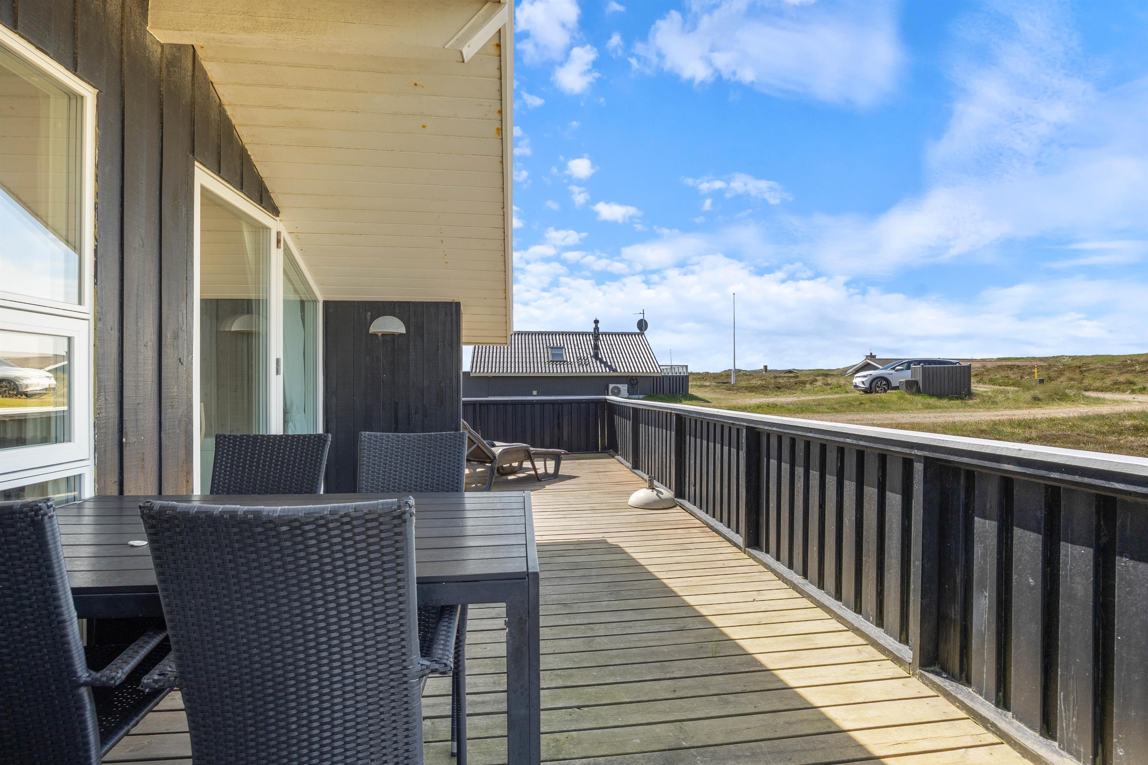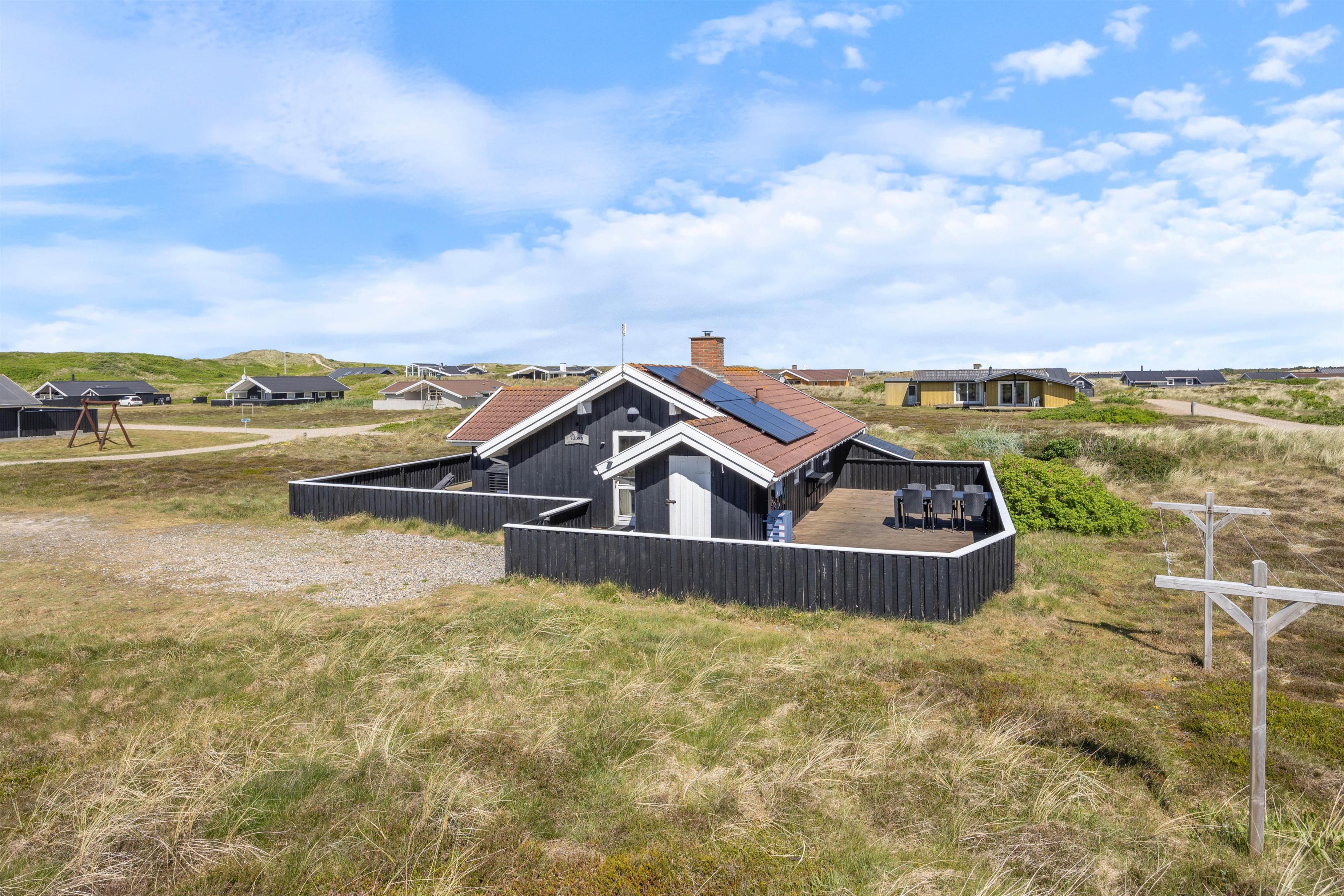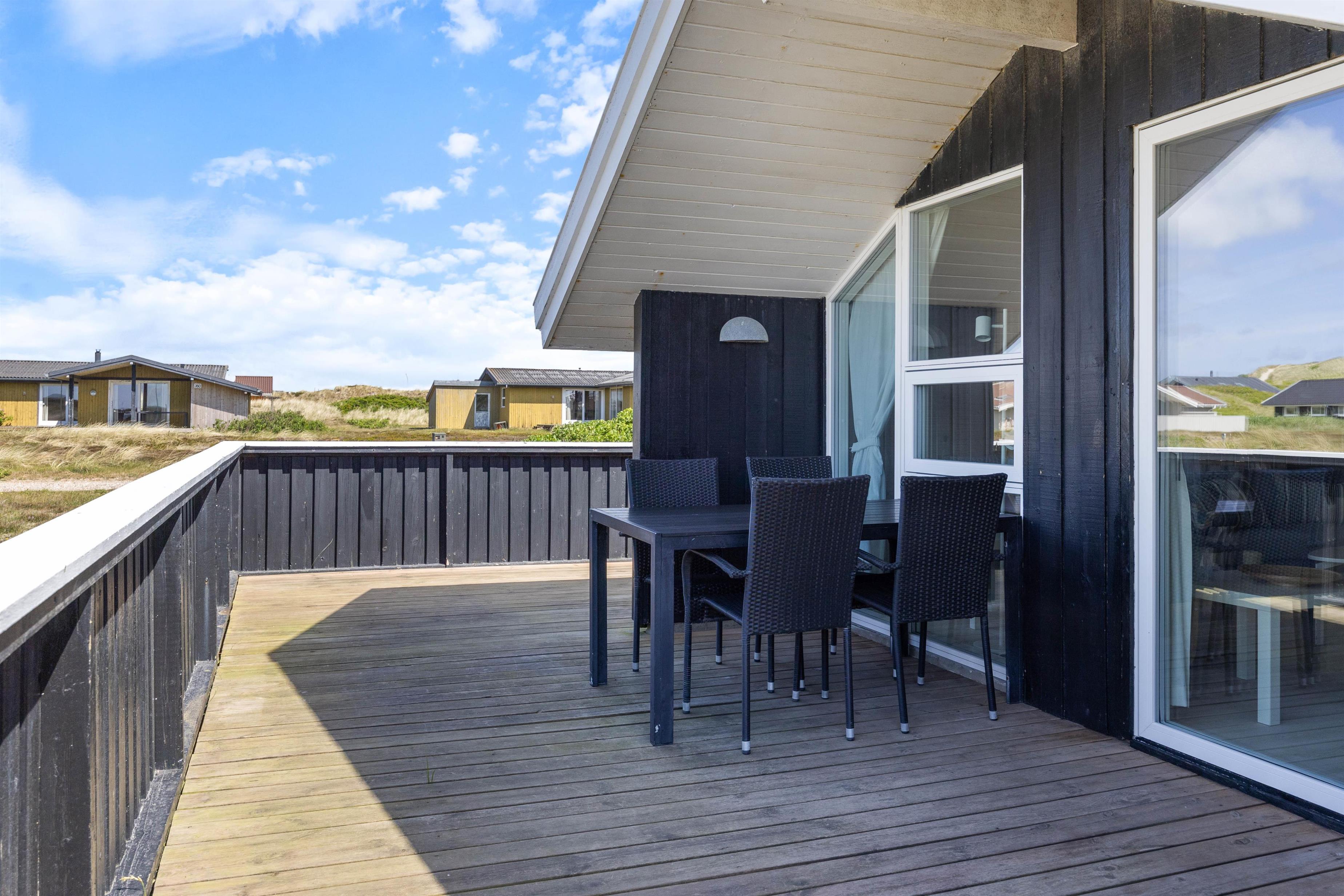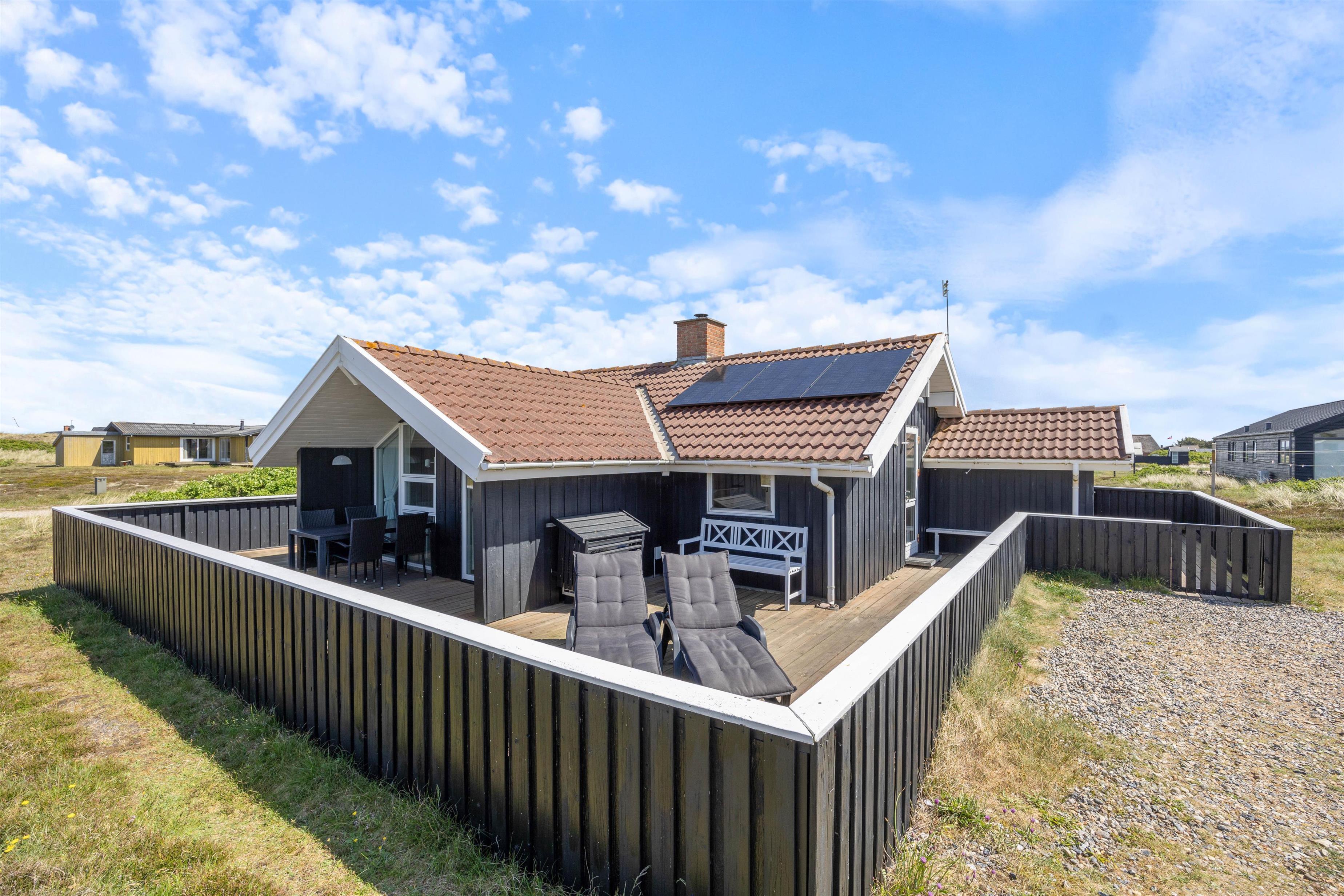 Rundt om feriehuset her på Arvidvej 348 er der en stor, lukket og dejlig træterrasse. Her kan man roligt lade børn og hunde lege frit. Den ultimative nydelse må være en veltilberedt grillmiddag på den vestvendte terrasse, hvor man kan nyde solnedgangen over klitterne og lytte til Vesterhavets afslappende brusen.