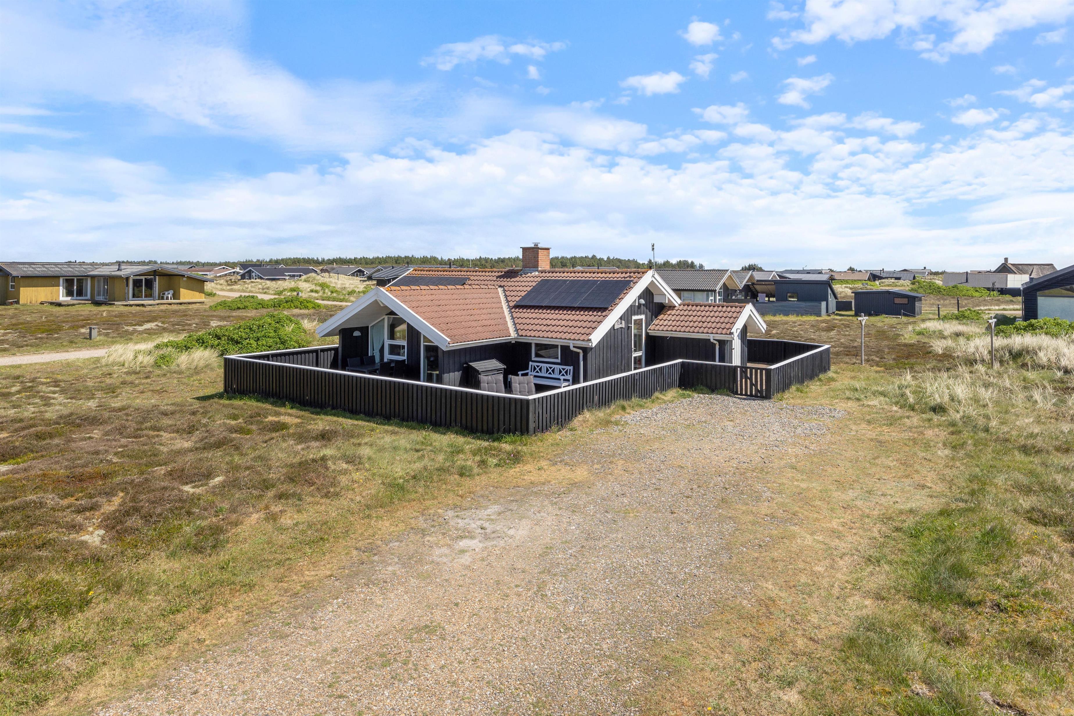 Her i det fredelige feriehus-område i Bjerregård, på Arvidvej 348, ligger dette hyggelige feriehus. Feriehuset indbyder til en skøn ferie, midt i det smukke klit-landskab og tæt på det fredede hedeområde. Man har her alle muligheder for en afslappende ferie, midt i naturen – og kun 250 meter fra det fascinerende Vesterhav.