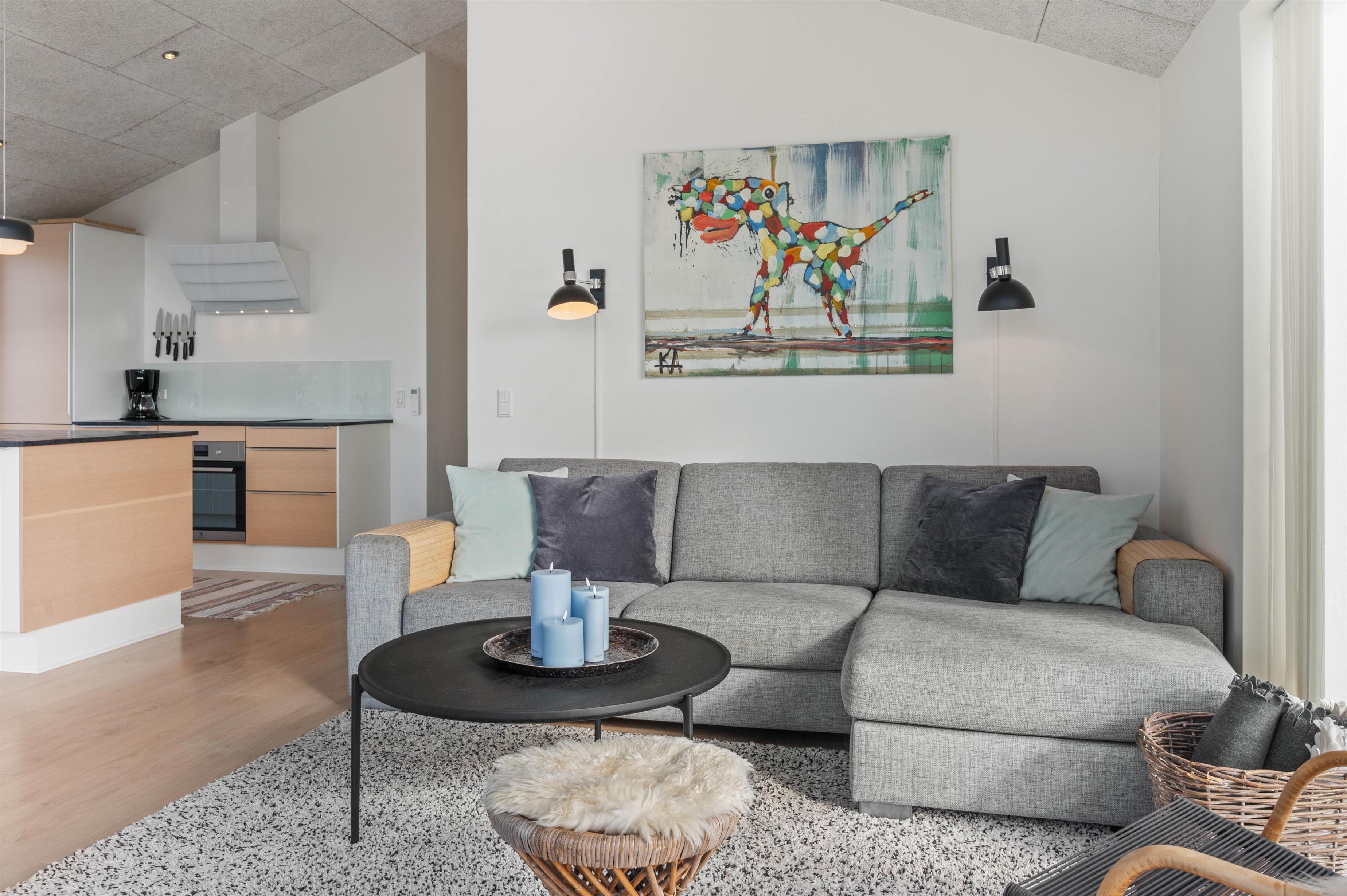 Et flot og indbydende feriehus beliggende på en helt unik klitgrund i Bjerregård. Sommerhuset er placeret på grunden, så udsigten fra køkken og stue bliver bedst muligt. På den måde får du fornemmelsen af at bo midt i denne smukke natur. Og med brændeovnen knitrende i baggrunden og en kop varm kakao, kan du nyde ægte ferie på Holmsland Klit.