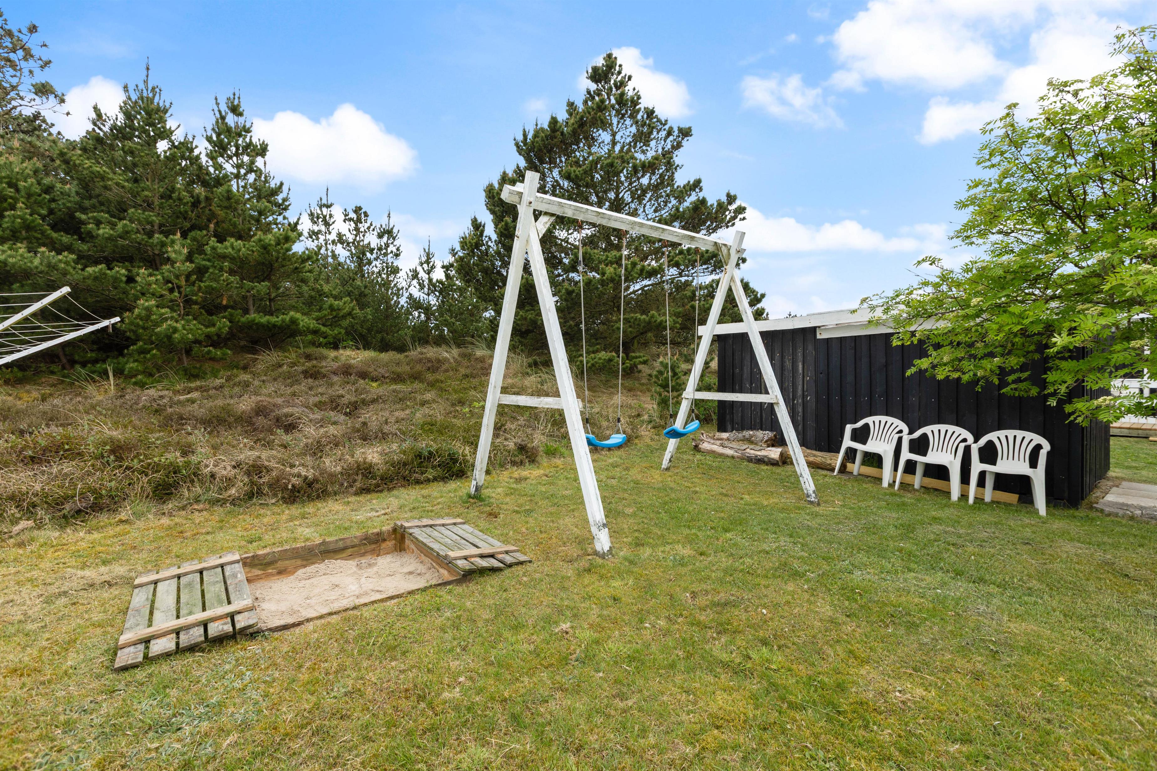 Udendørs inviterer de skønne og afskærmede terrasser til ren afslapning i solen. Træterrassen ligger mod syd, og så er den desuden lukket, så de små og hunden frit kan bevæge sig rundt. Her venter havemøblerne på jer, mens her også er god mulighed for, at familiens grillmester kan trylle et lækkert måltid frem – prøv f.eks. med lækre snaskede burgere, det er en sikker vinder for store som små! Imens der grilles, kan børnene bygge sandkager i sandkassen eller lege på gyngerne. Lige ved den lokale købmand i Bjerregård, findes en stor hoppepude, som helt sikkert vil falde i god jord.