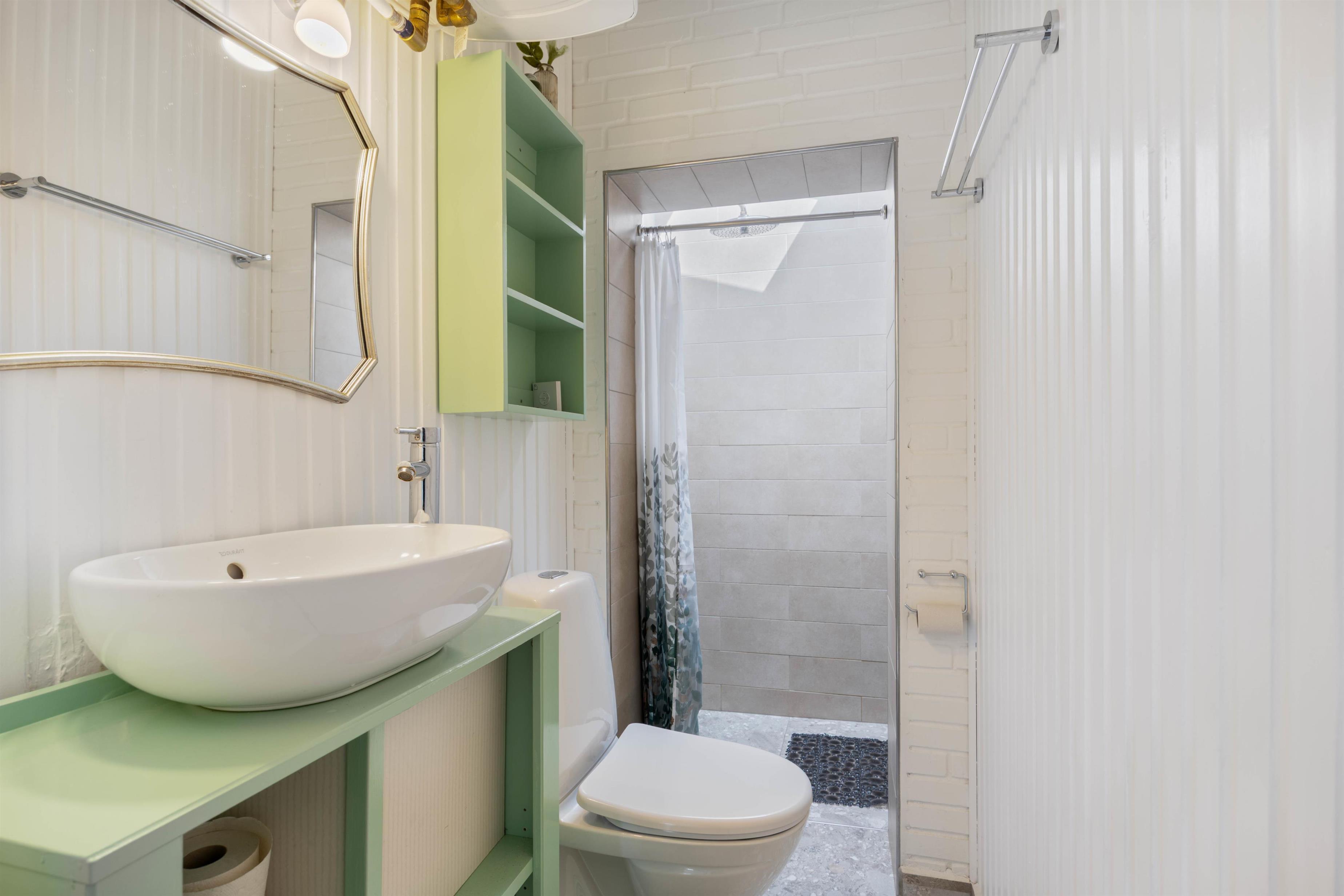 På Dortheasvej 38 er der fra den åbne opholdsstue adgang til den skønne udestue og derfra til den delvist afskærmede terrasse. I de komfortable havemøbler kan du altid finde en rolig plet i den friske havluft. Snup din yndlingsbog og en kop varm kaffe, og nyd en stille stund.