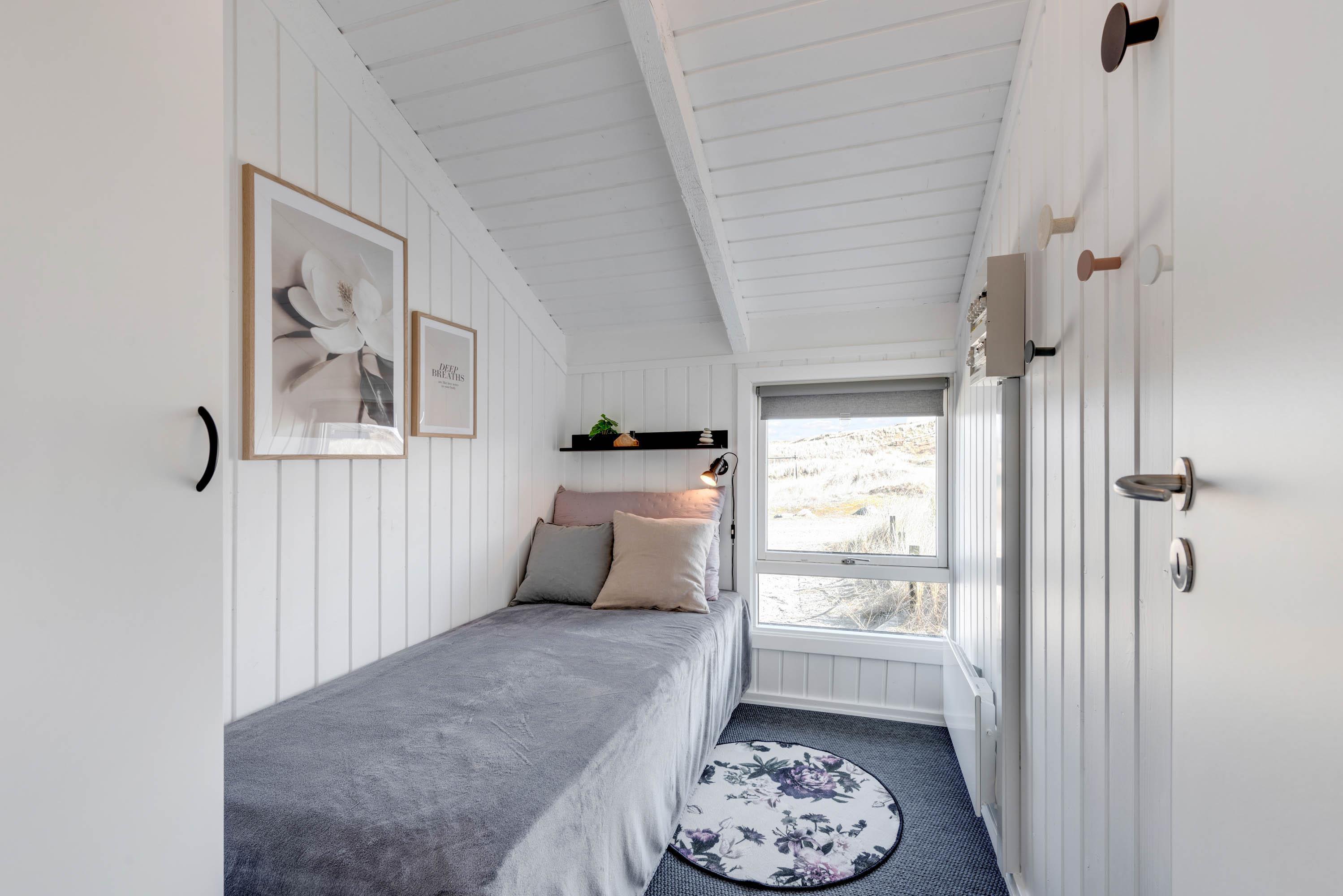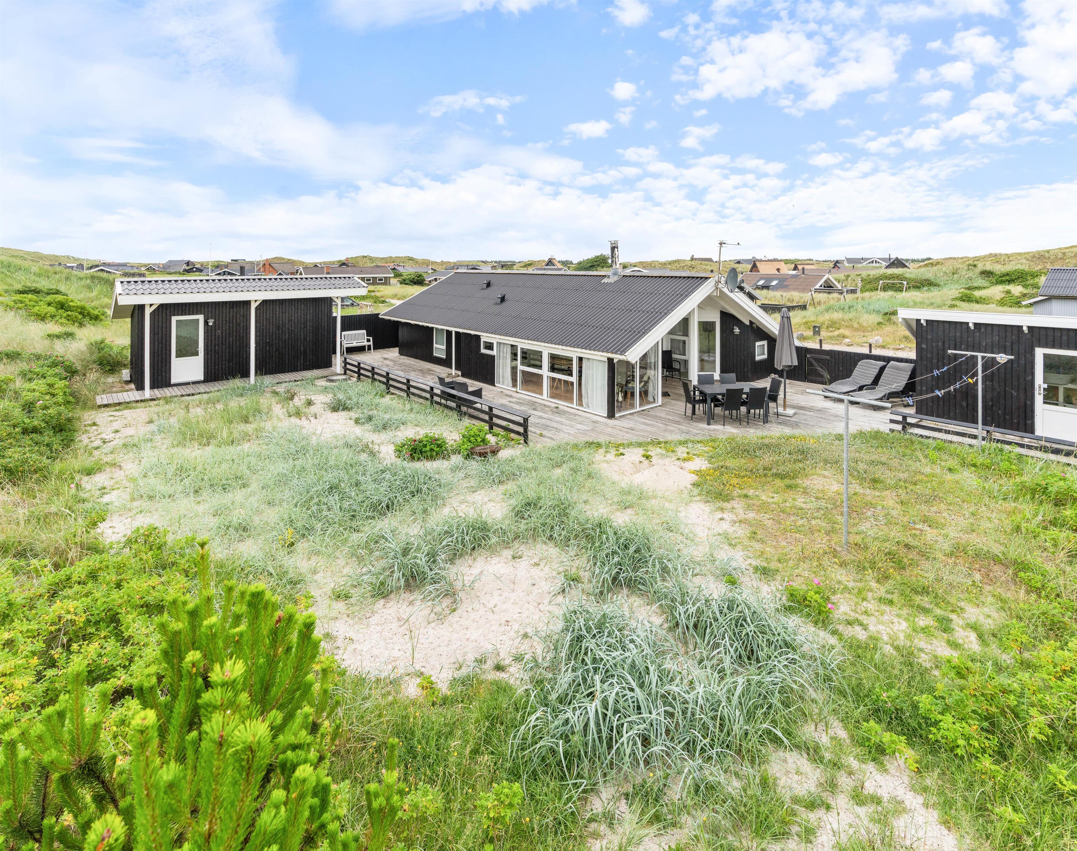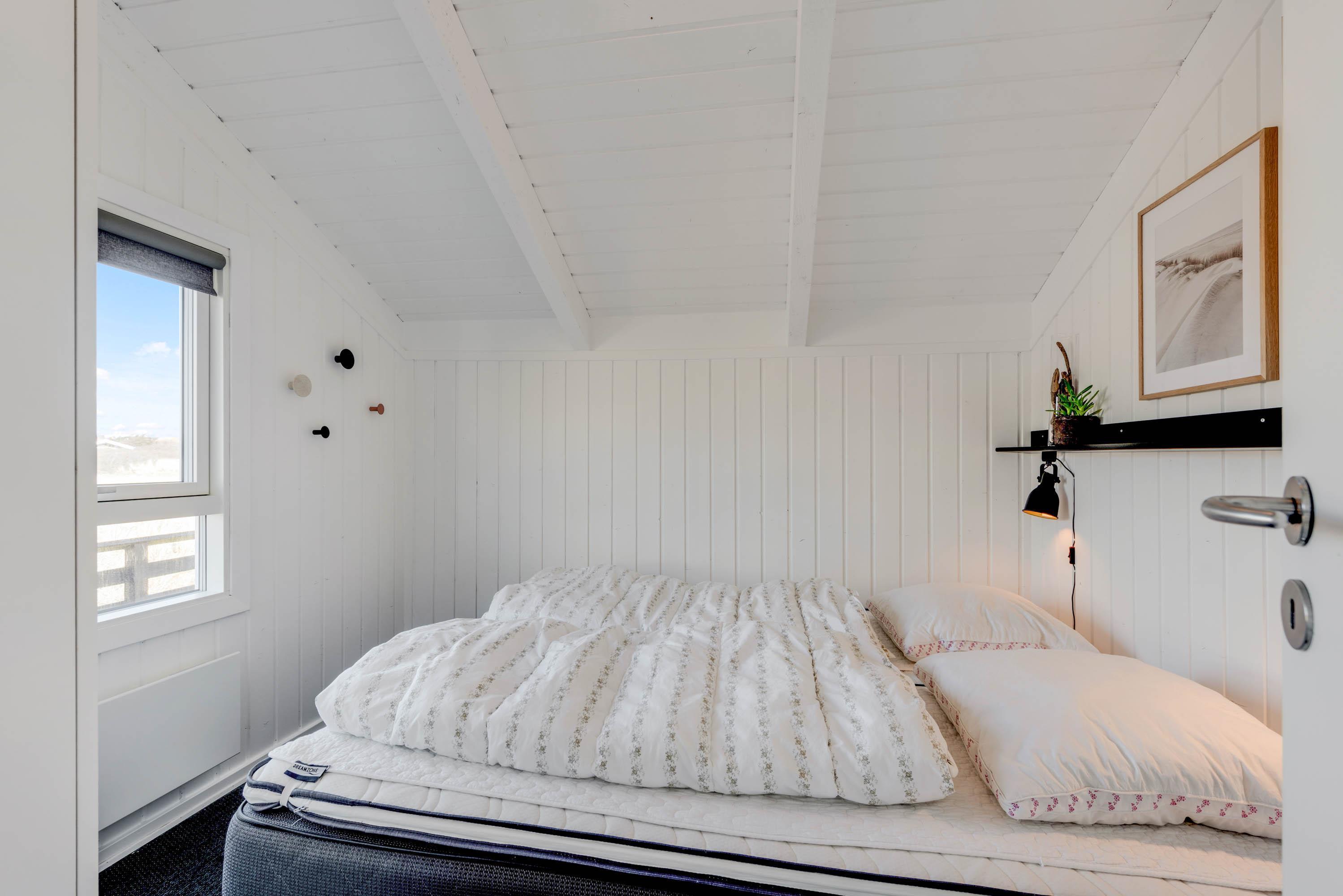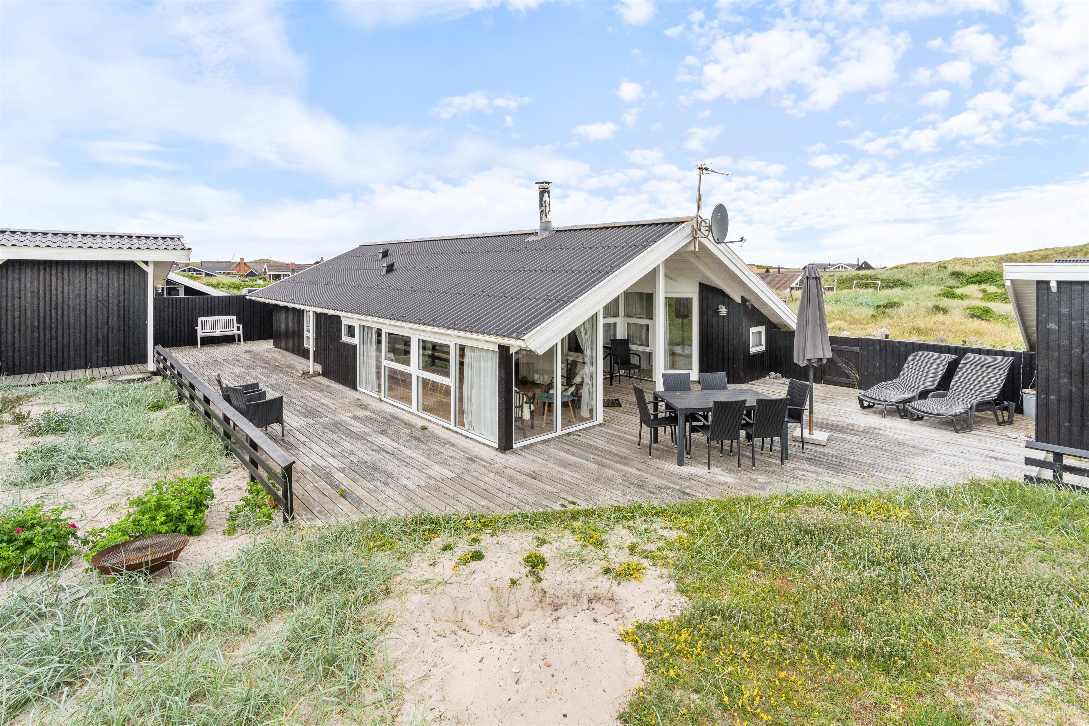Ved den yderste klit, og med stranden i baghaven, finder I dette dejlige feriehus med lys og indbydende indretning. Her er 4 soveværelser og plads til 6 personer. Feriehuset fremstår overalt lys og indbydende, mens I udenfor mod vest og syd har I en dejlig terrasse, hvor I kan nyde sommervejret.