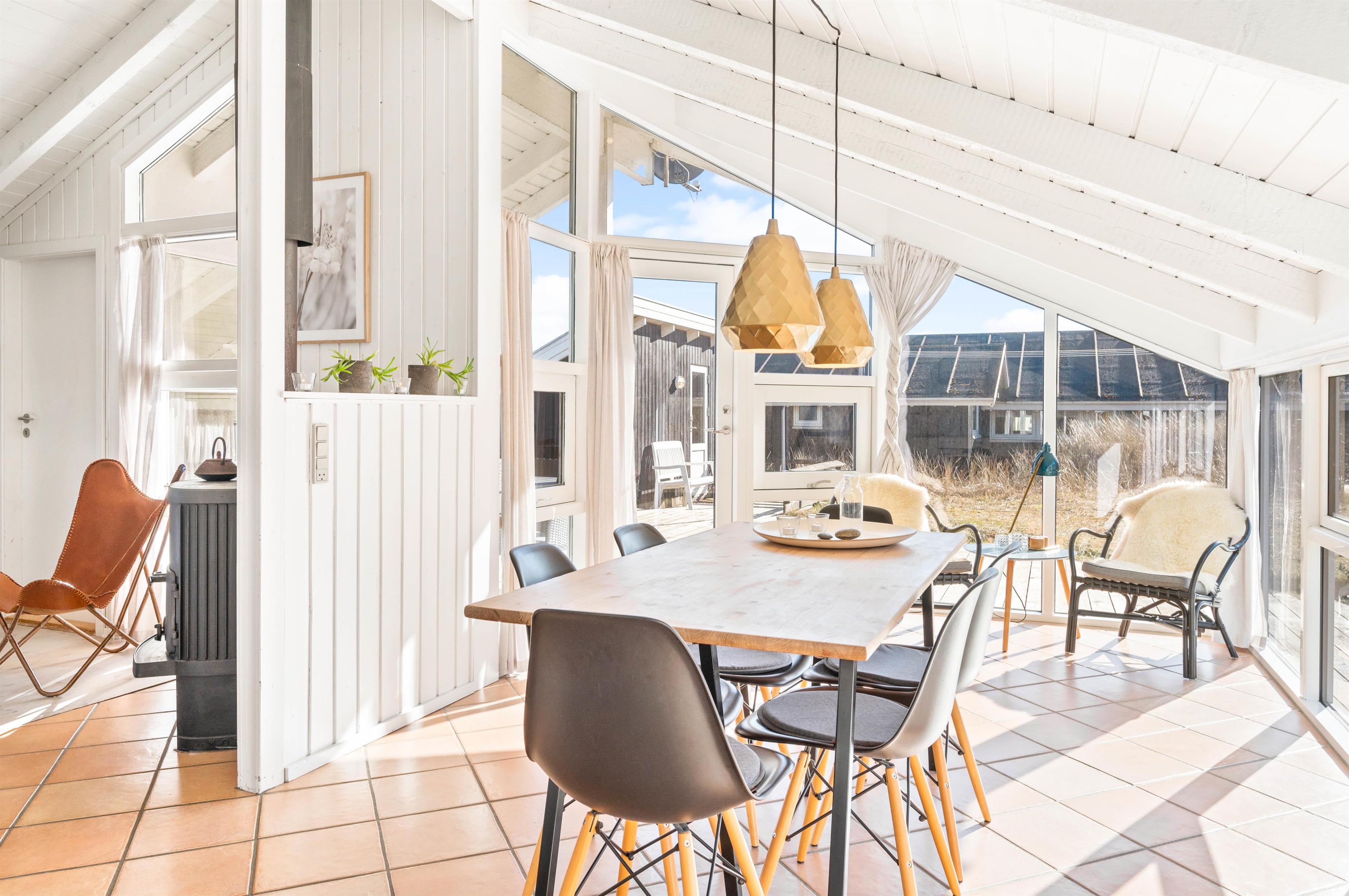 Her er et flot køkken med masser af lys i åben forbindelse med stuen. Nyd middagen i spisestuen med udsigt til den store klit mod vest.