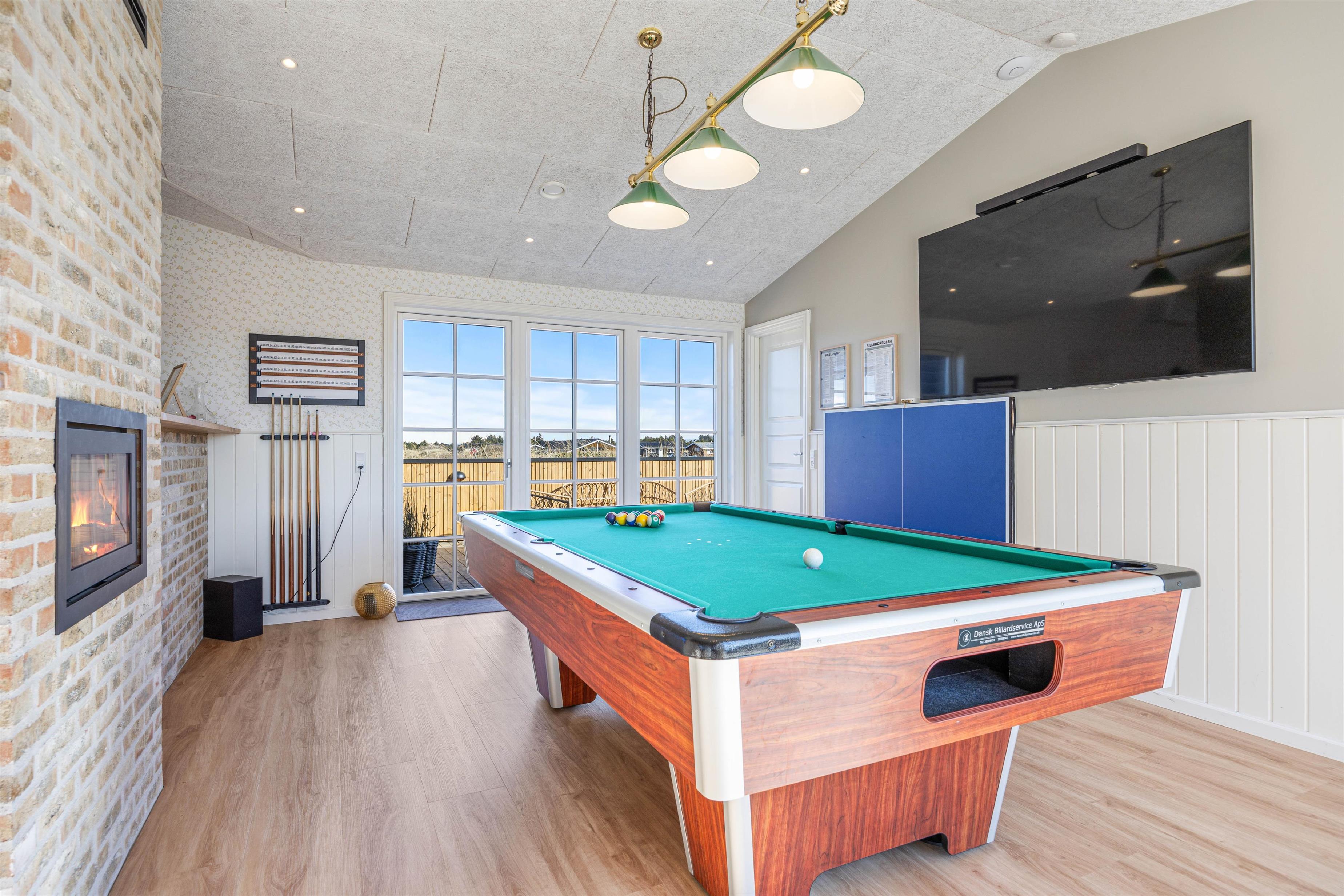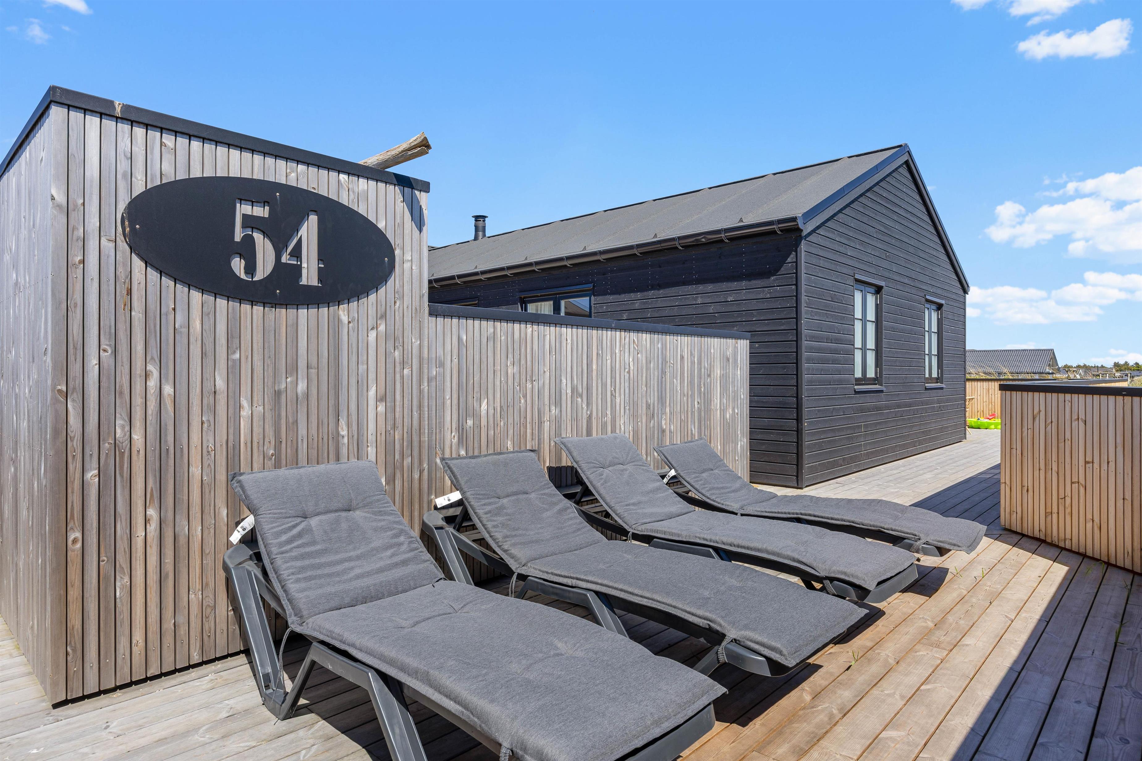 På Dortheasvej 54 finder du dette skønne, moderne sommerhus med 6 dobbeltværelser, som alle har eget toilet og bad. Med bordtennisbord og udespa kan I holde en aktiv ferie i sommerhuset, der er bygget i 2023. Og med kun 450 meter til Vesterhavet vil I meget hurtigt få den helt rigtige feriefornemmelse. Ideelt til familie og venner – og hunden er også velkommen. Der er ladestik til el-bil ved sommerhuset.