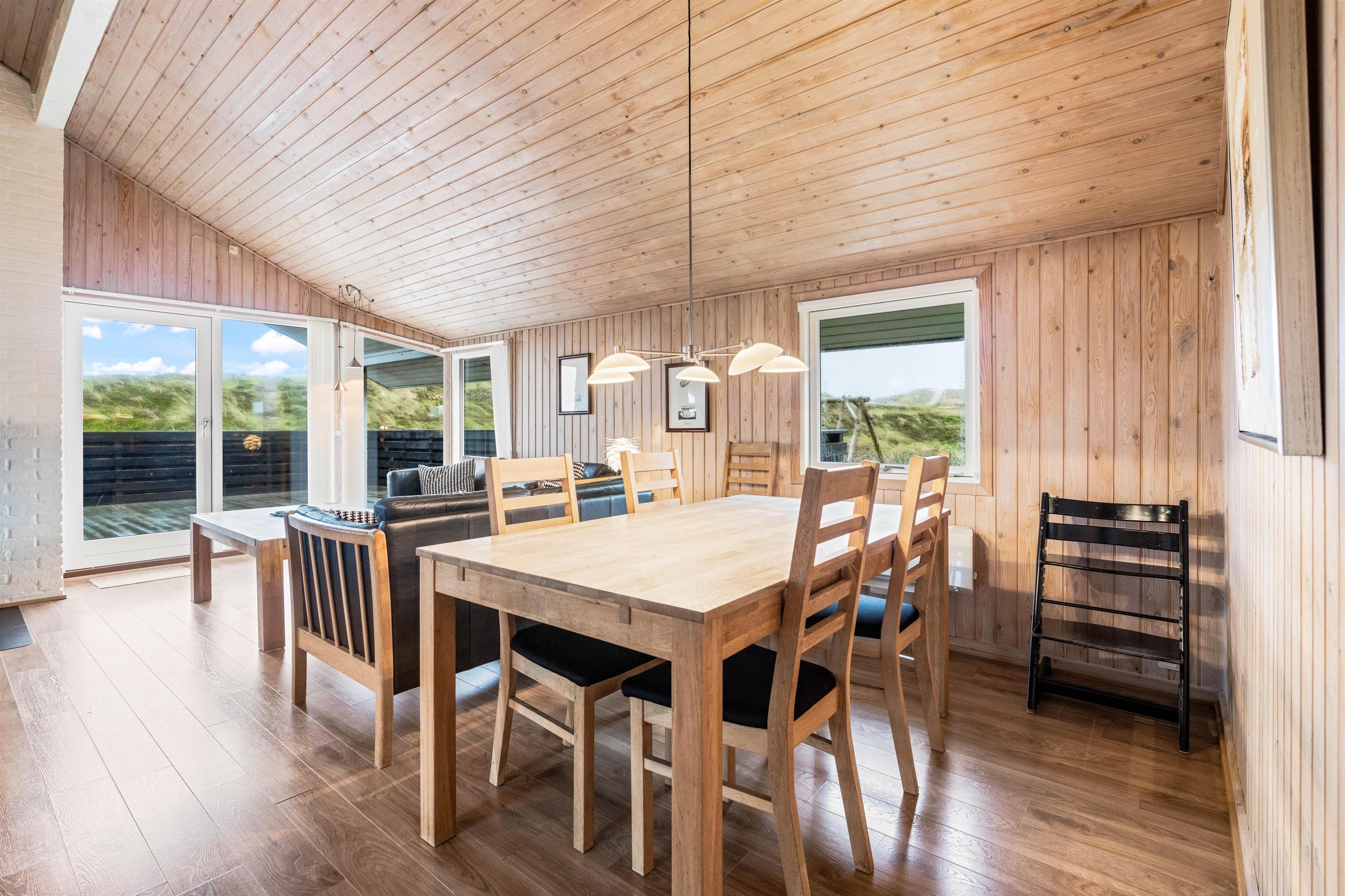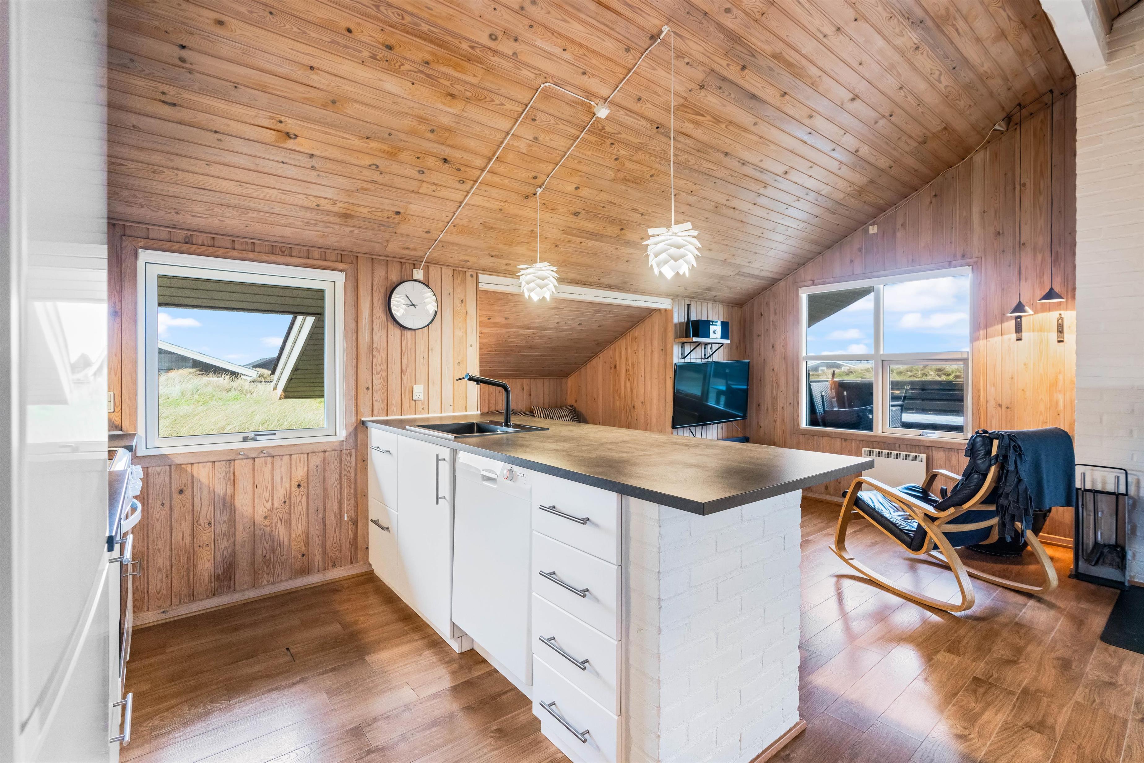 I dette smukke feriehus er alle forudsætninger for en dejlig ferie til stede. Domicilet ligger for enden af en lille blind vej, kun 250 m fra Vesterhavet med den kilometerlange sandstrand.